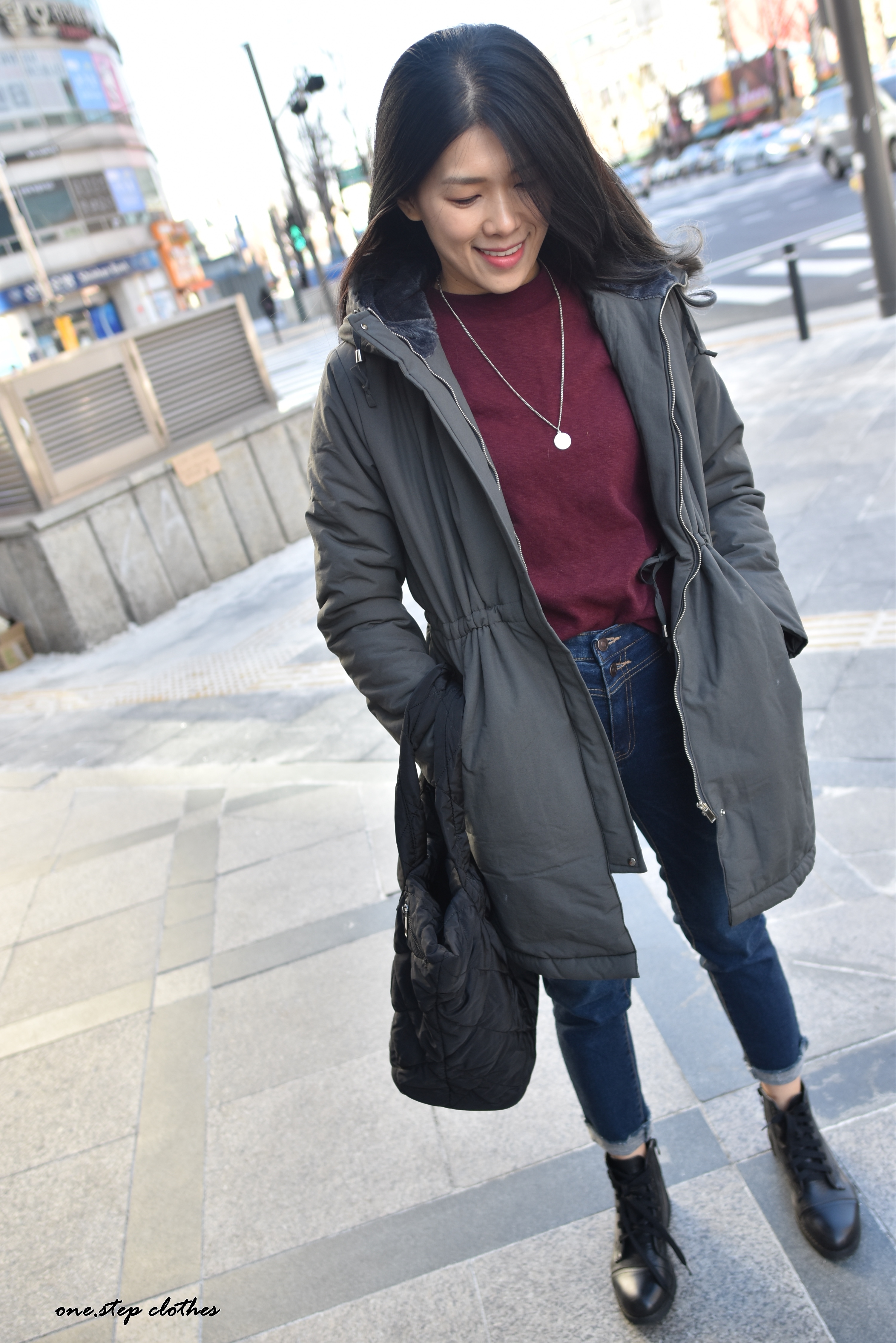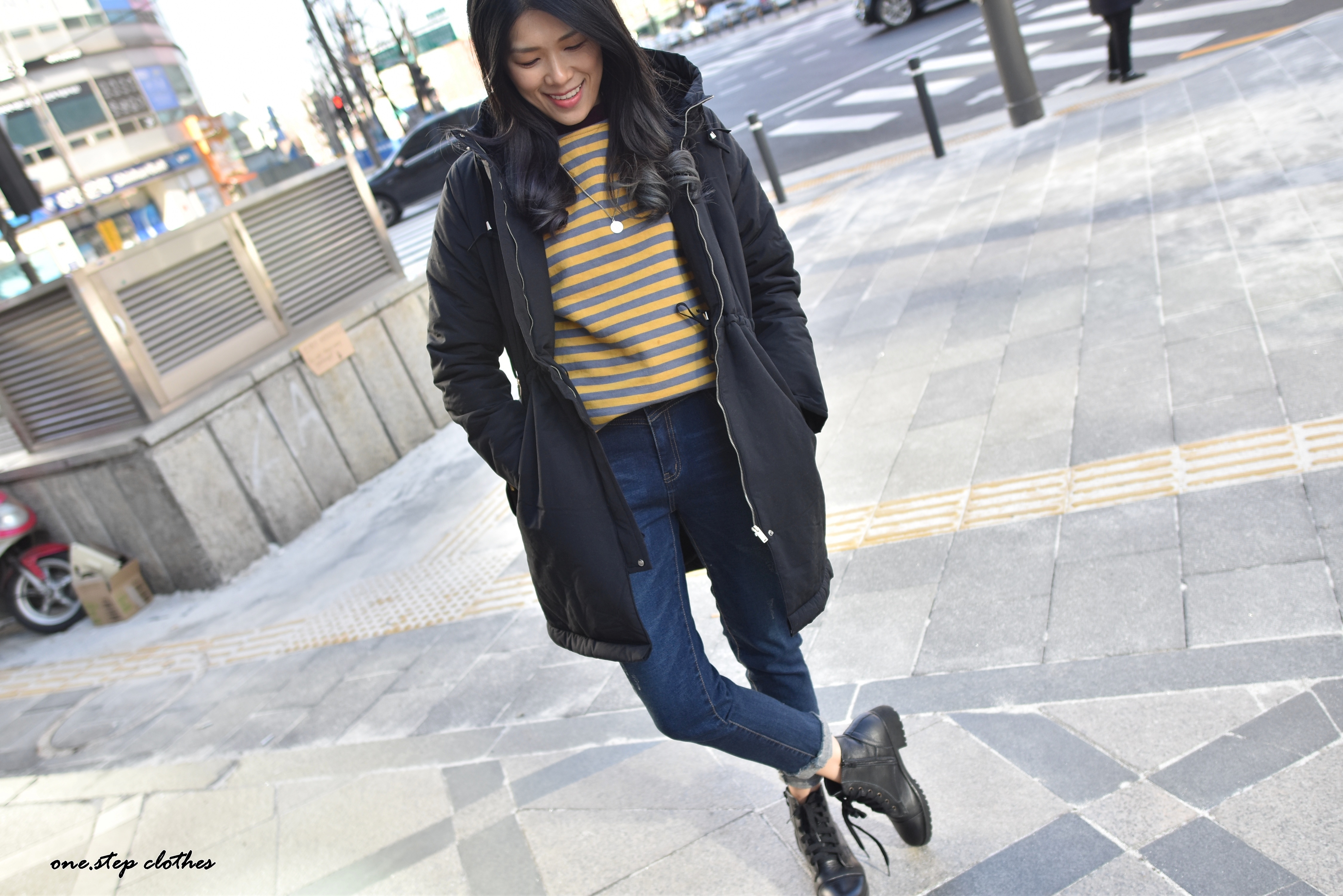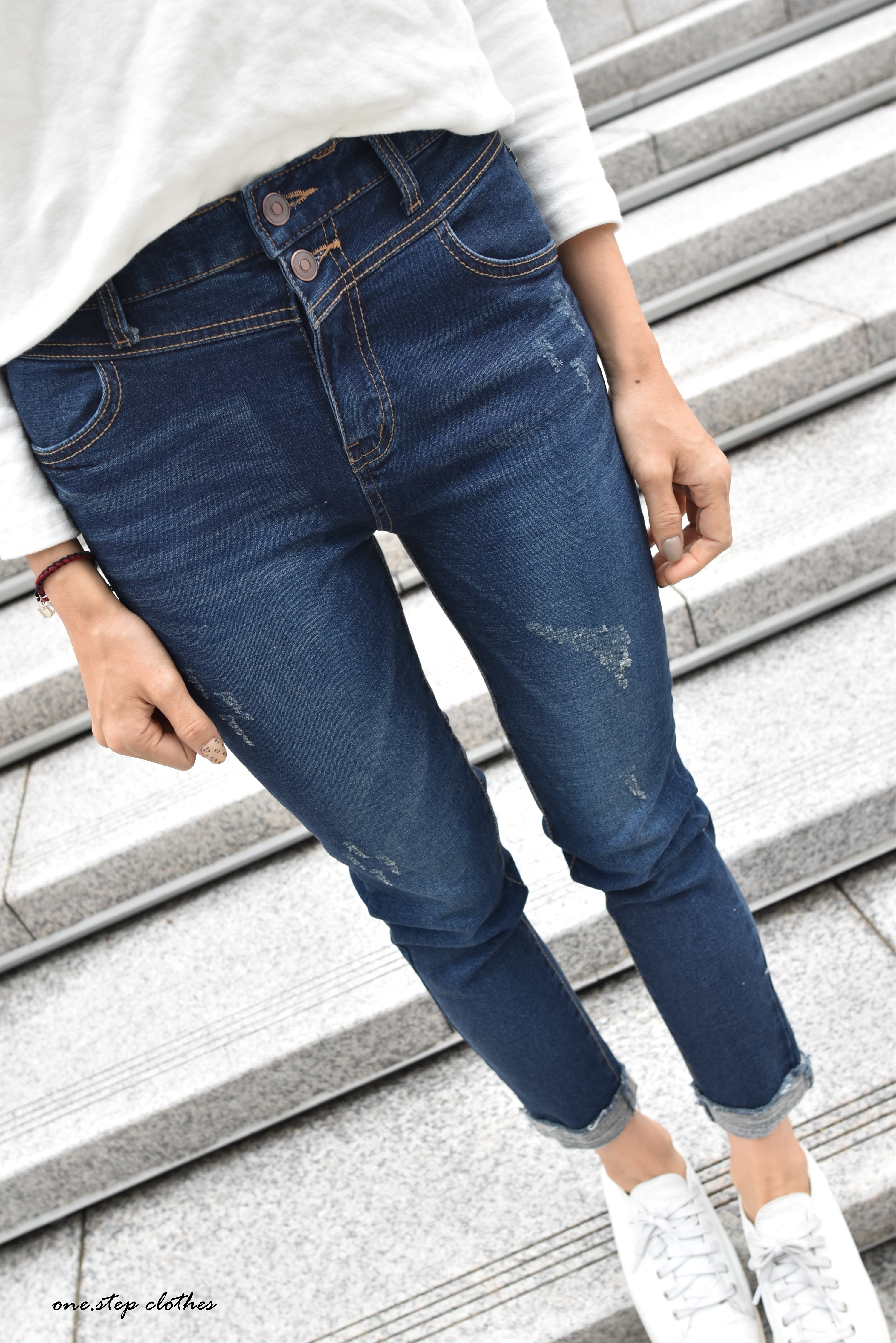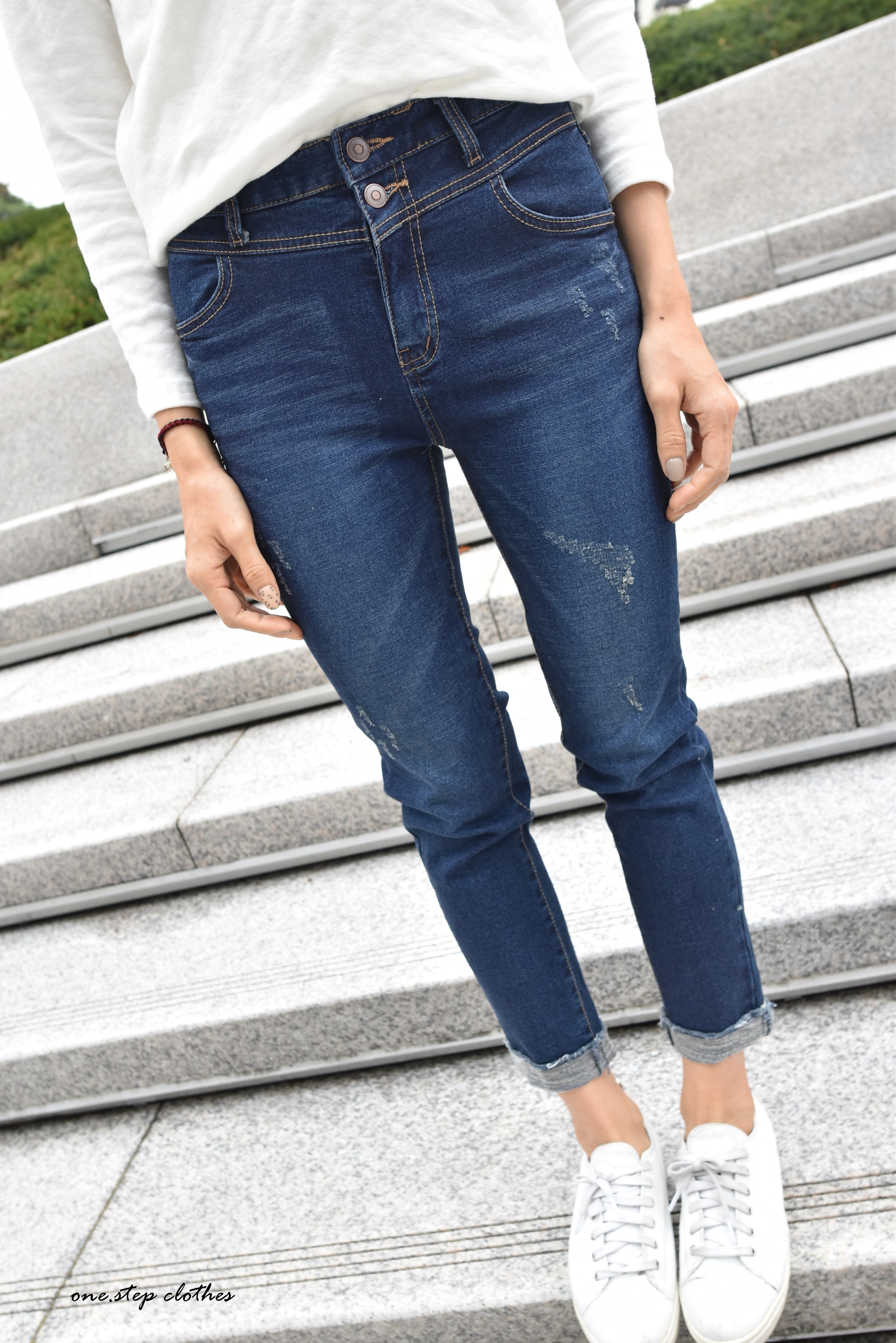 正韓雙釦設計刷痕磨毛小直筒