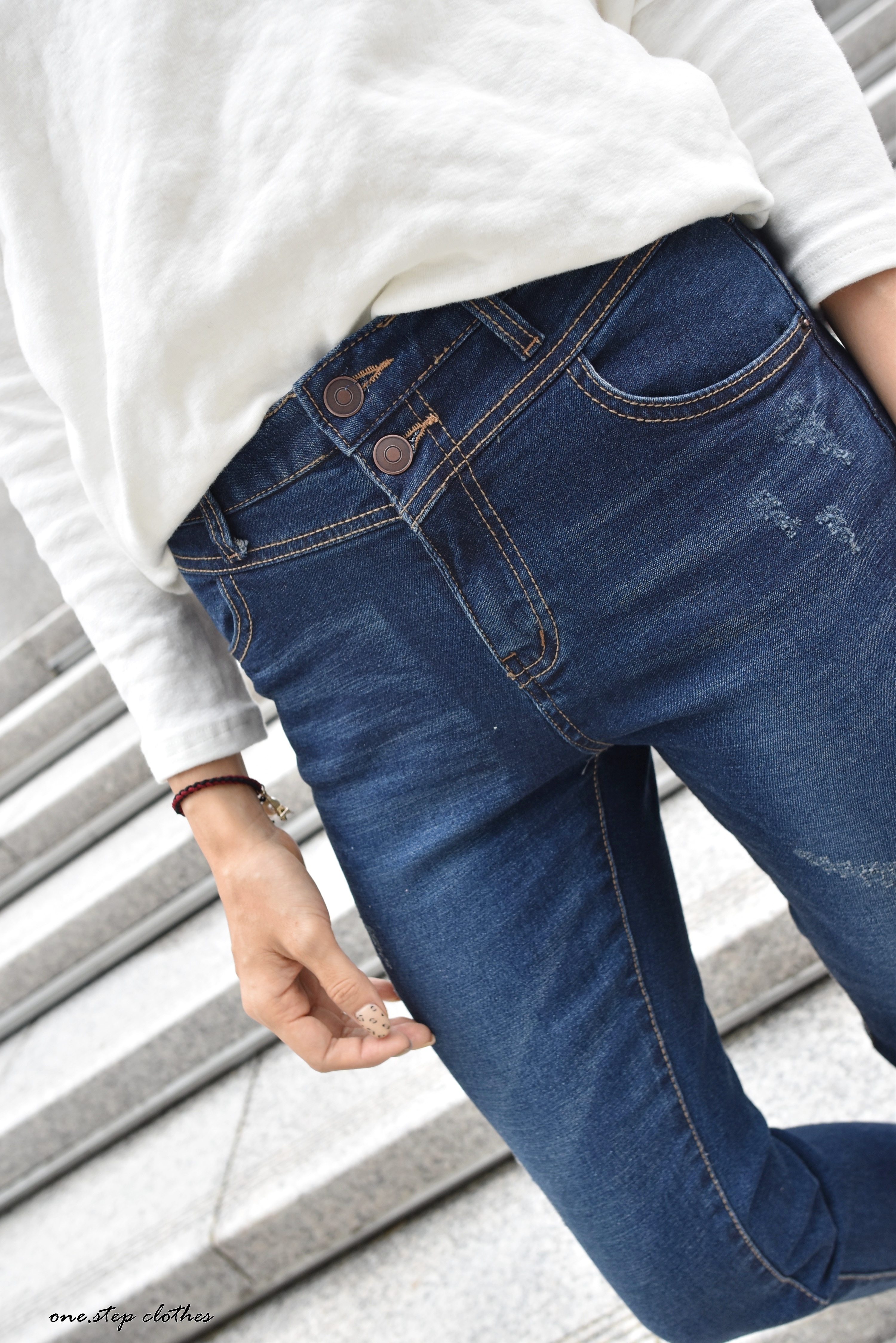 褲頭雙釦車線的地方配色起來更明顯好看