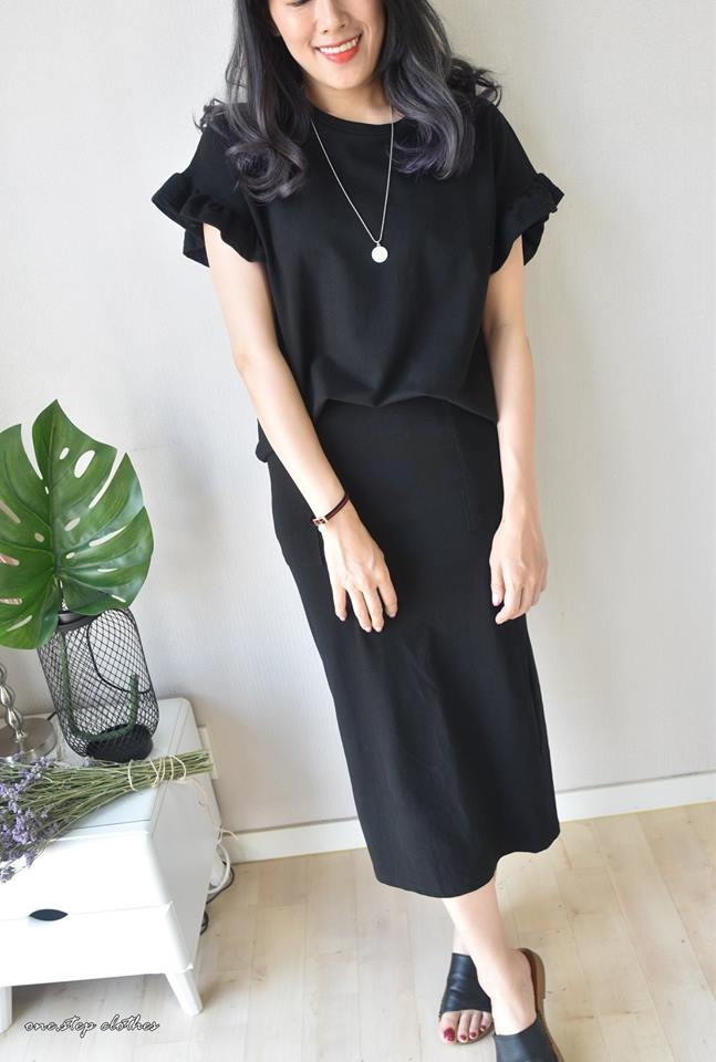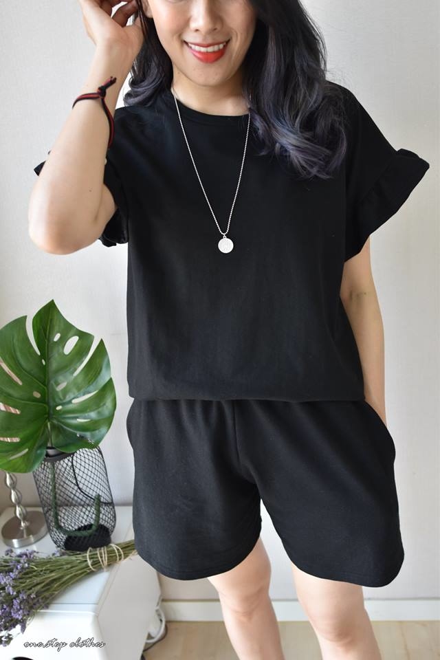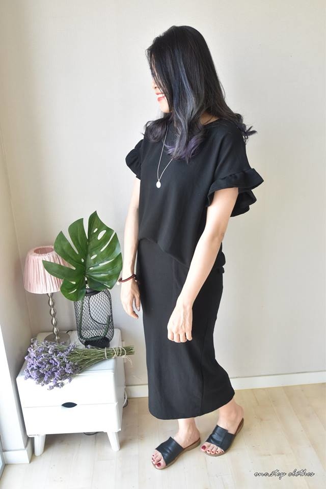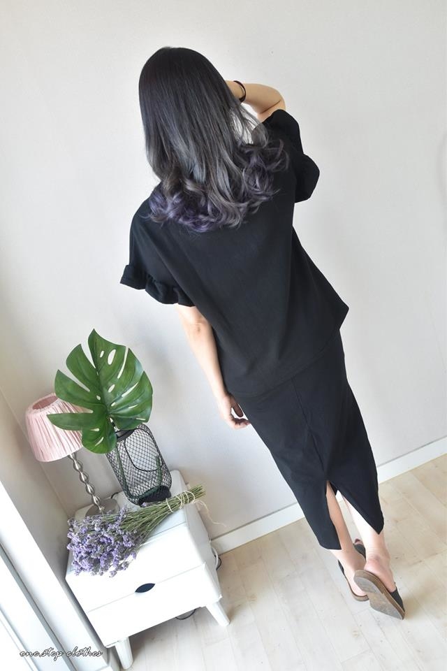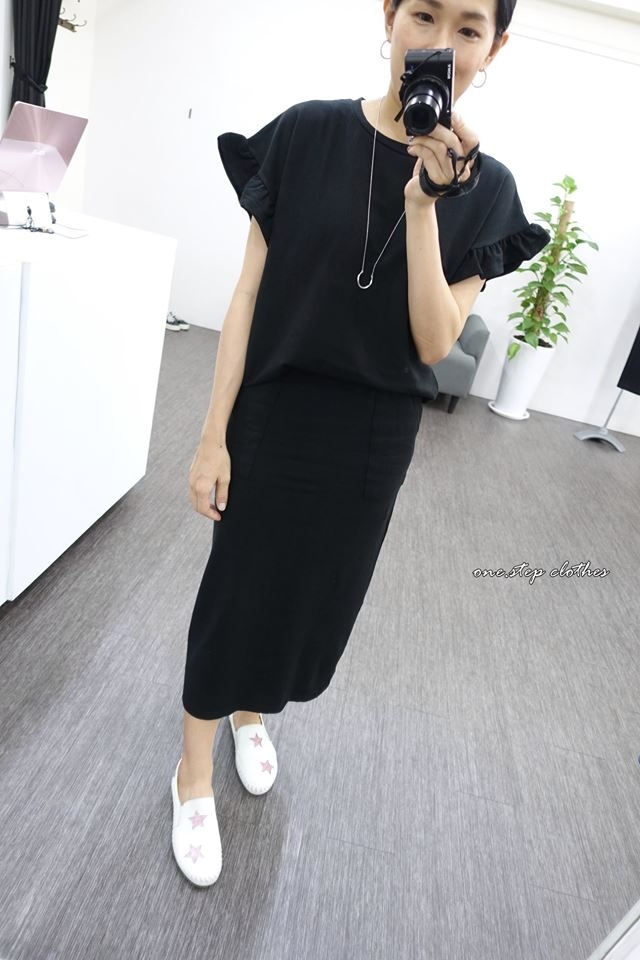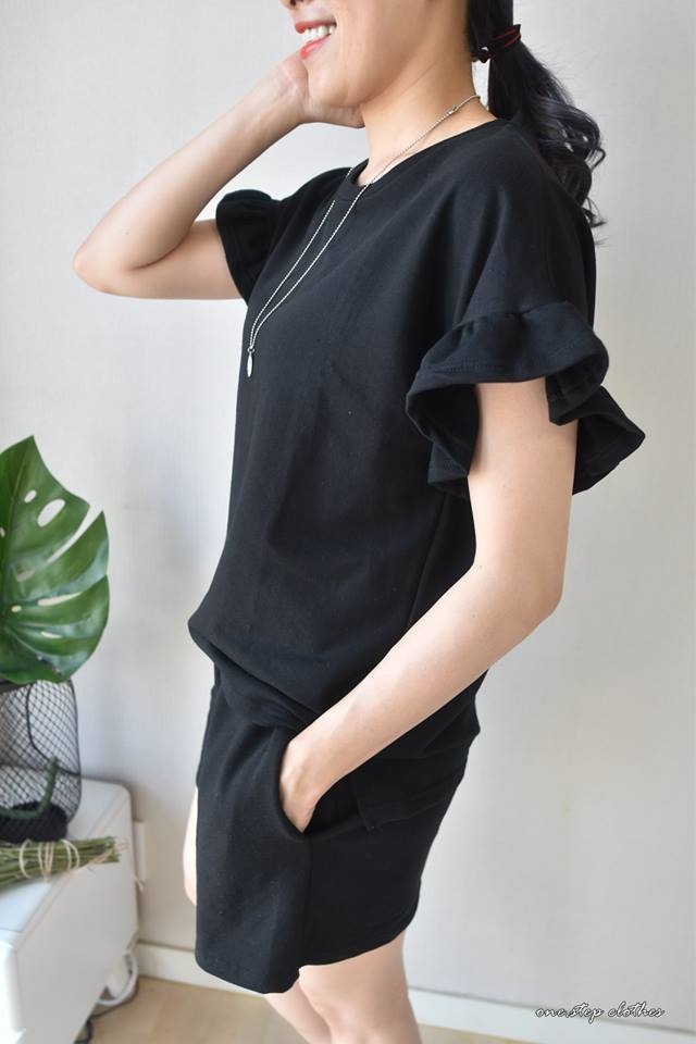 這件荷葉袖上衣穿起來寬鬆很遮肉~