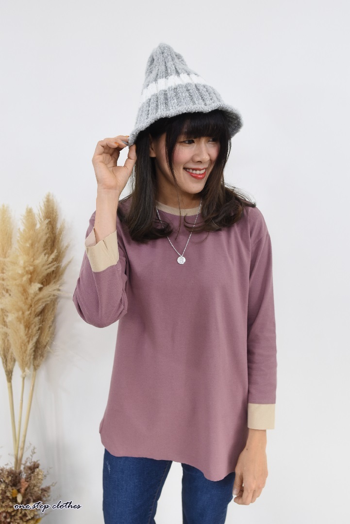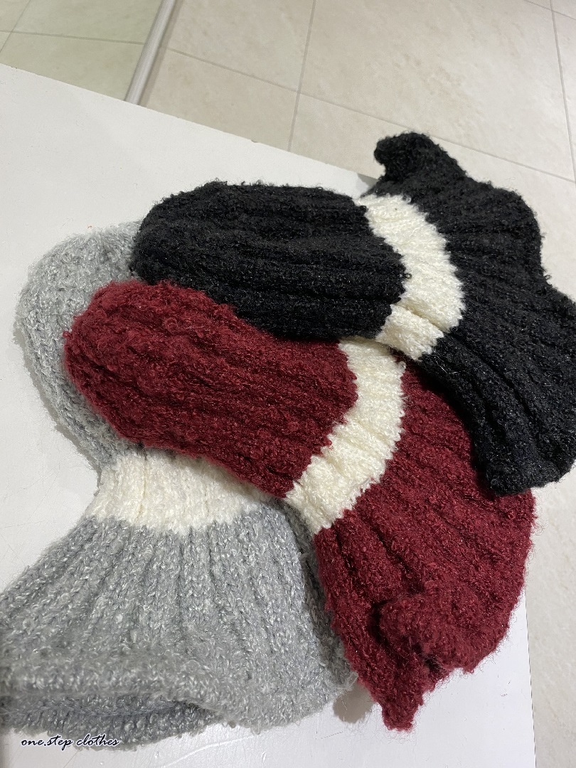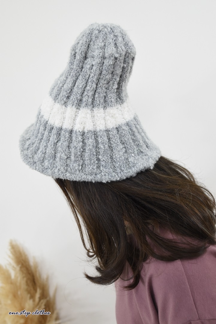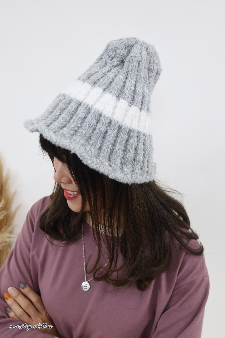 正韓QQ配色條紋毛帽 (灰)