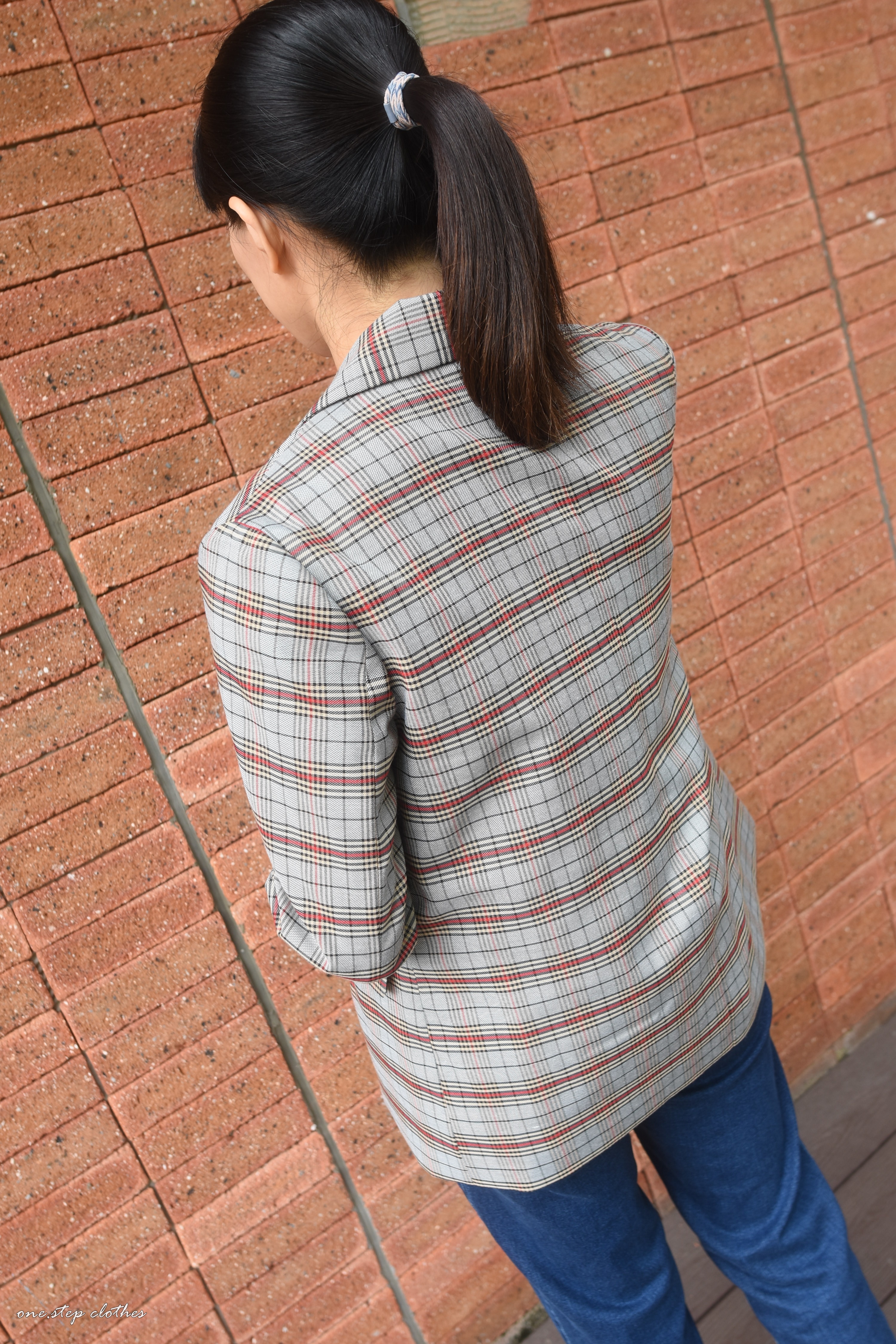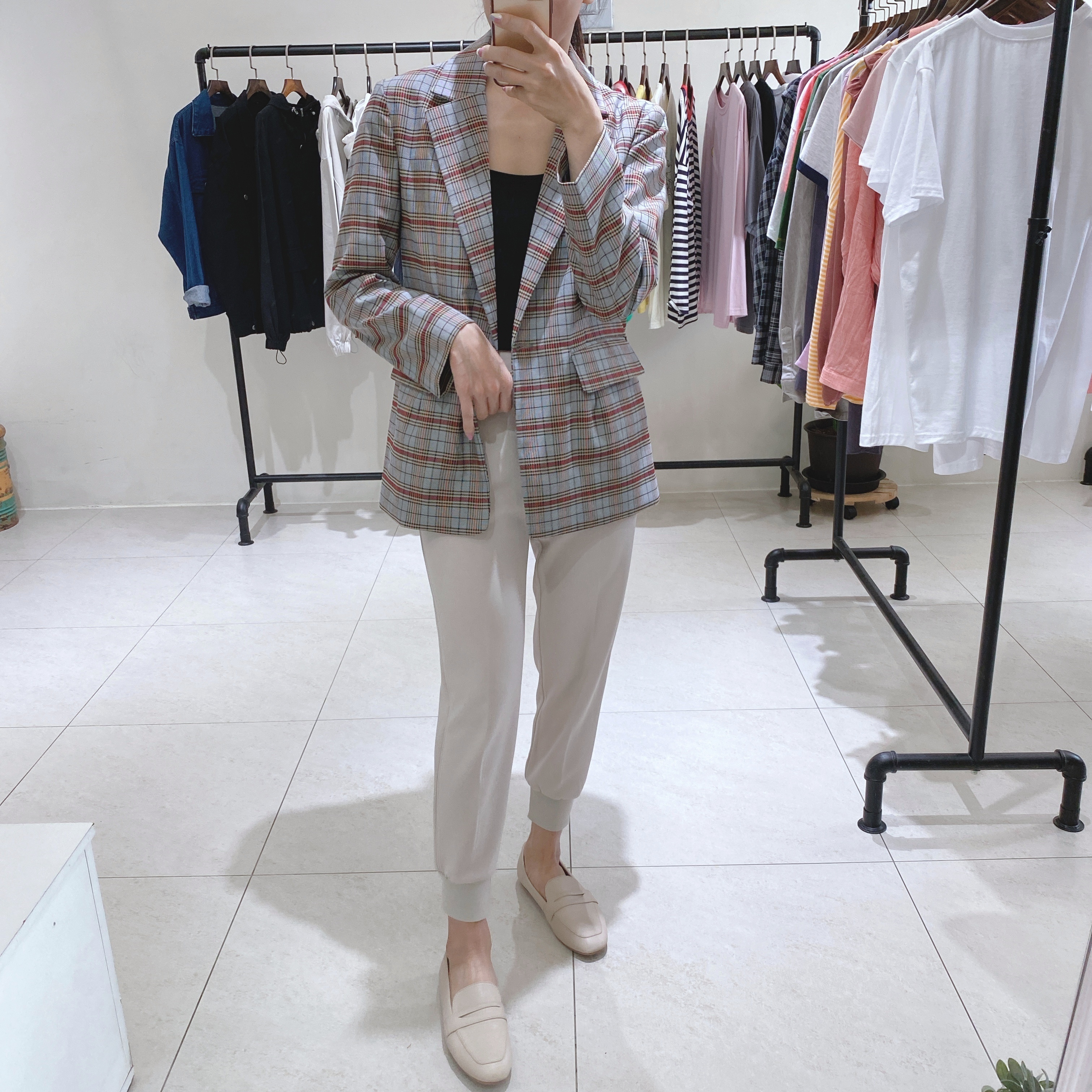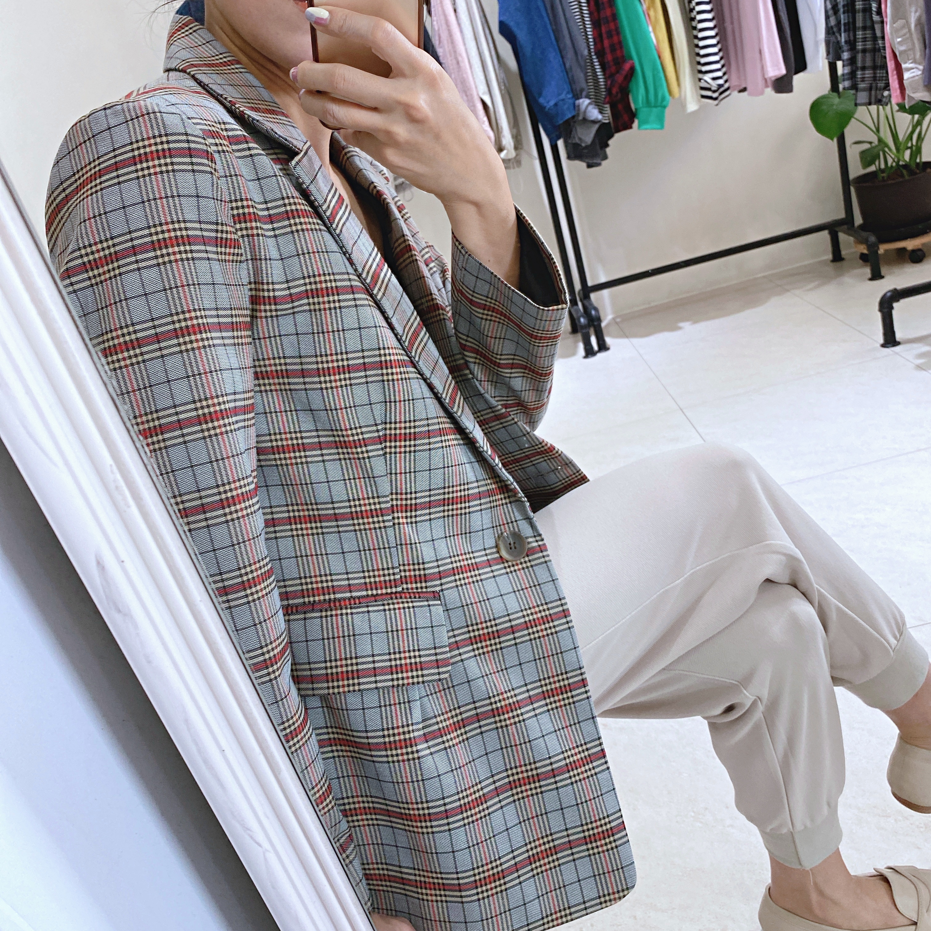 正韓CHIC灰藍復古感格紋西外