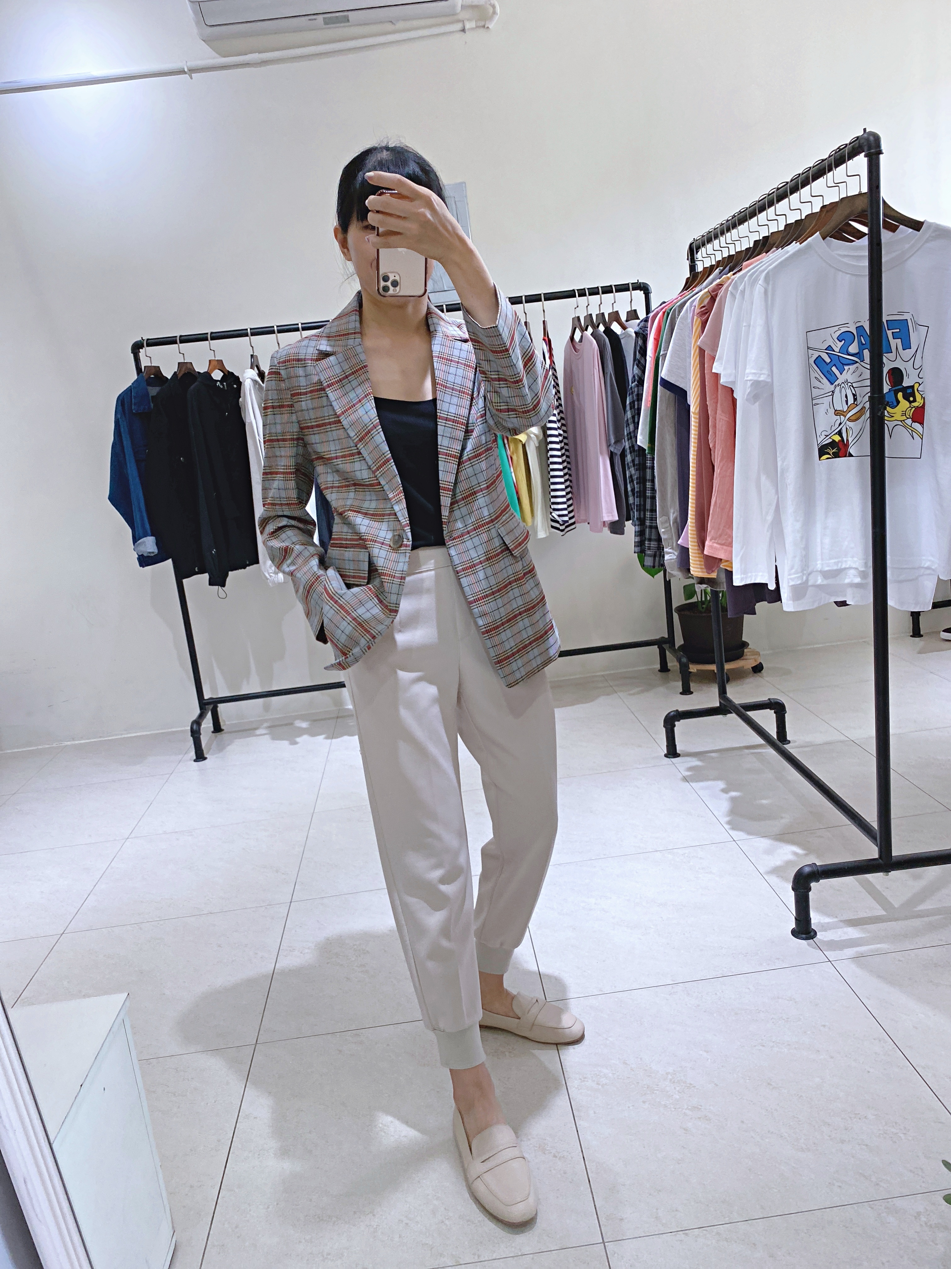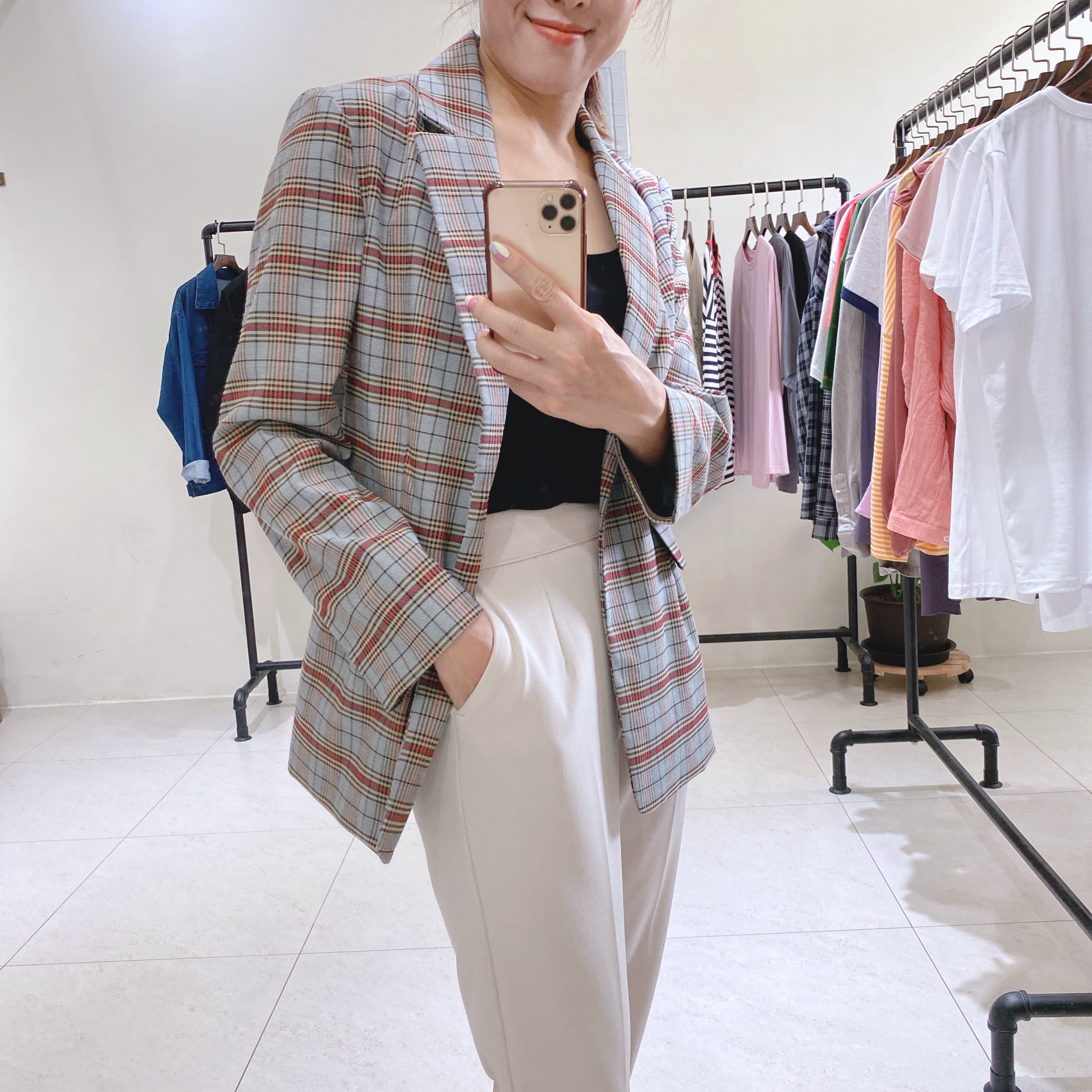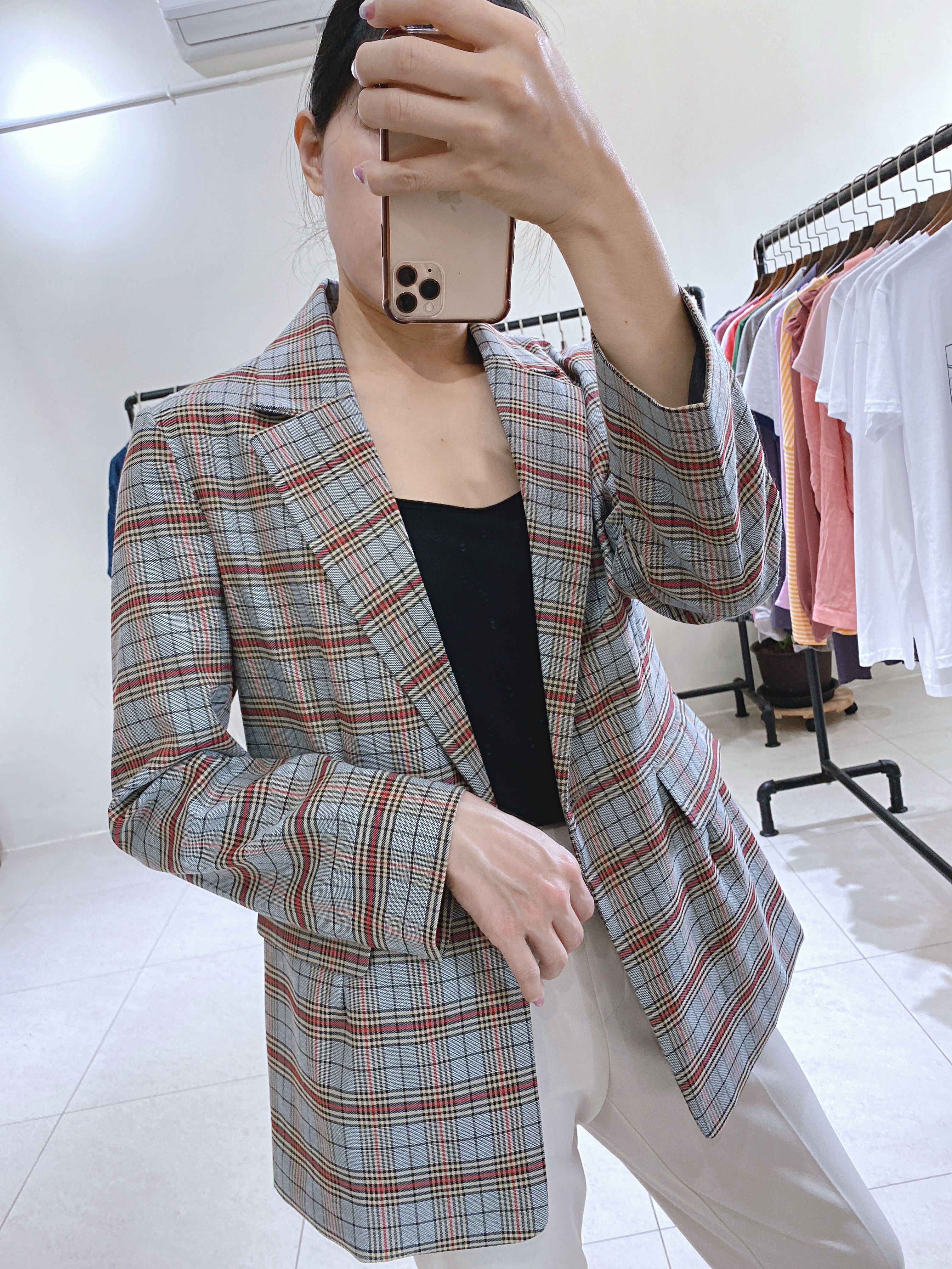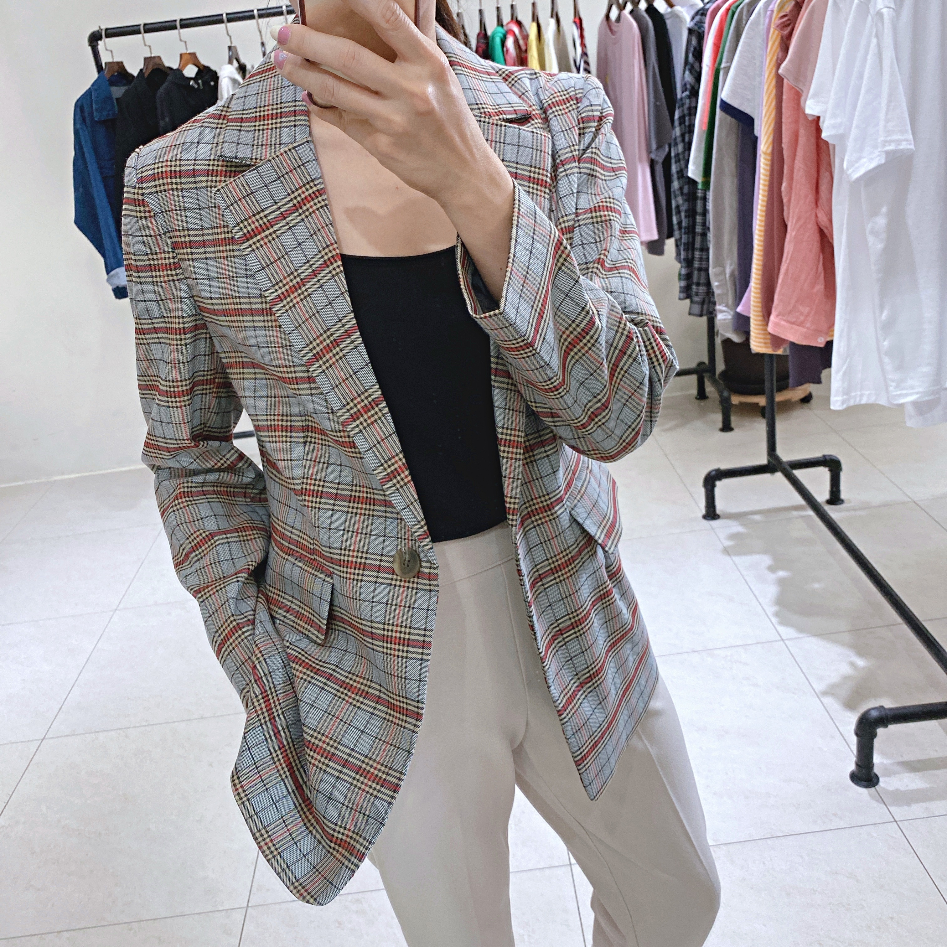 正韓CHIC灰藍復古感格紋西外