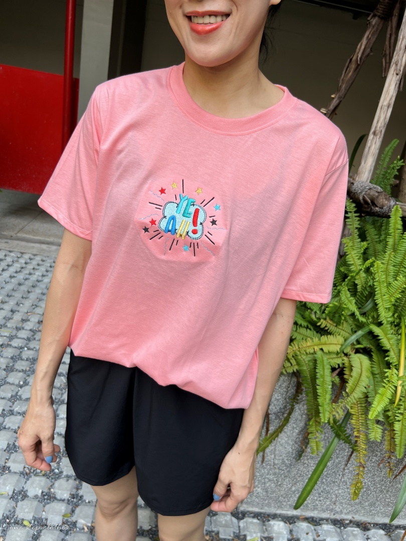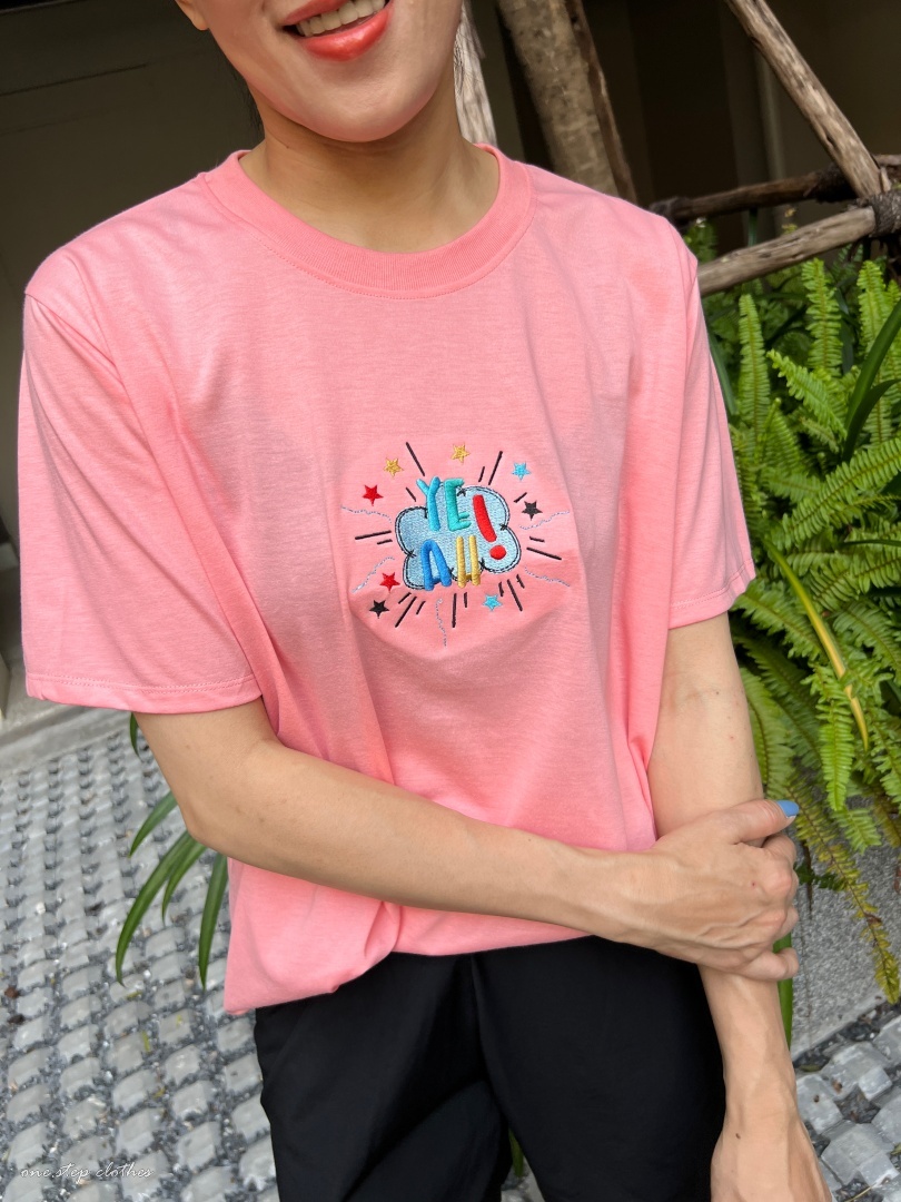 泰國彩色YEAH立體刺繡T (粉)
