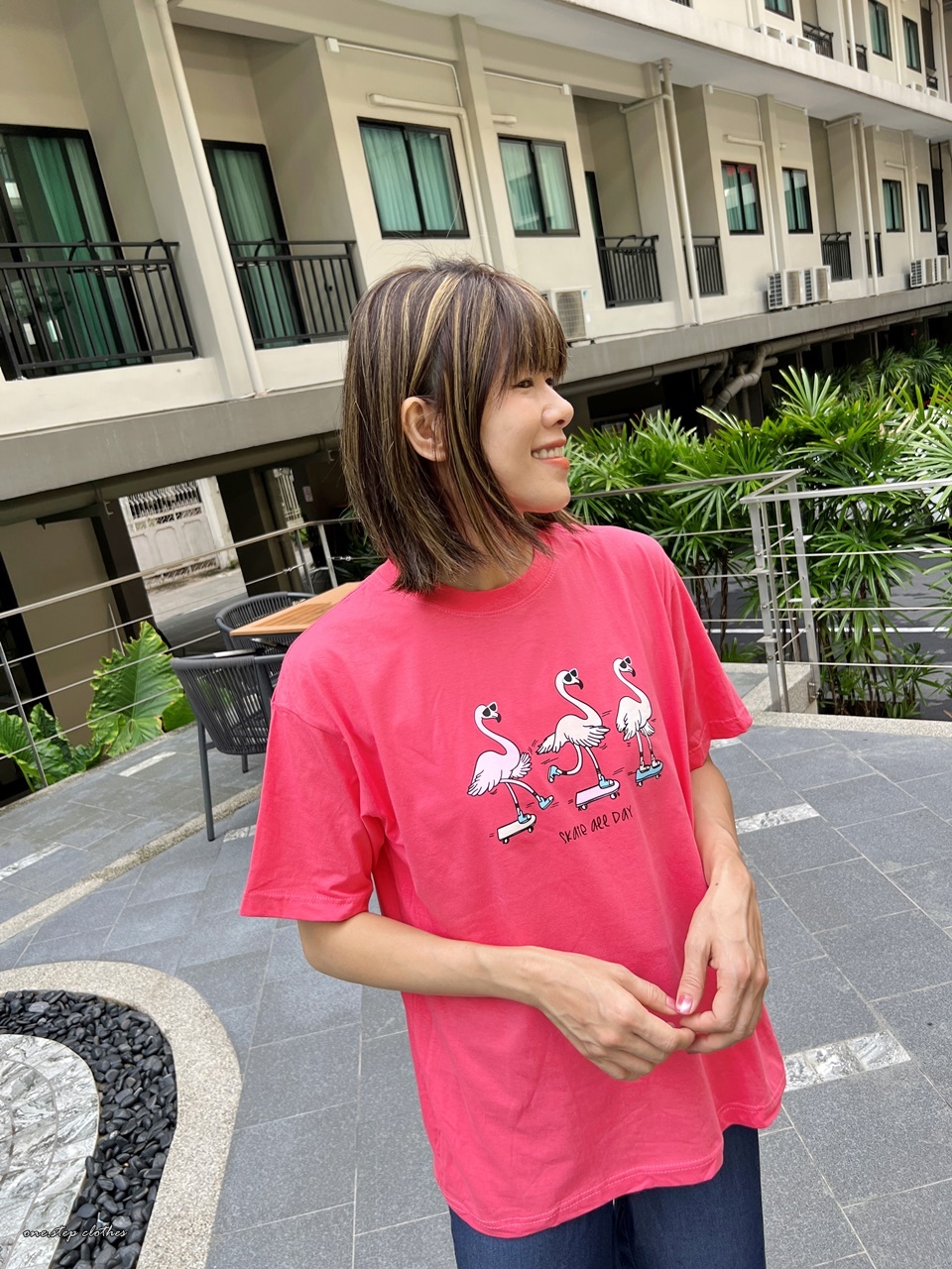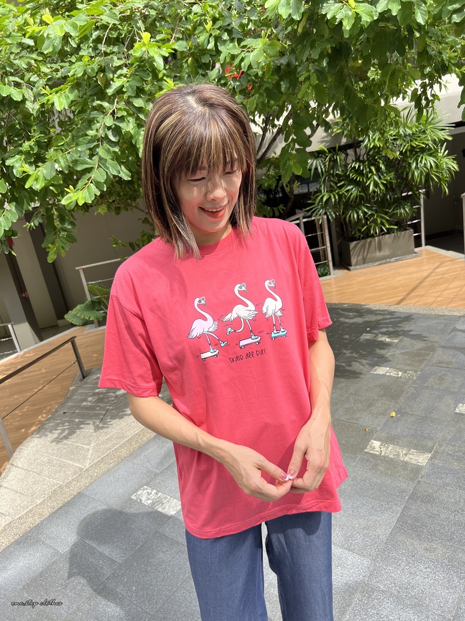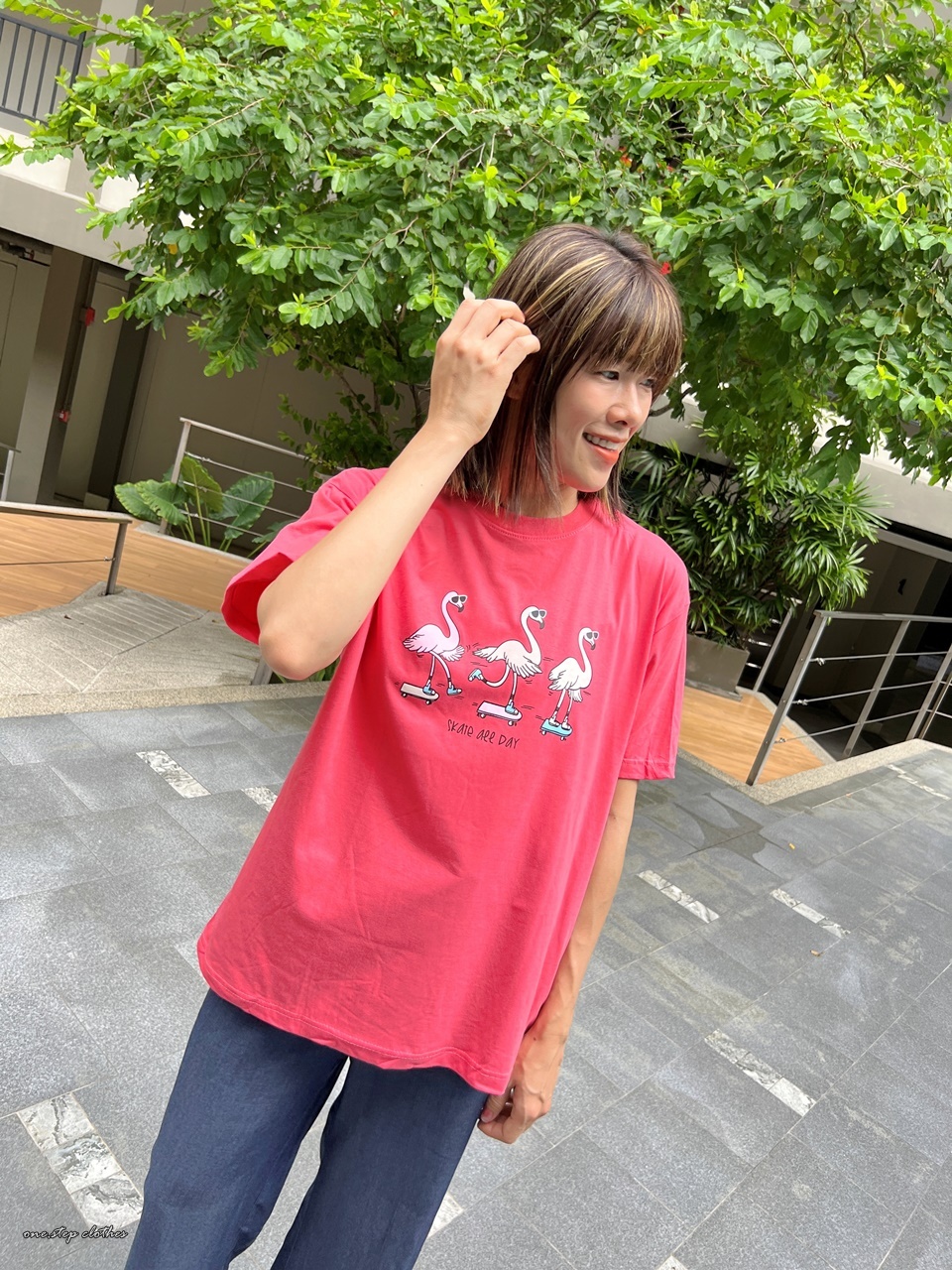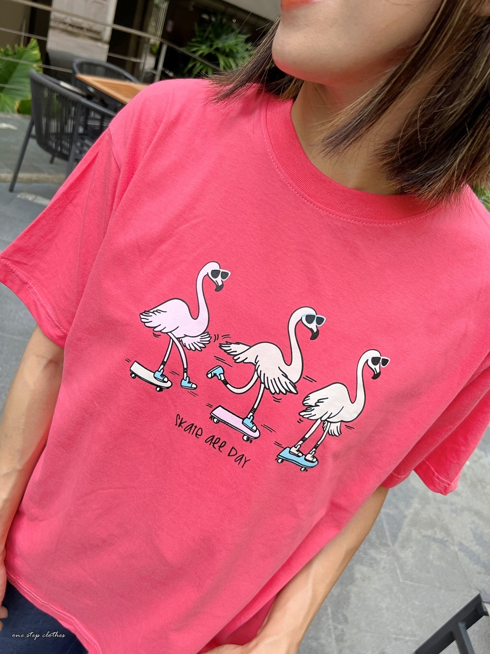 泰國俏皮紅鶴溜滑板T