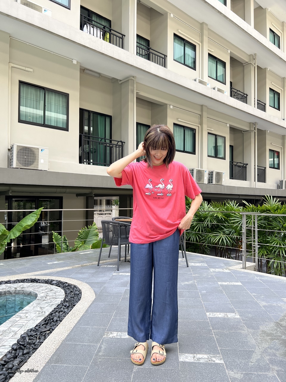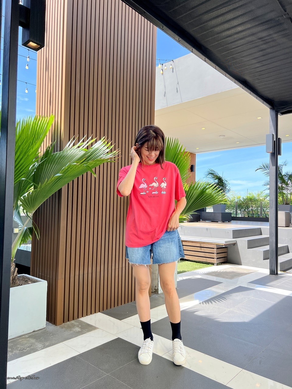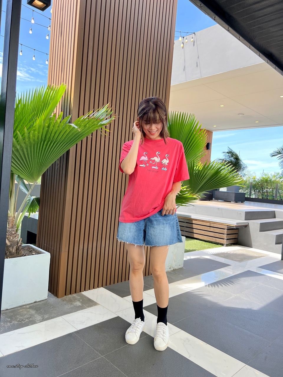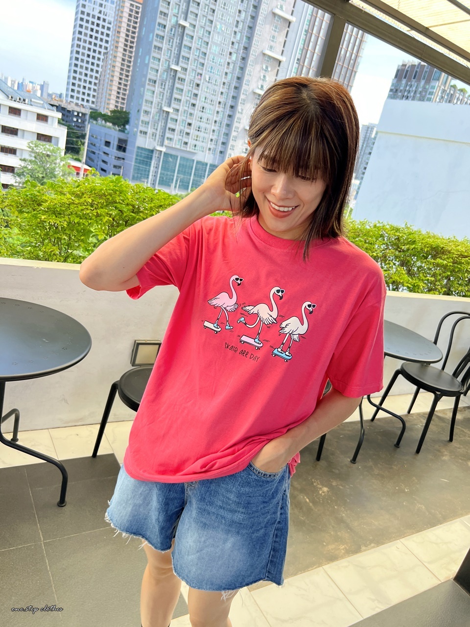 泰國俏皮紅鶴溜滑板T