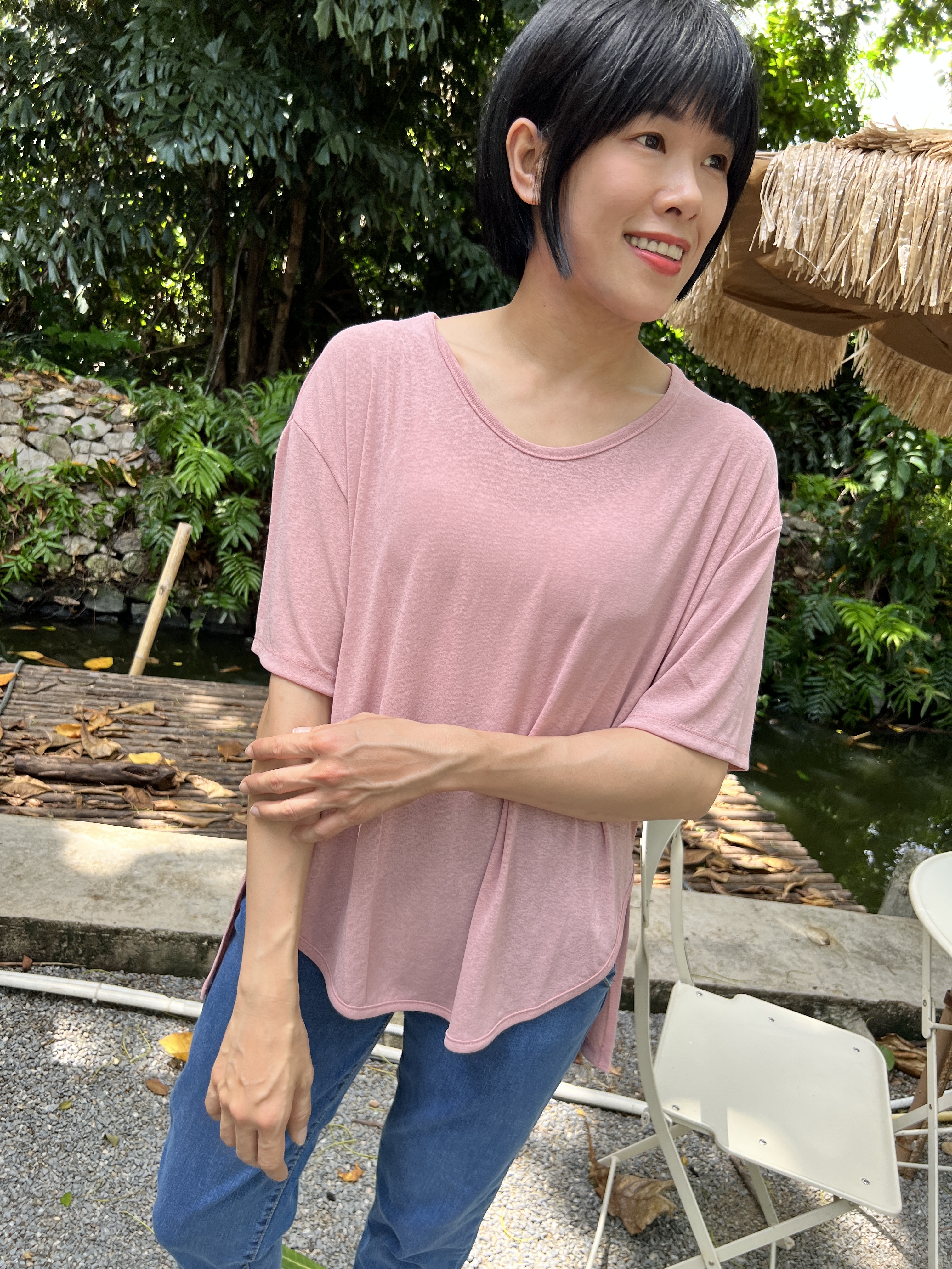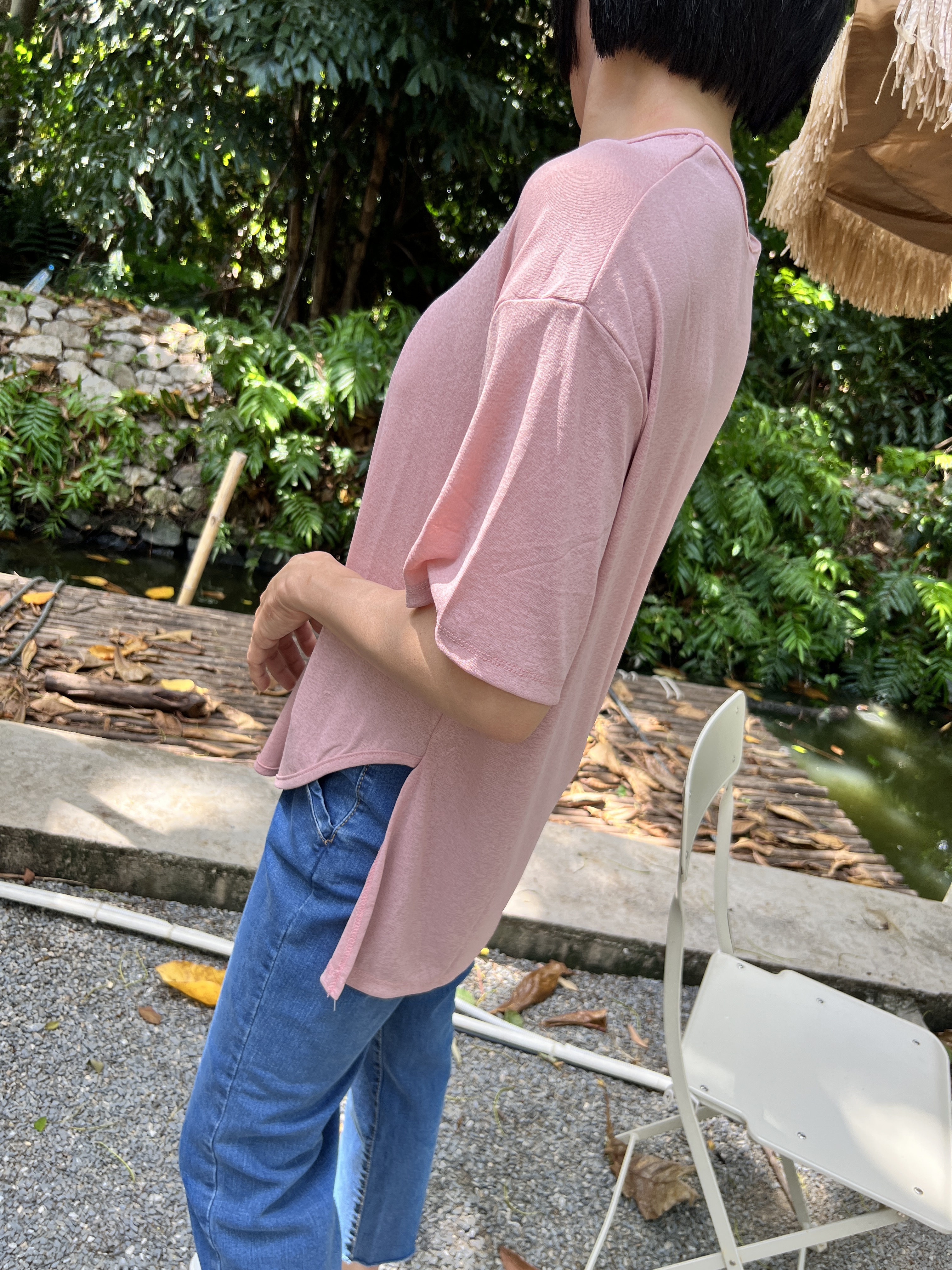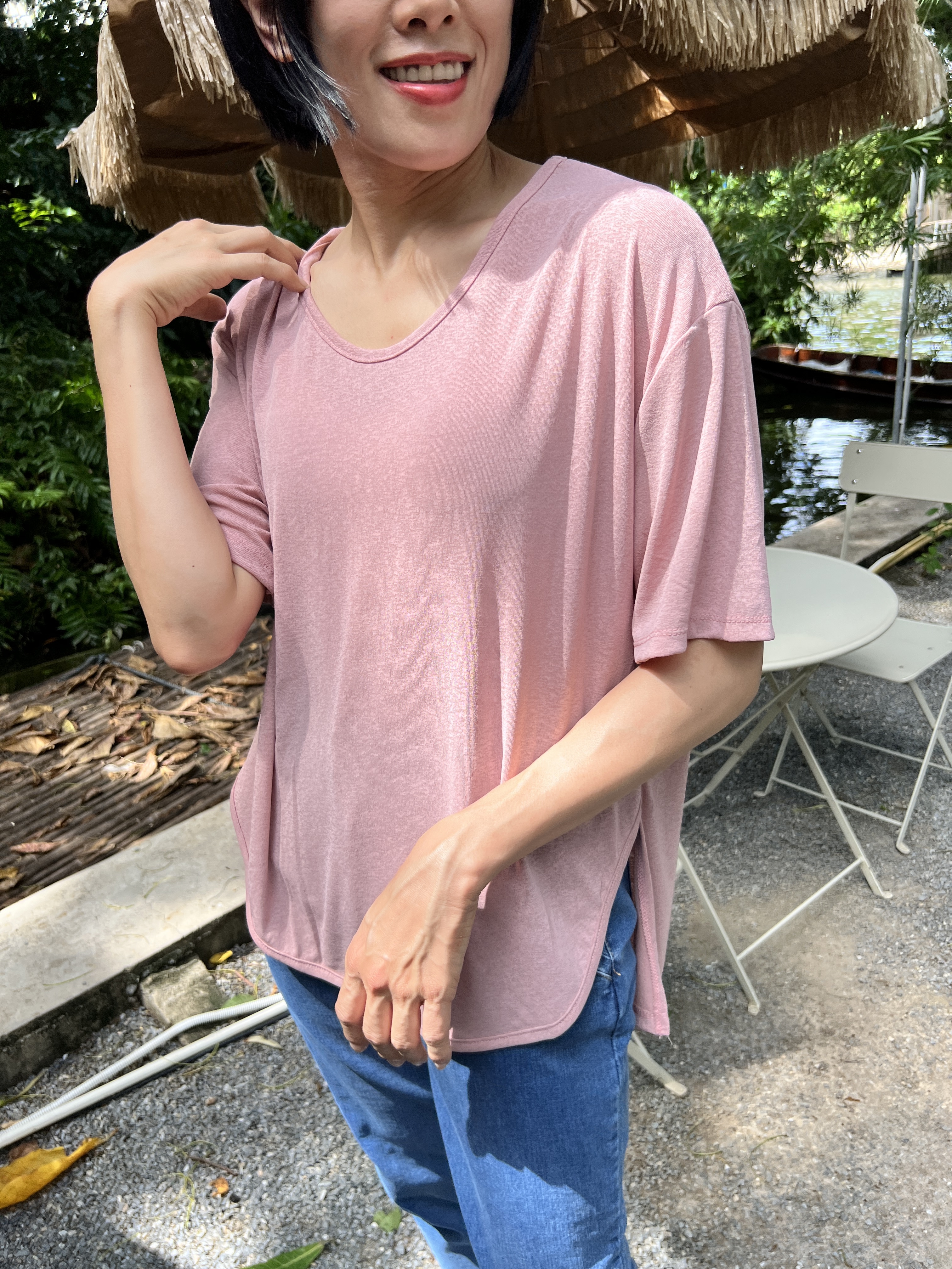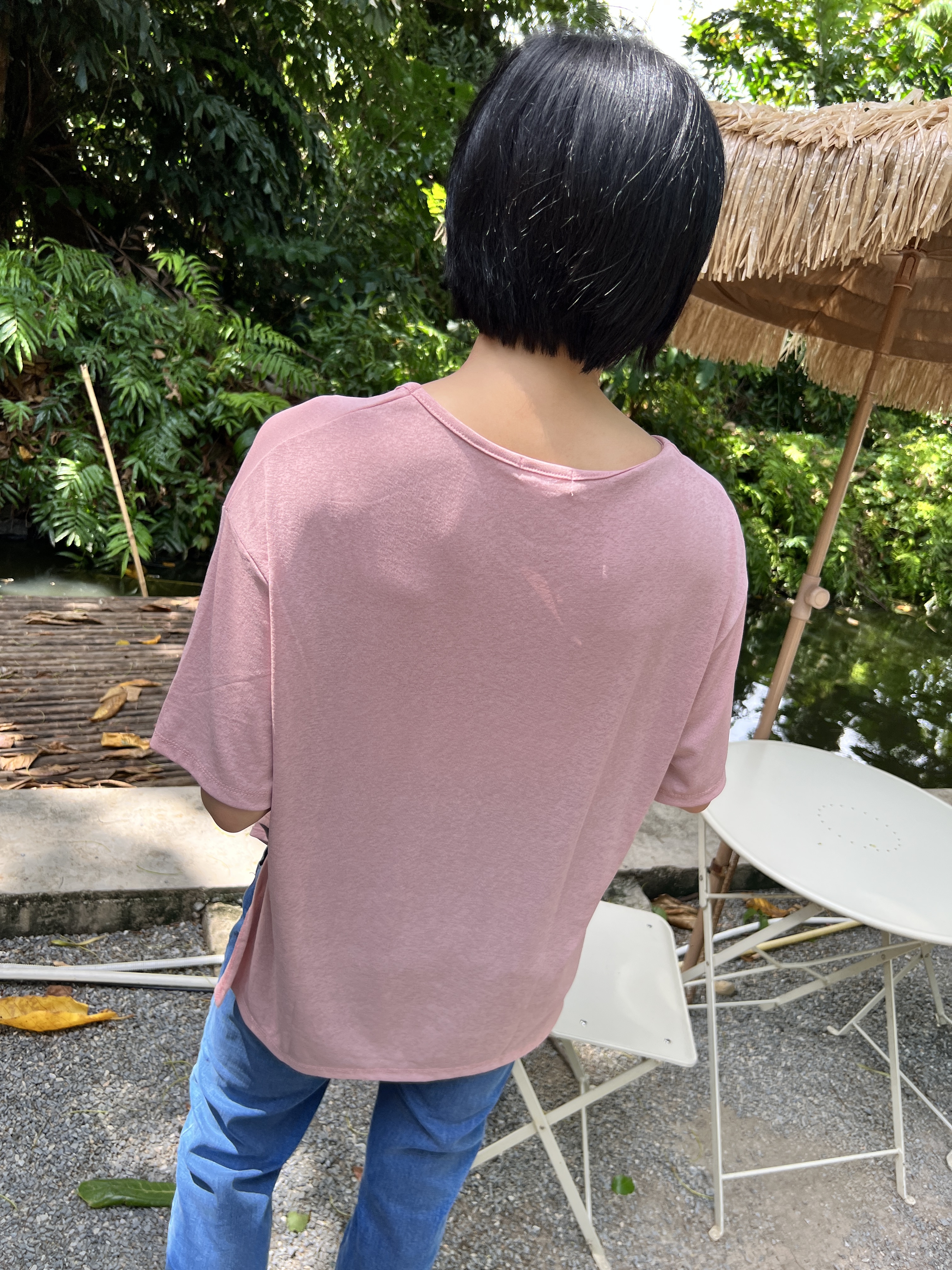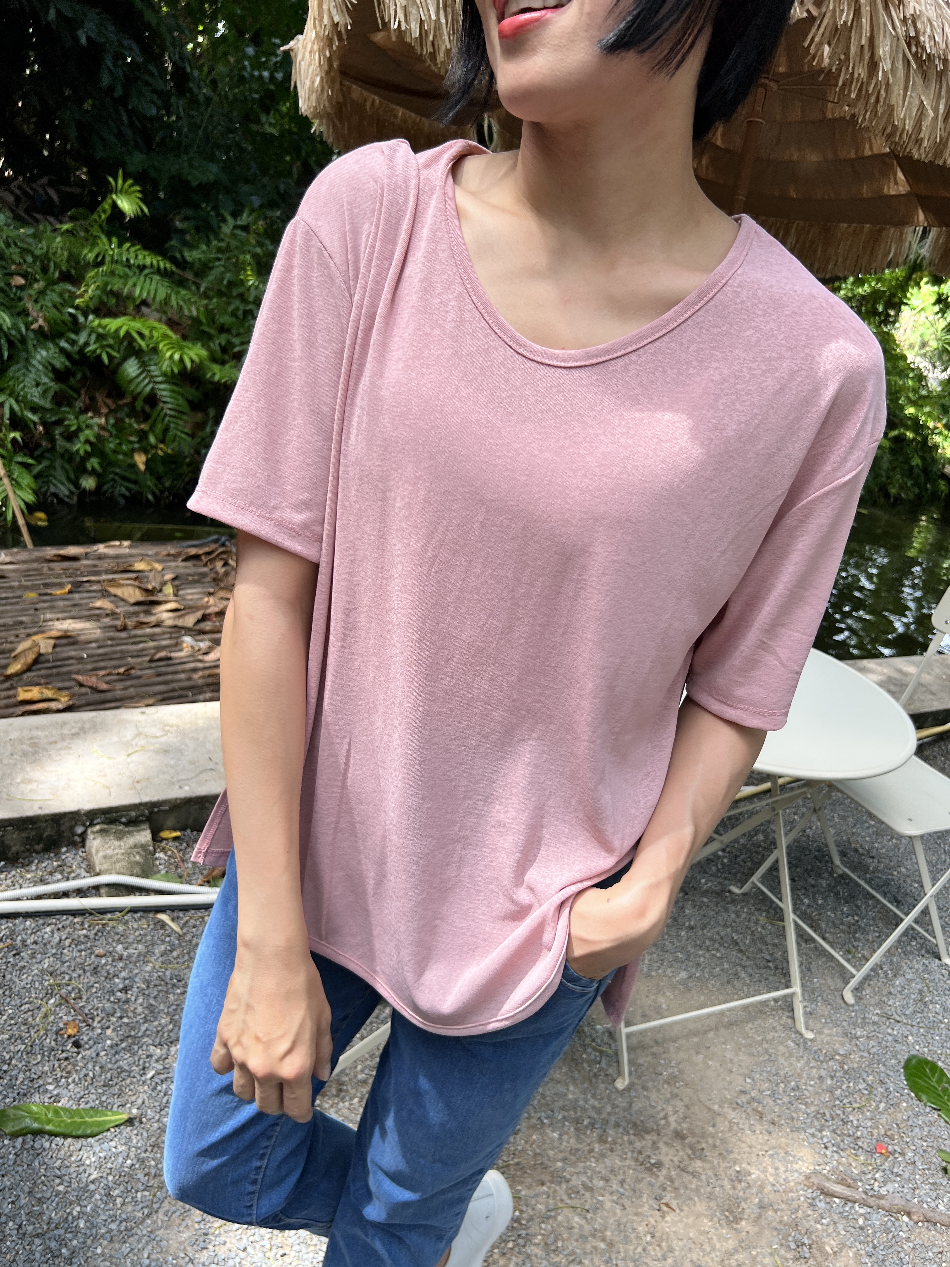 泰國超級涼爽顯瘦麻紗素T (粉)