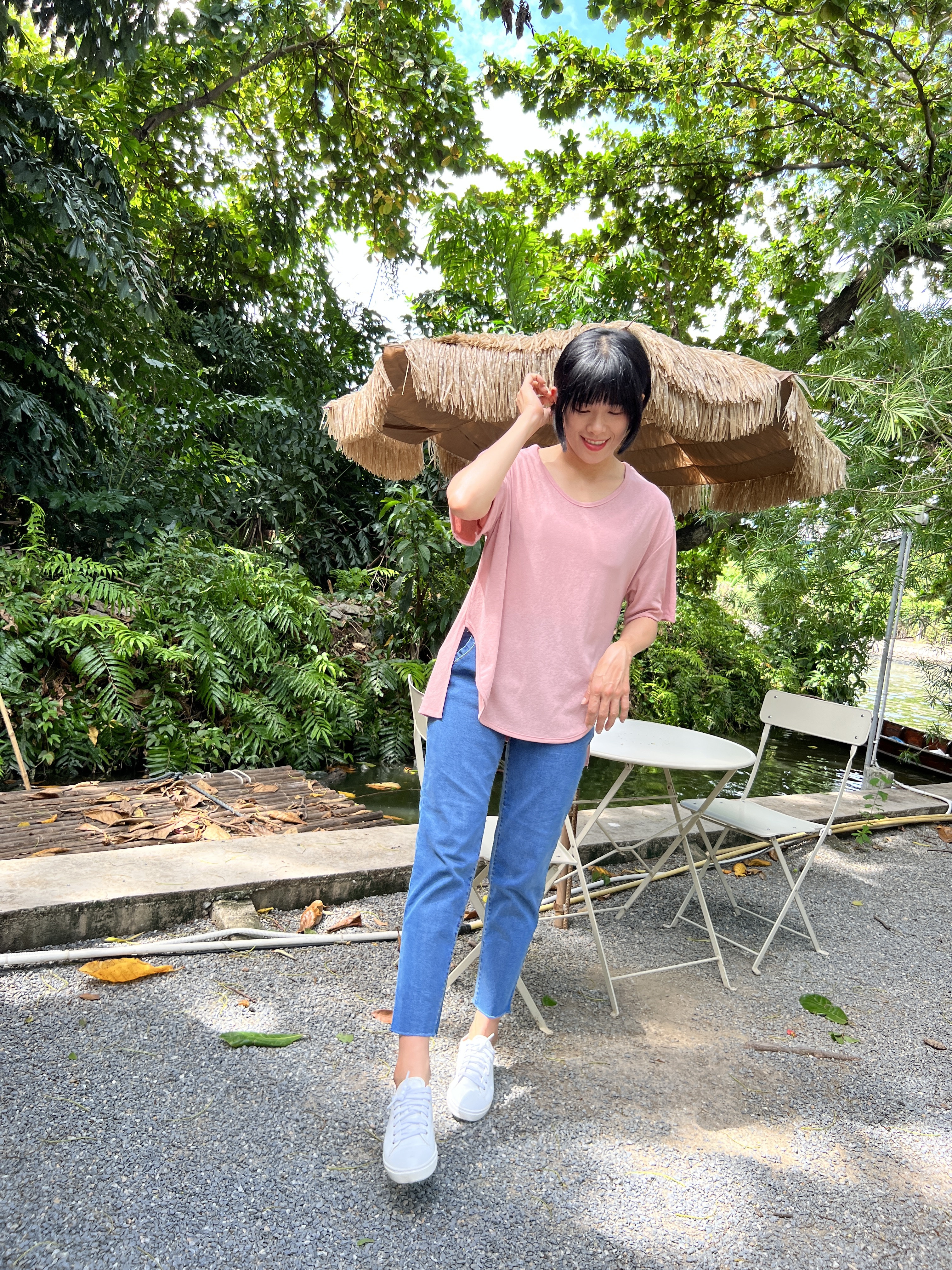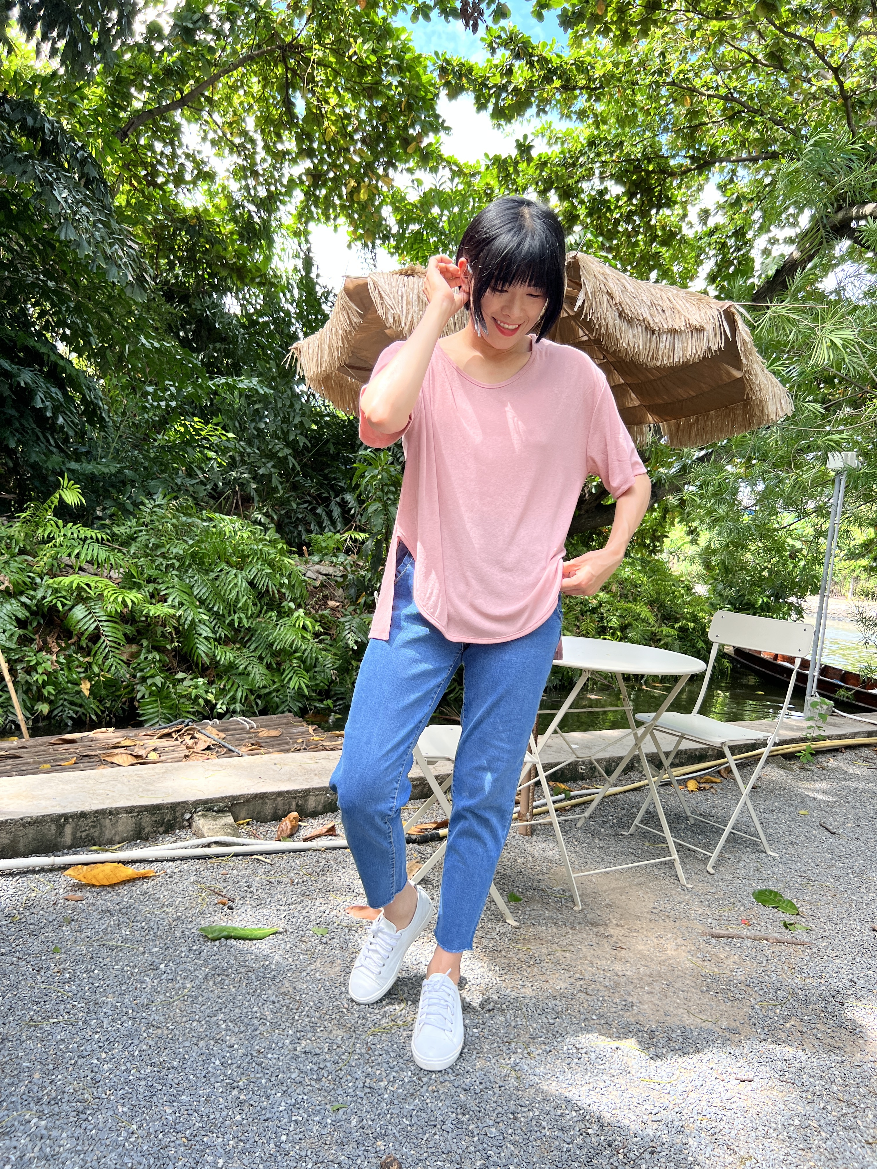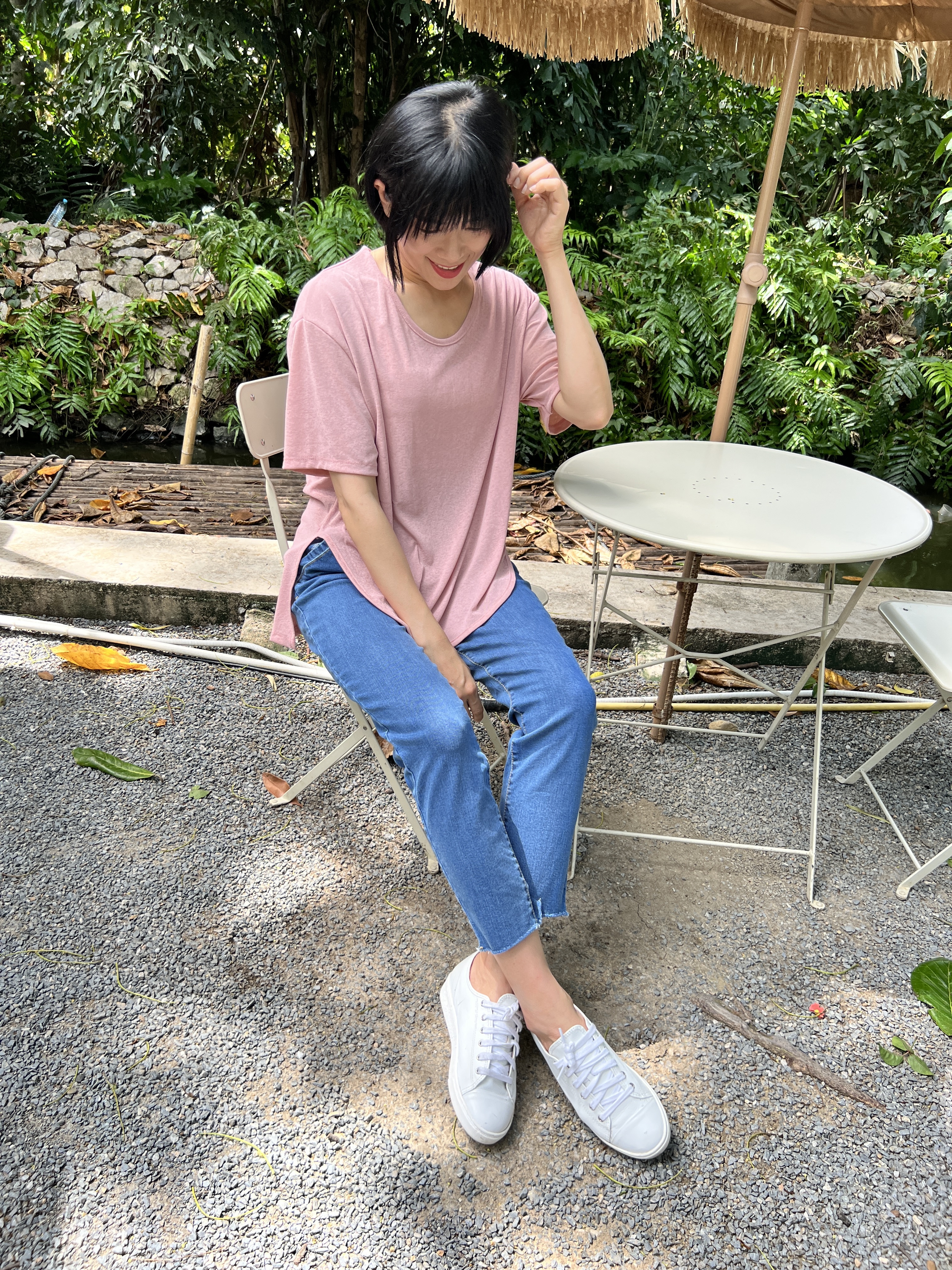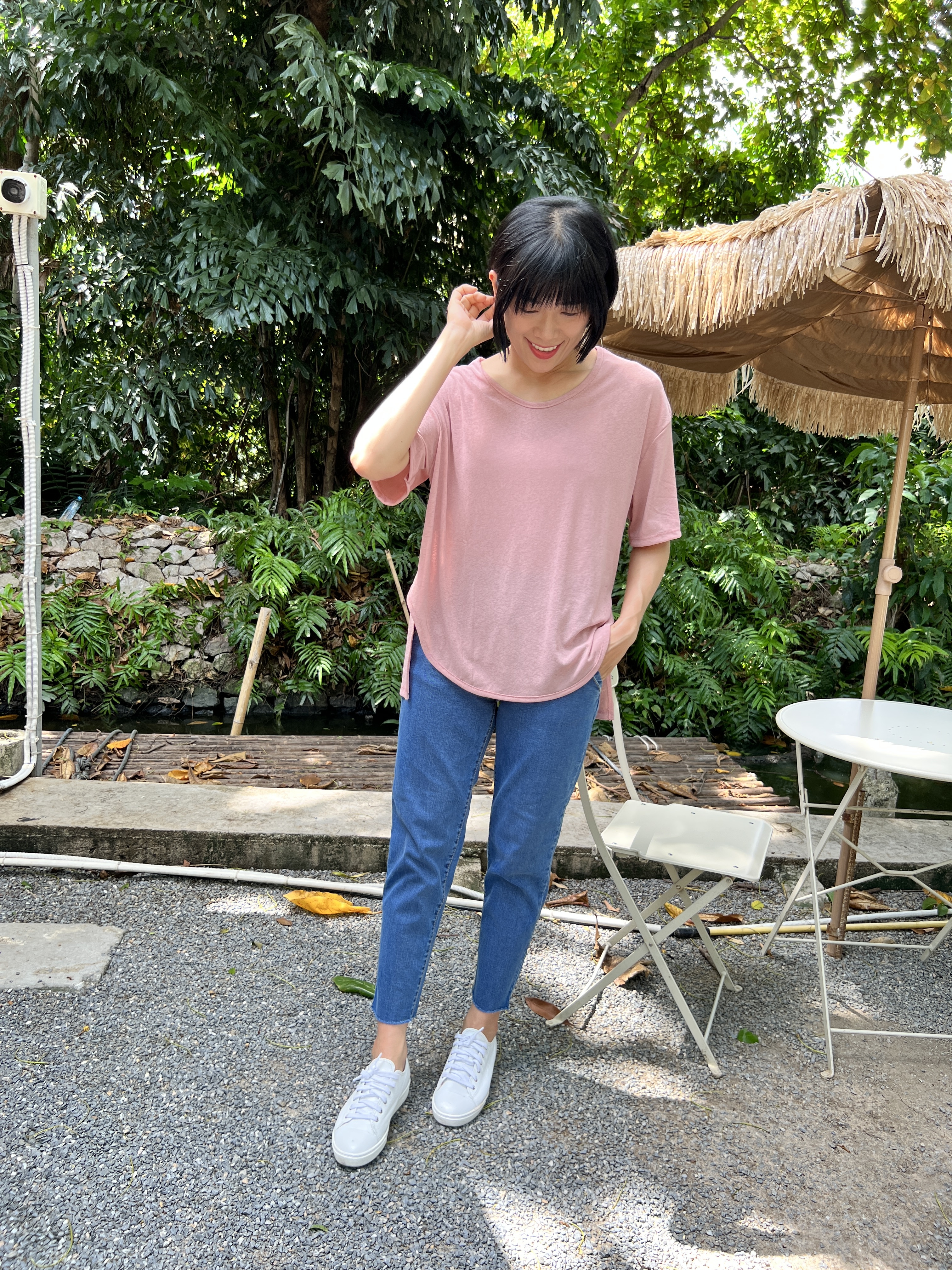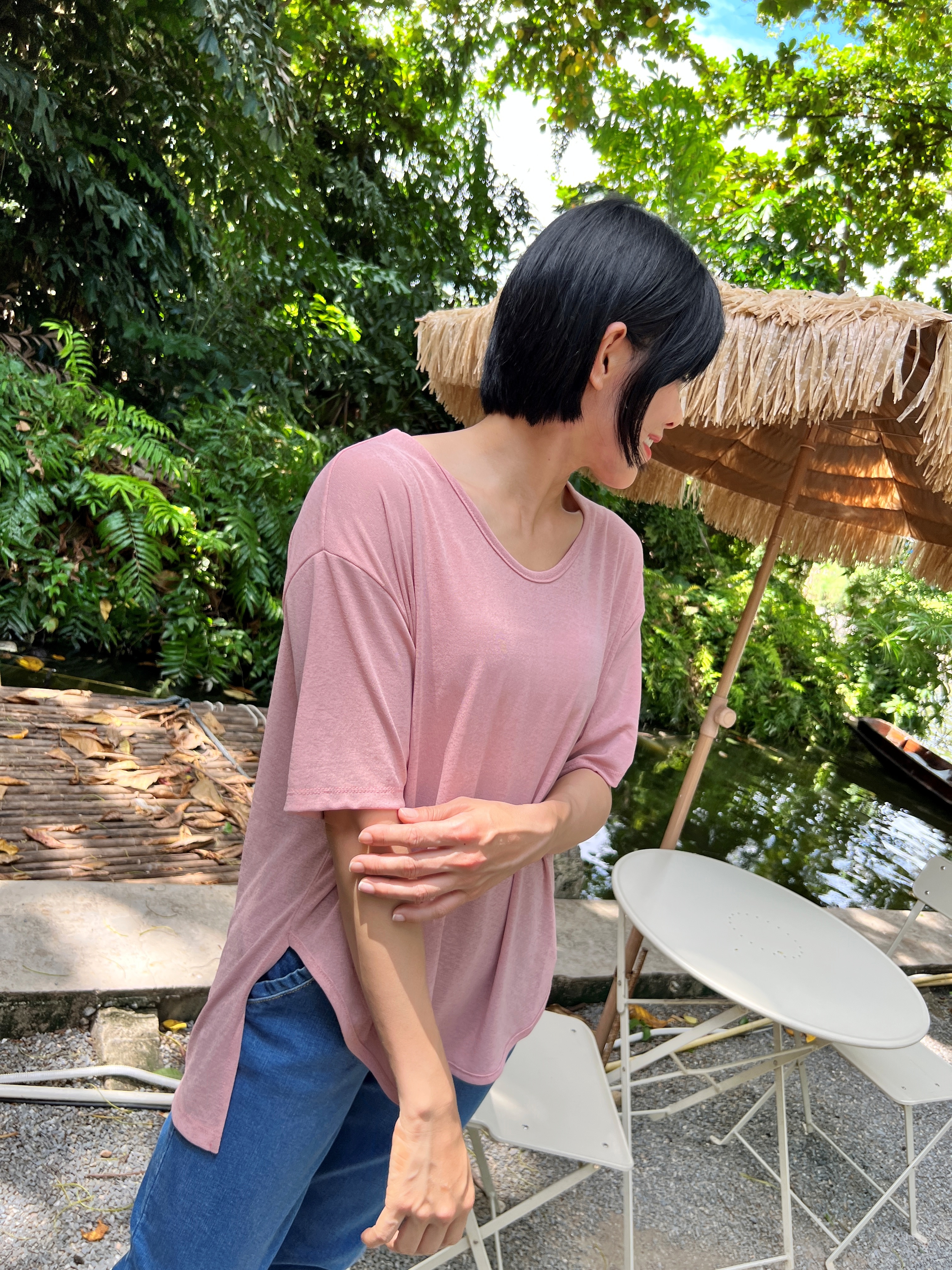泰國超級涼爽顯瘦麻紗素T (粉)