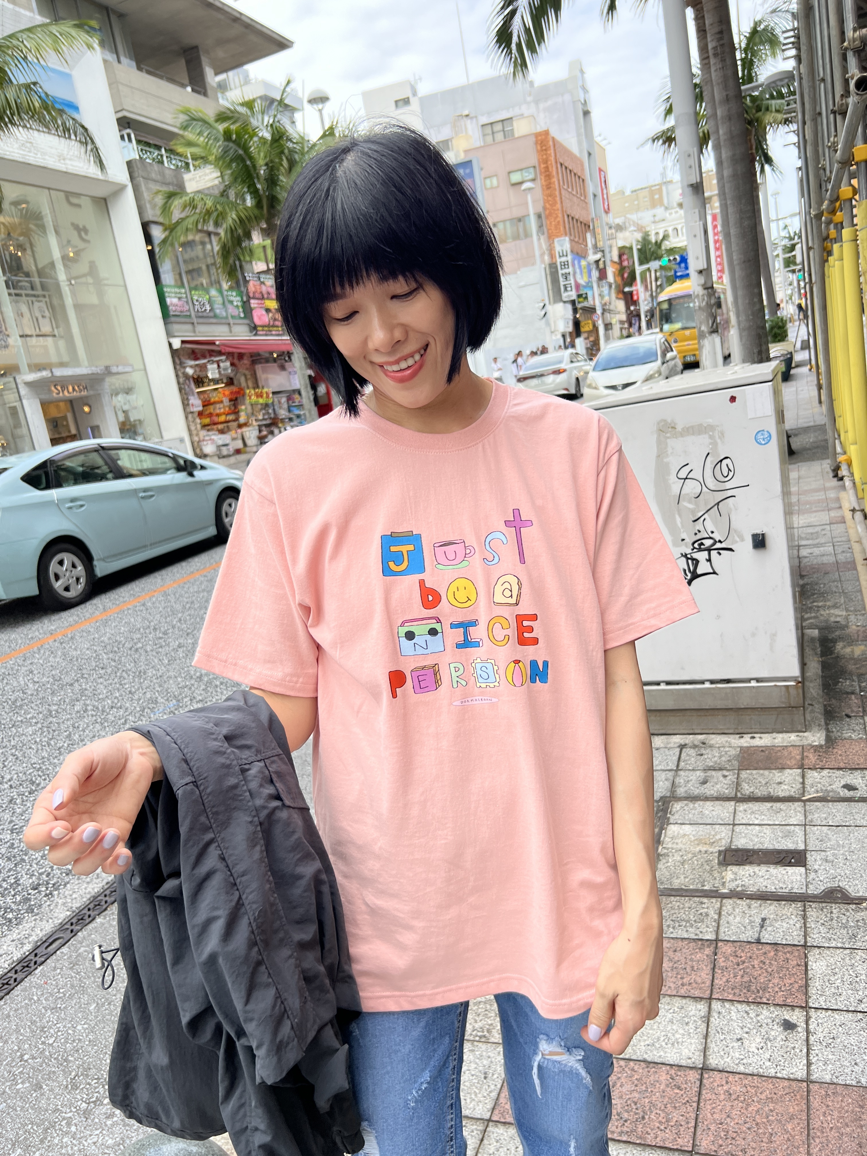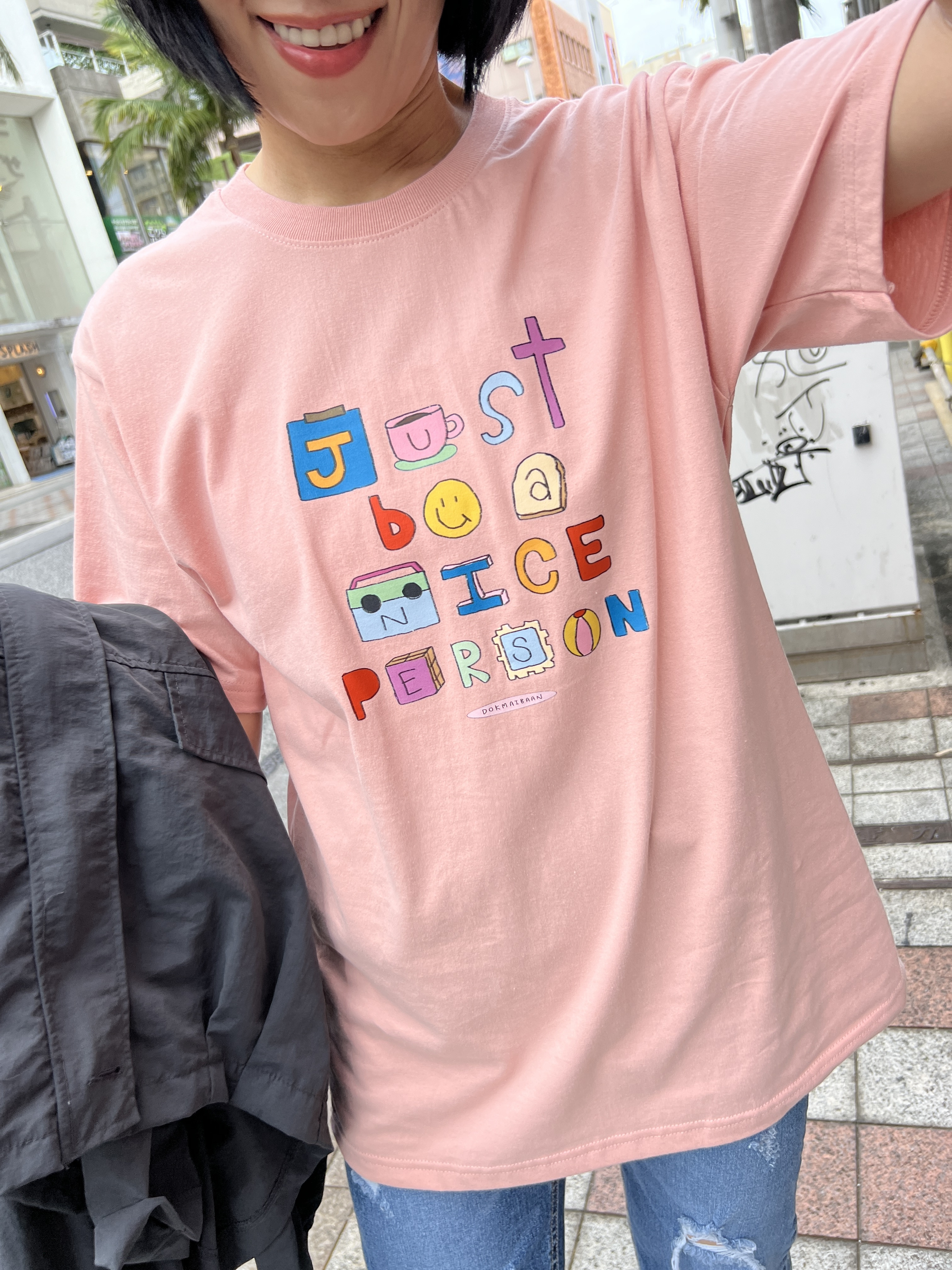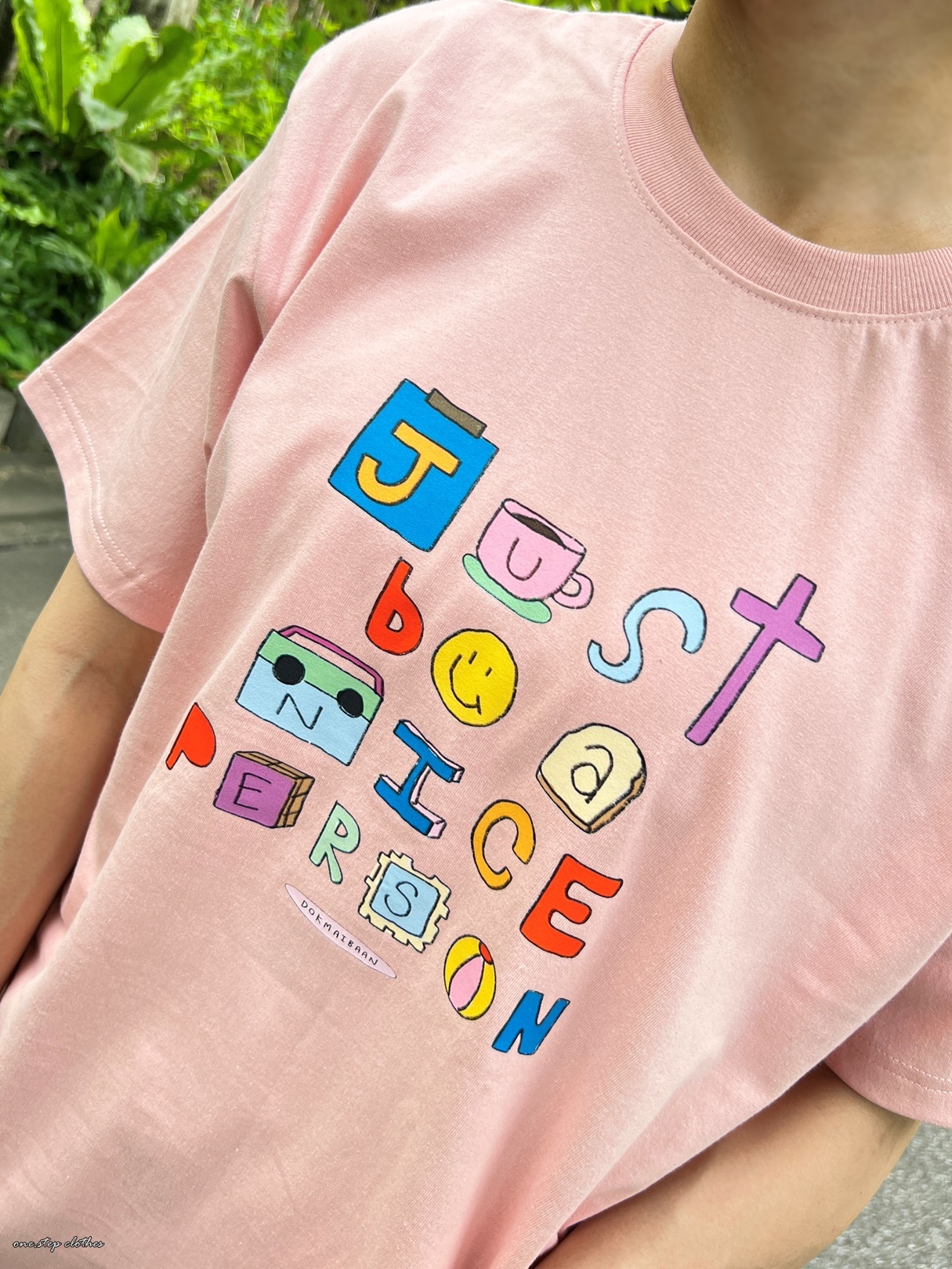 泰國可愛彩色字母BE NICE粉色T