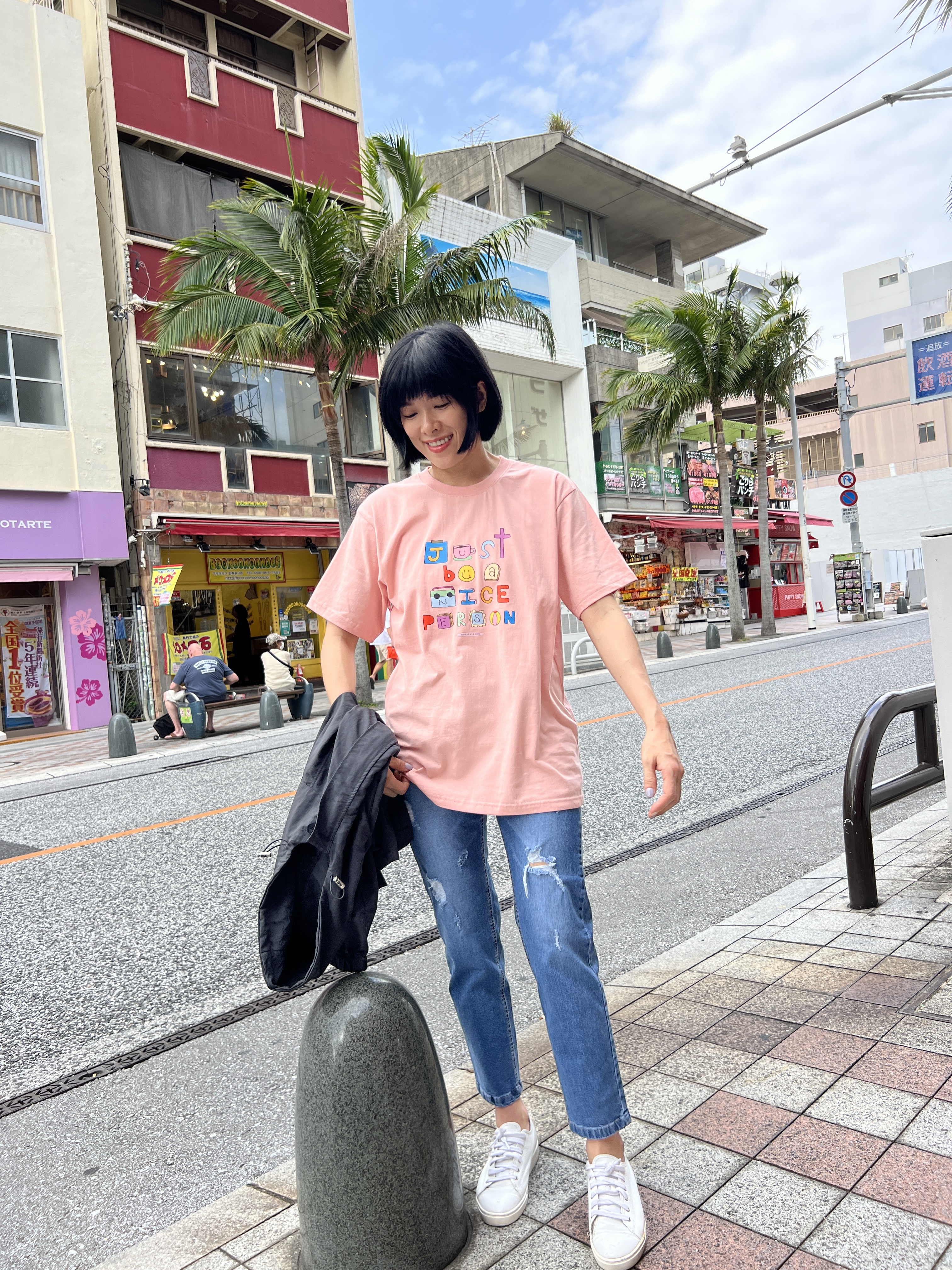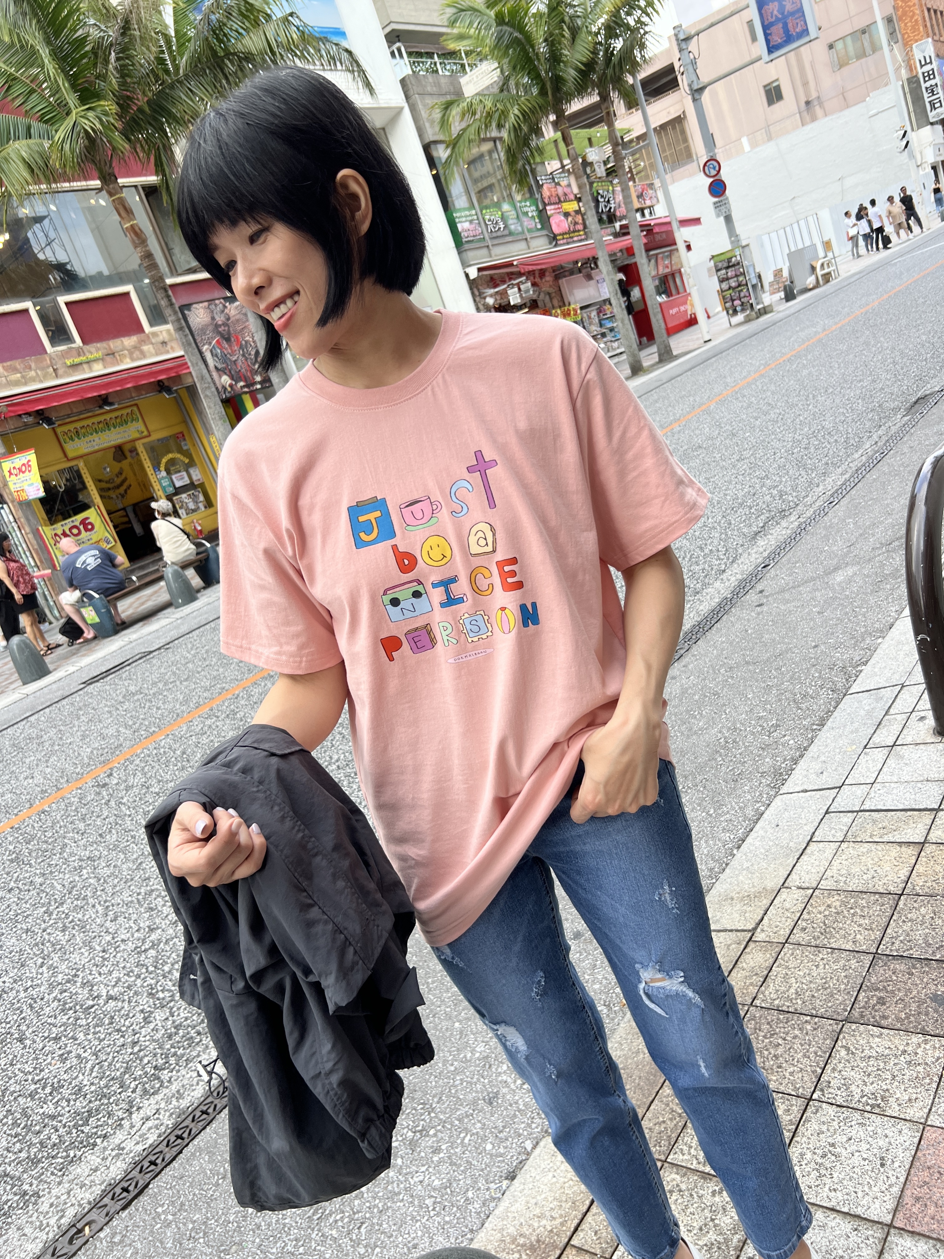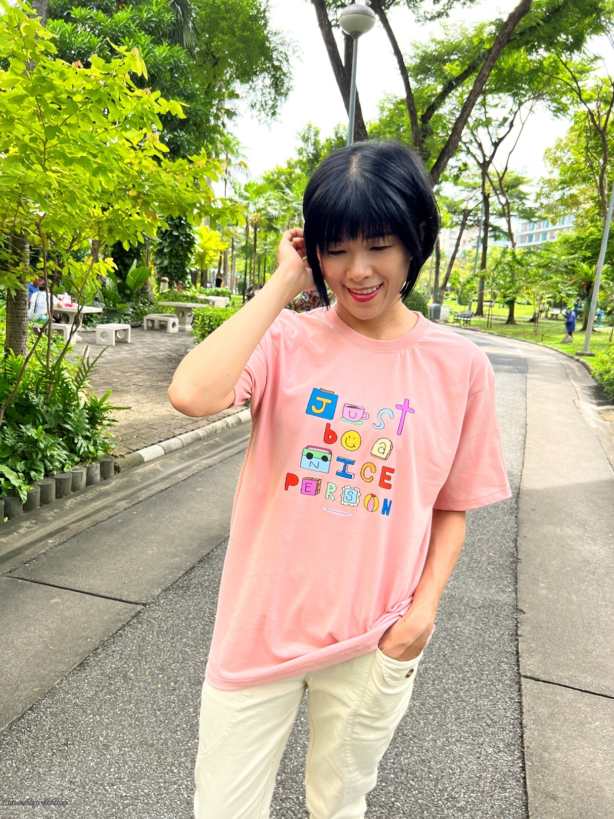 泰國可愛彩色字母BE NICE粉色T