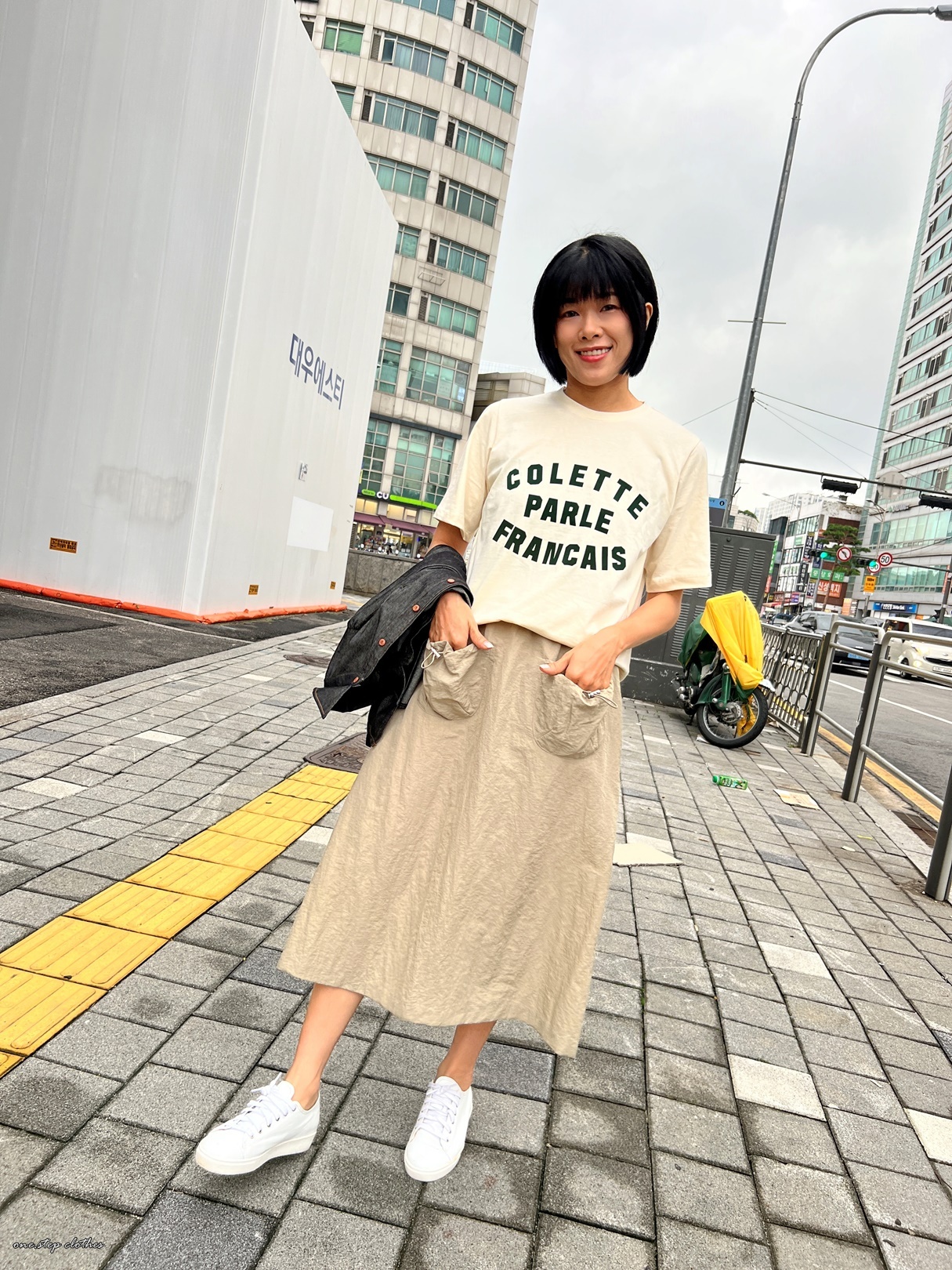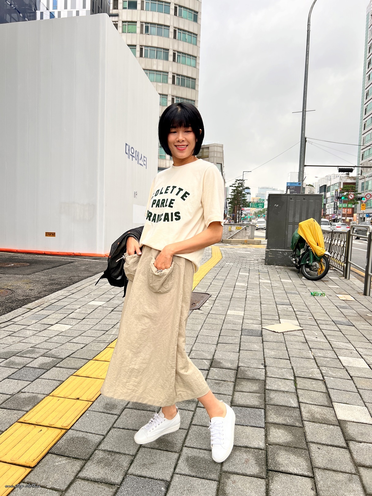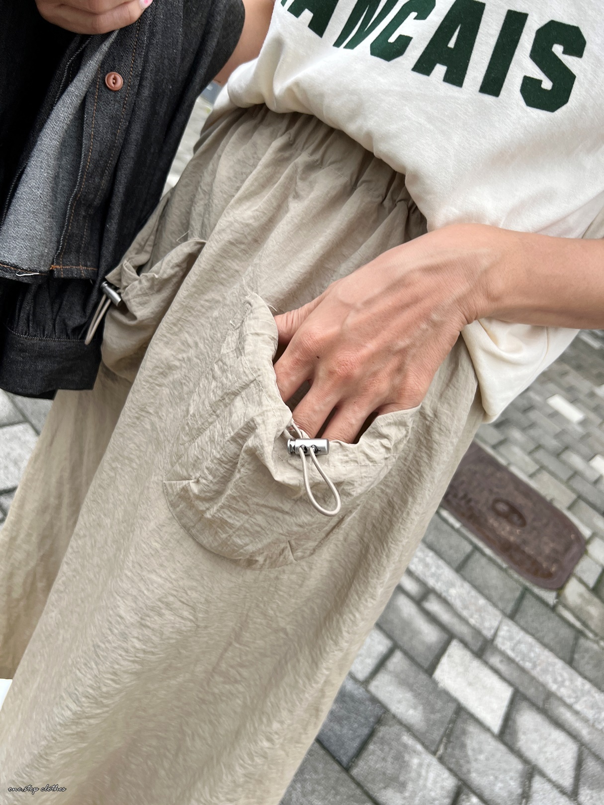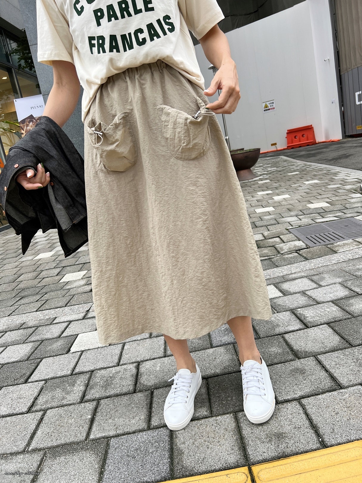正韓工裝感可愛口袋尼龍裙 (米)