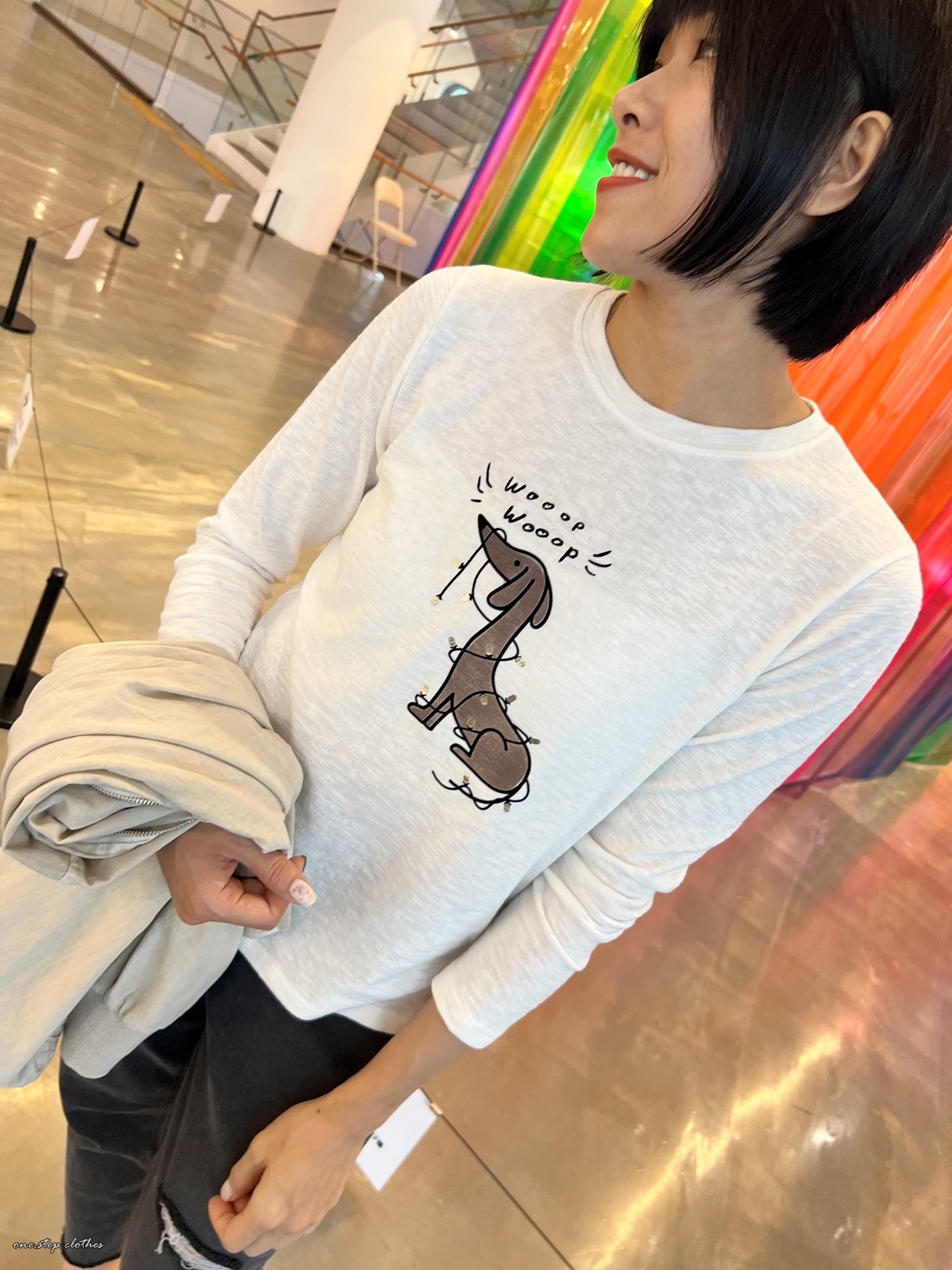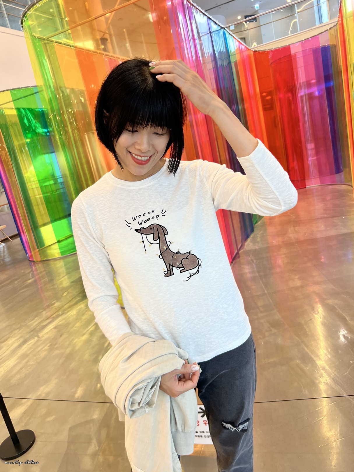 正韓俏皮燈泡圍繞狗狗T