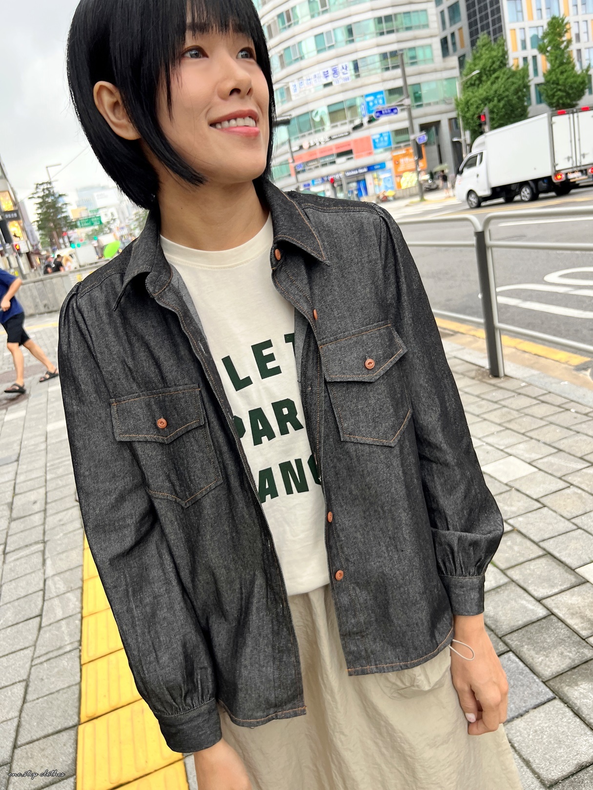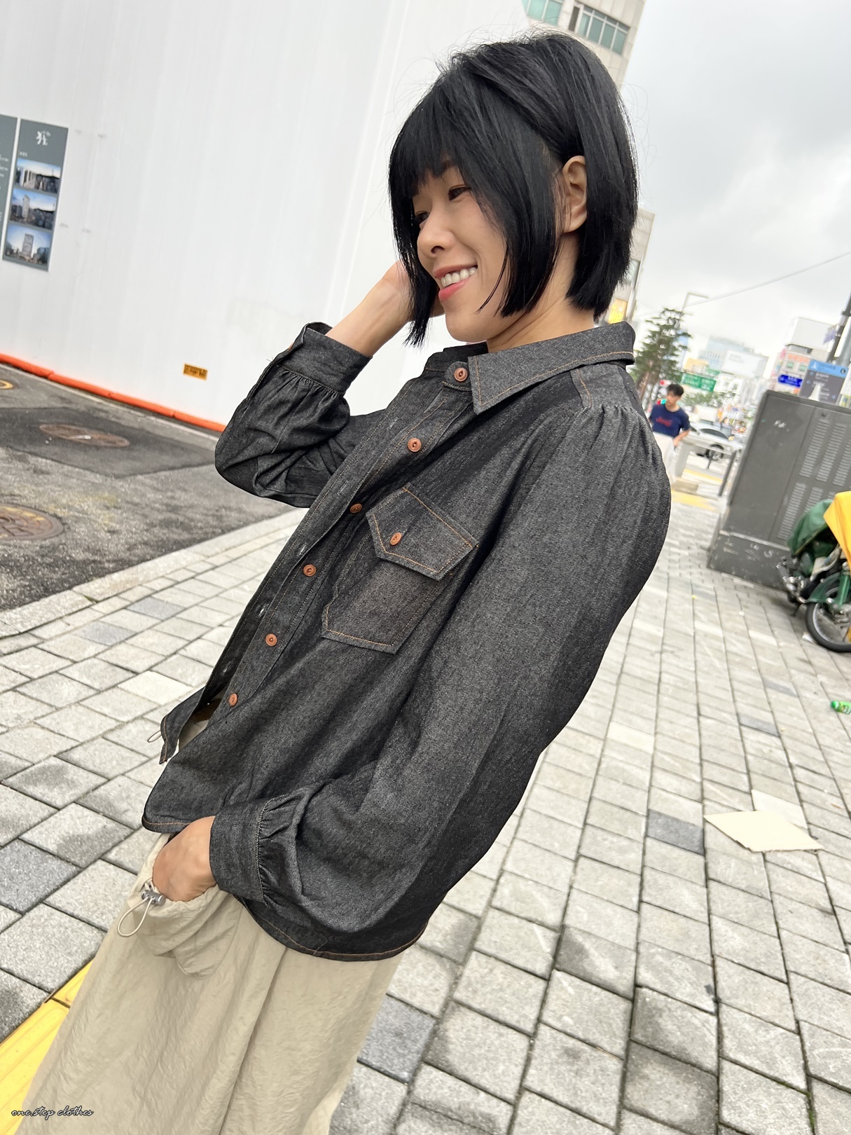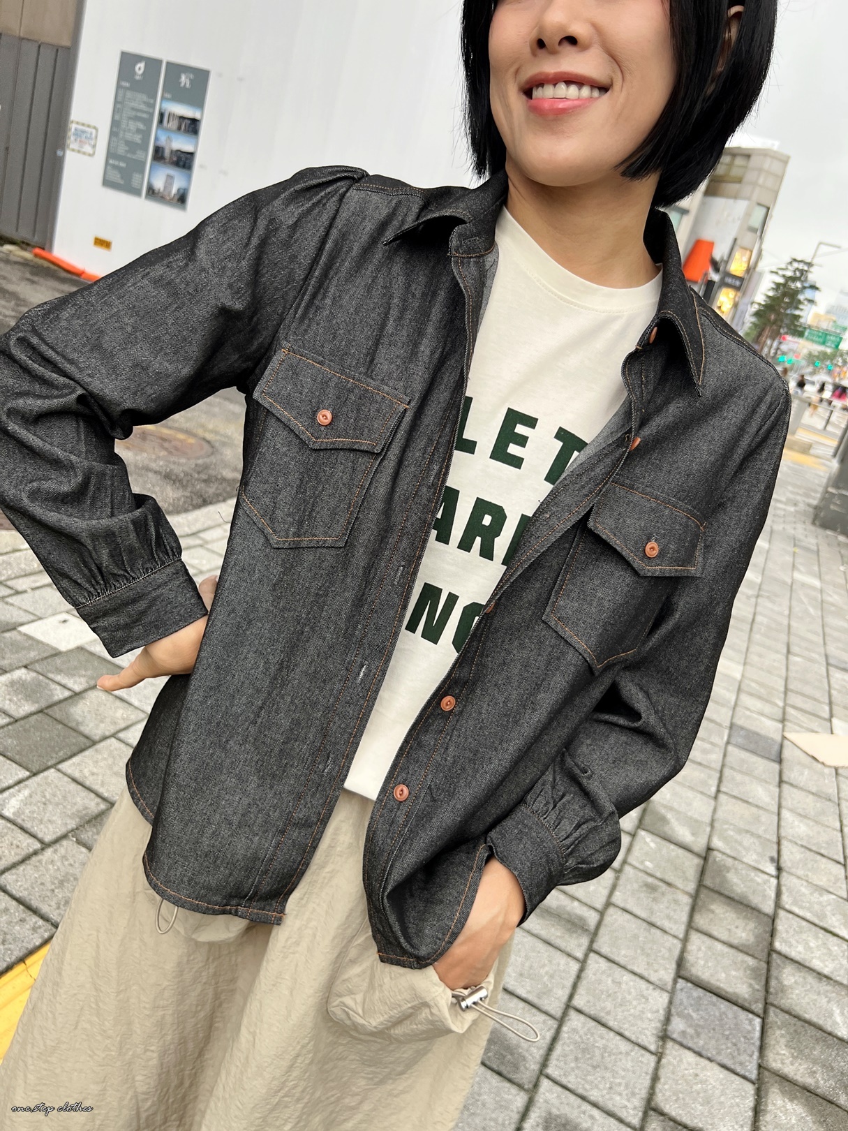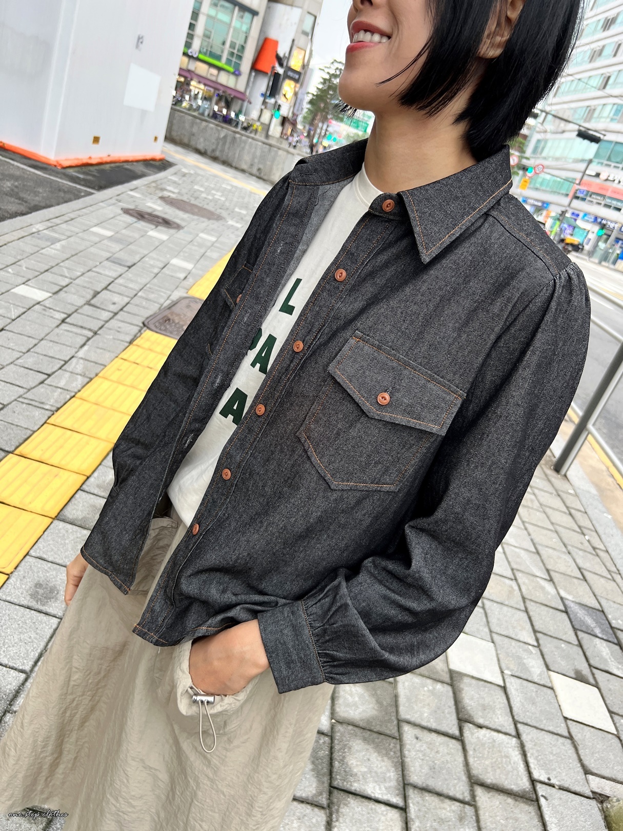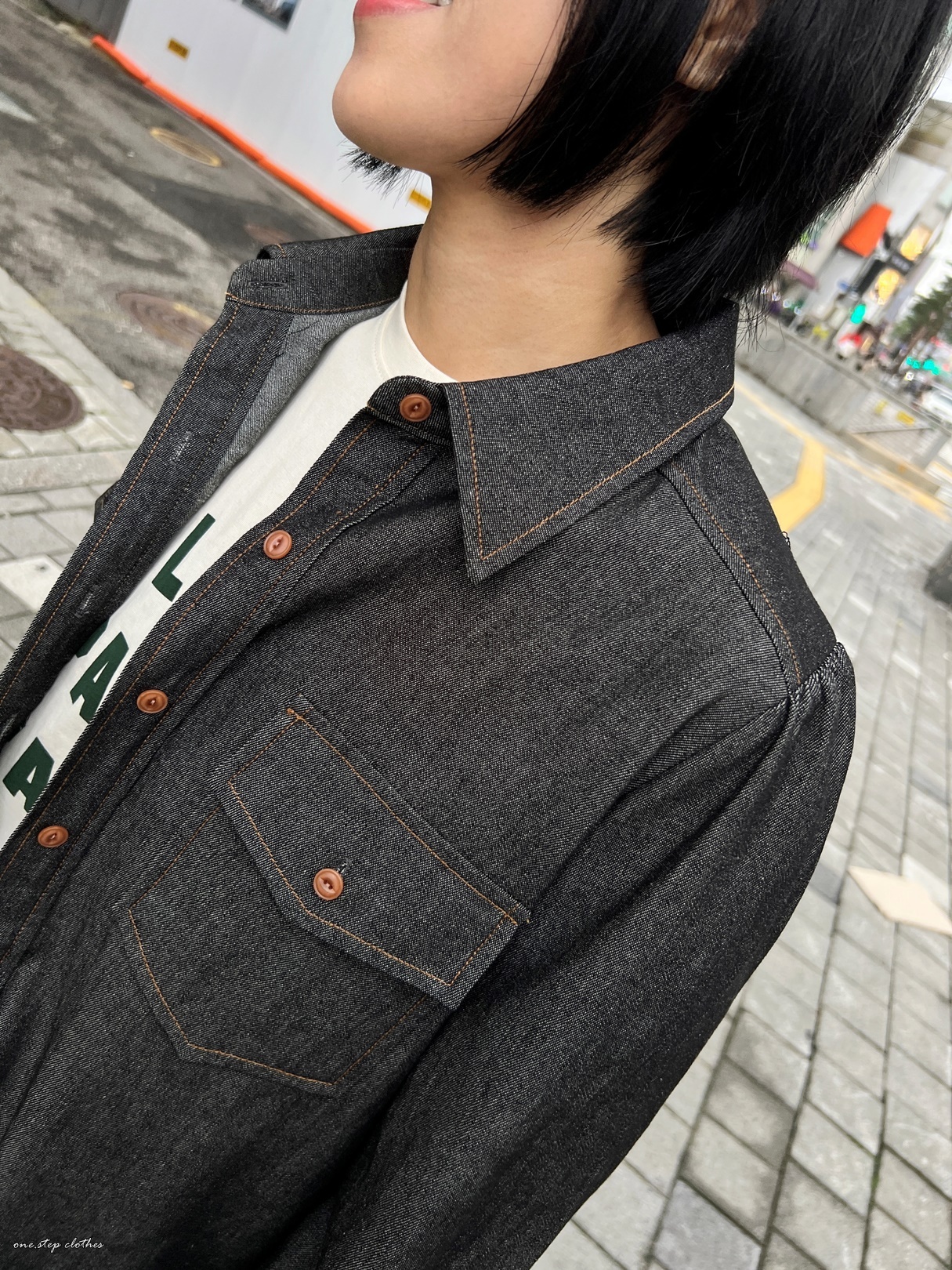 正韓超挺版車邊細節牛仔口袋襯衫 (黑)
