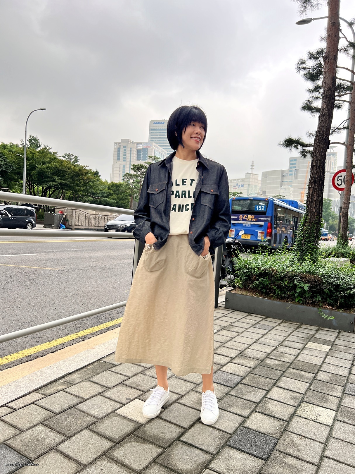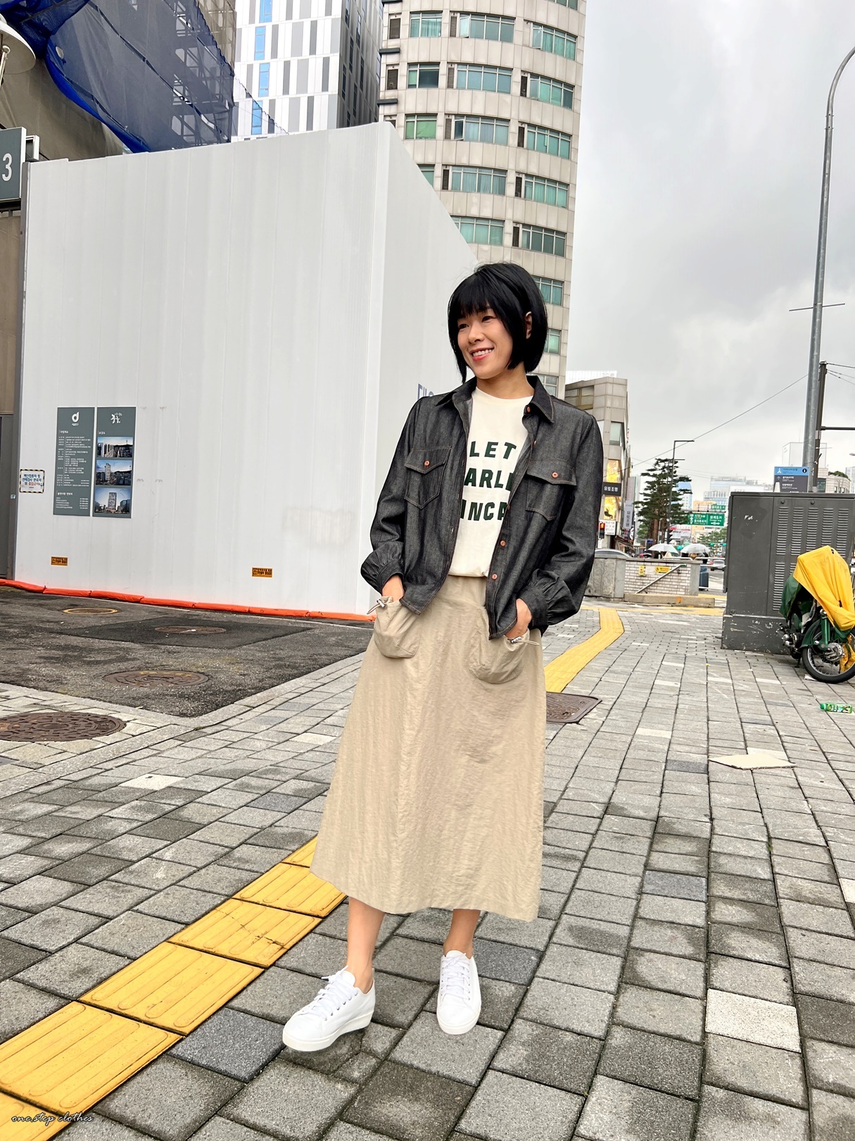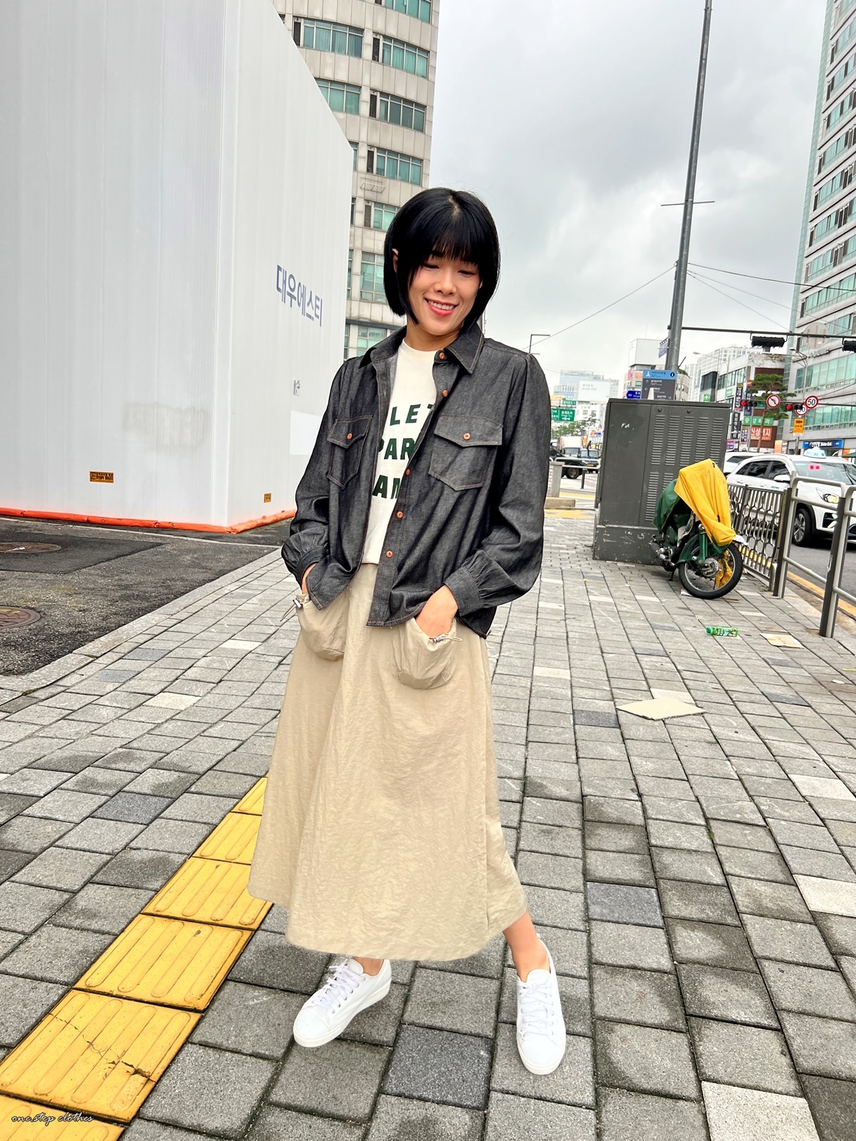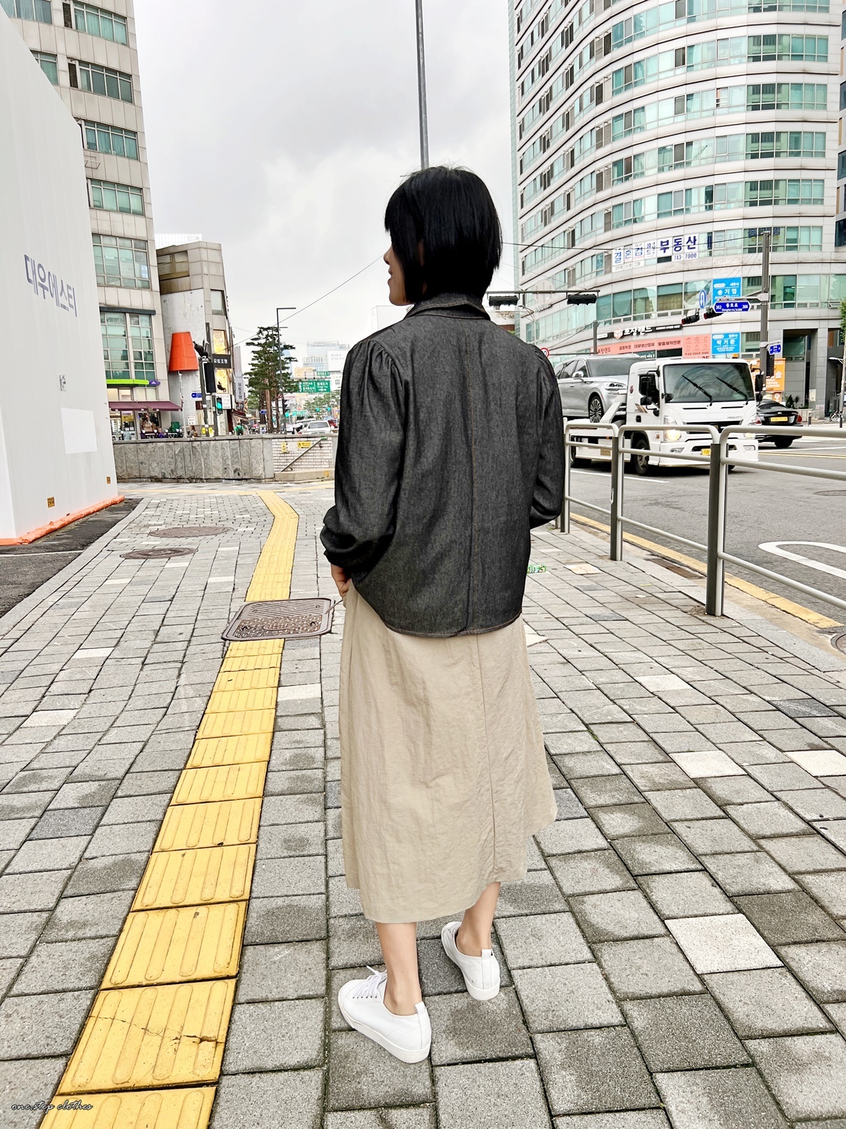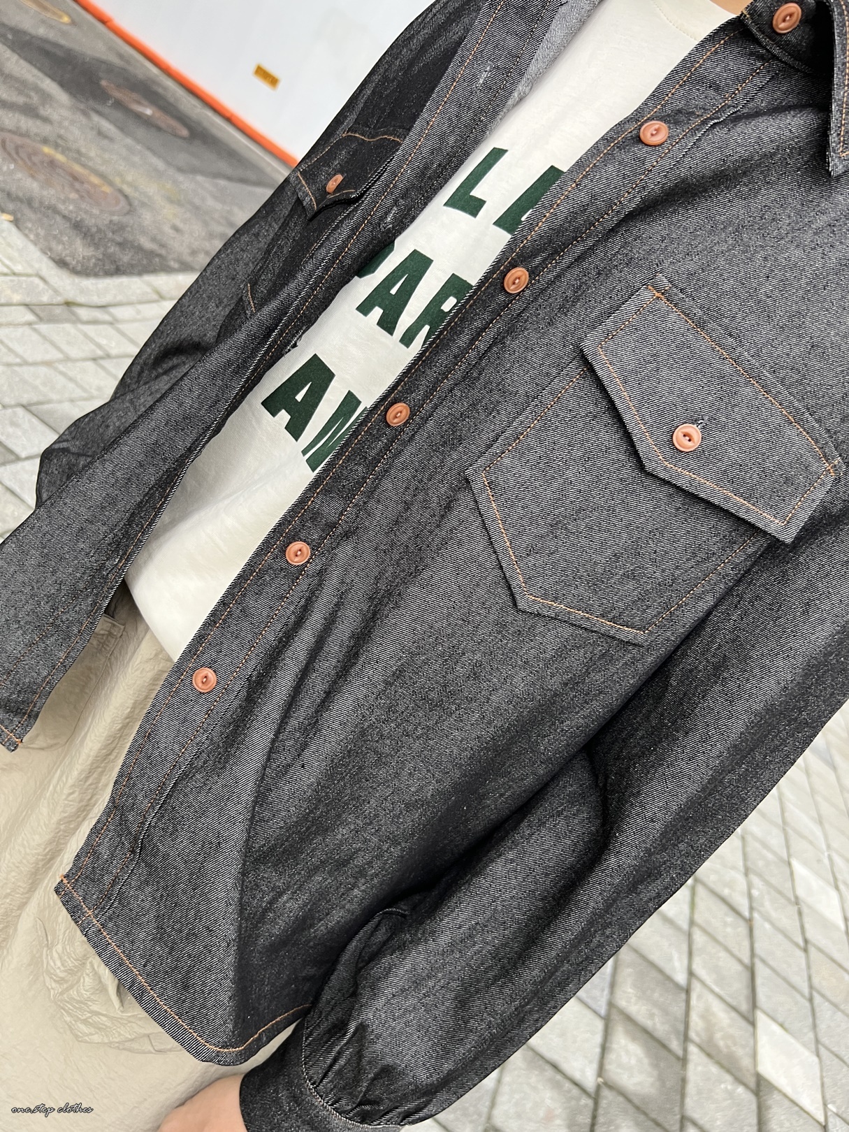 正韓超挺版車邊細節牛仔口袋襯衫 (黑)