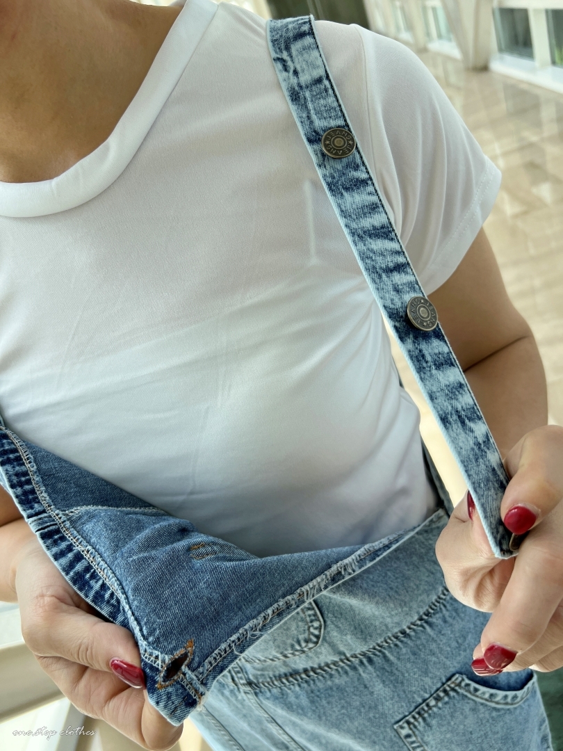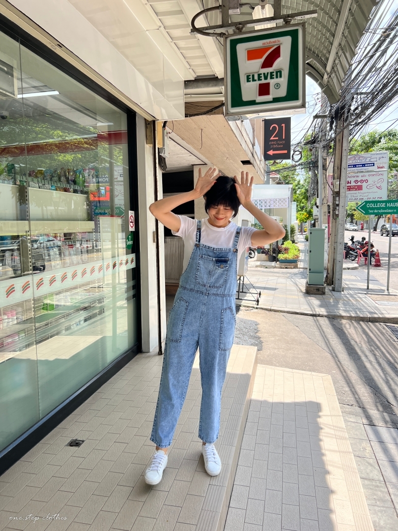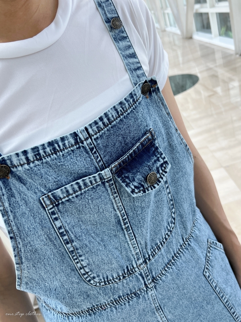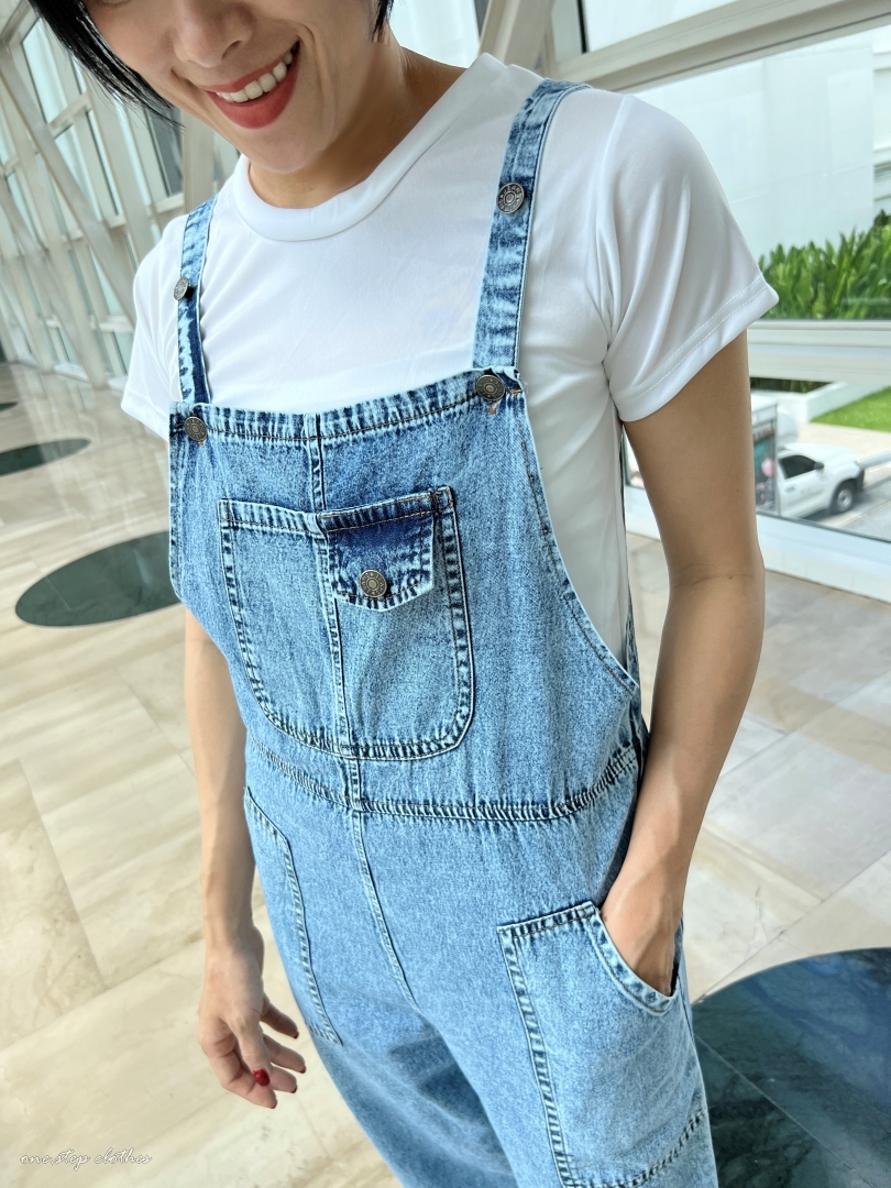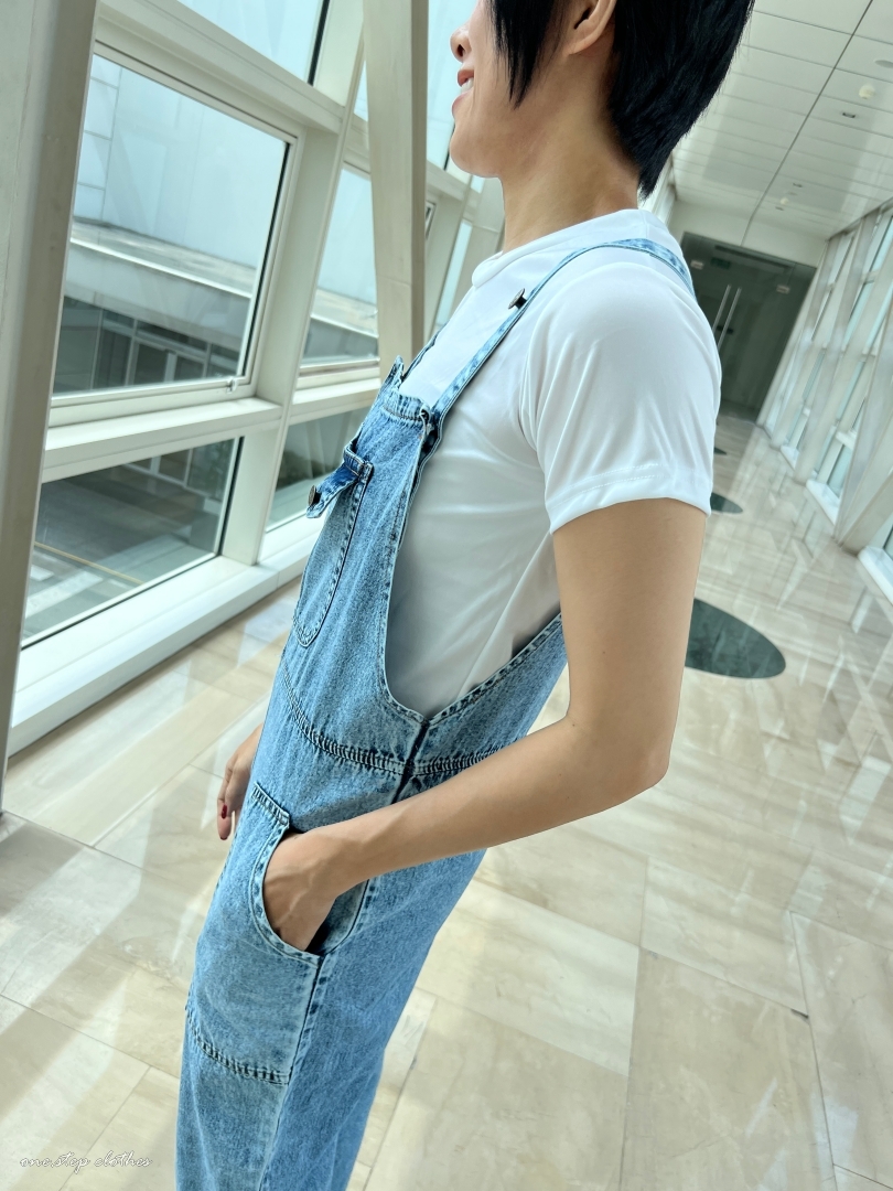 泰國超好看薄款方口袋牛仔吊帶褲組合 (淺藍)