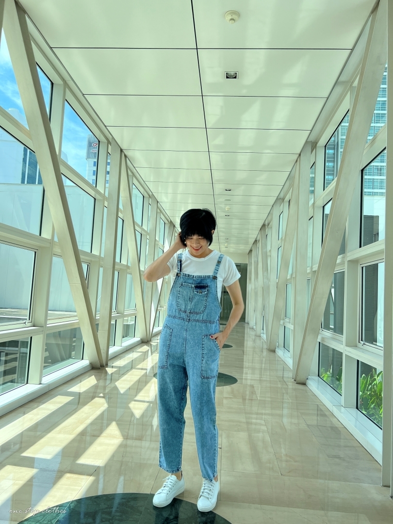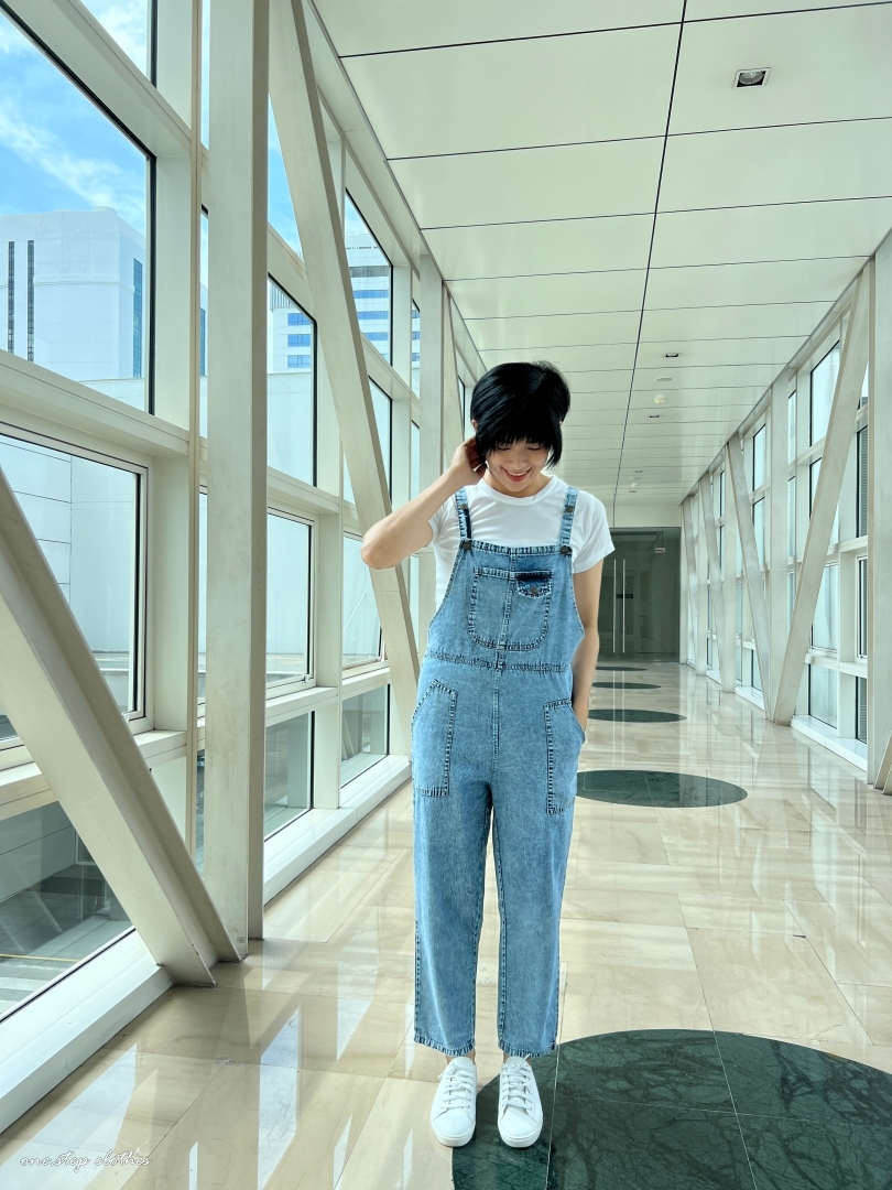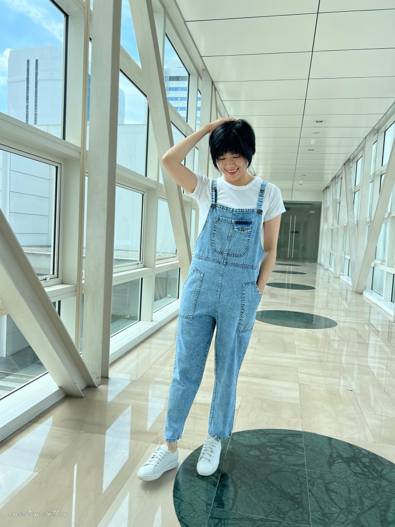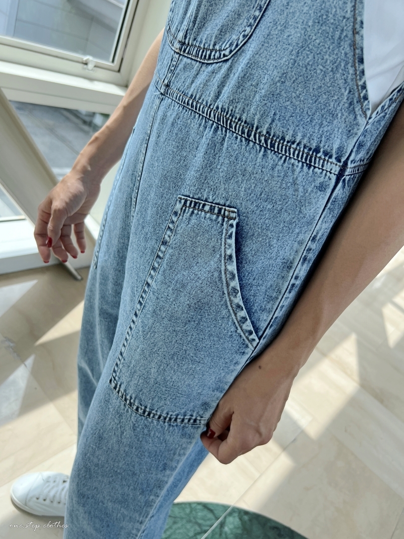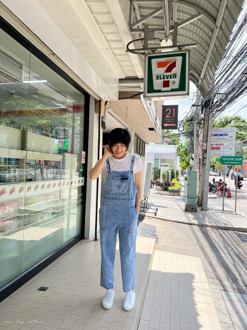 泰國超好看薄款方口袋牛仔吊帶褲組合 (淺藍)