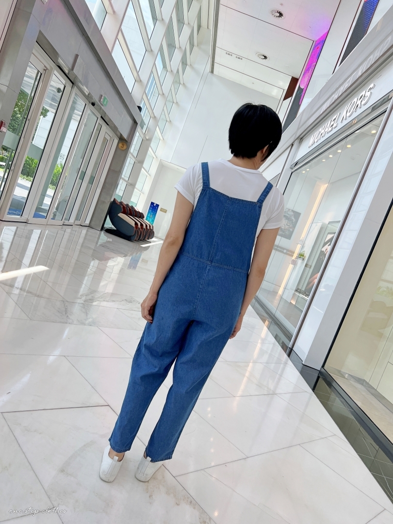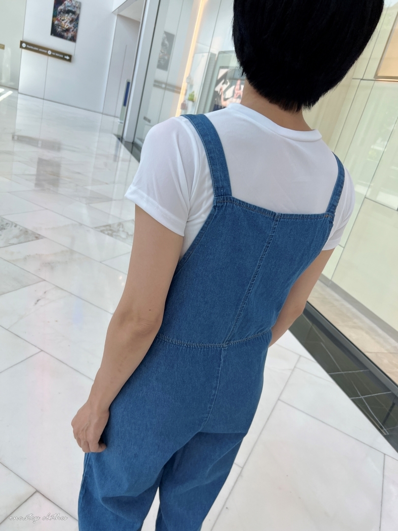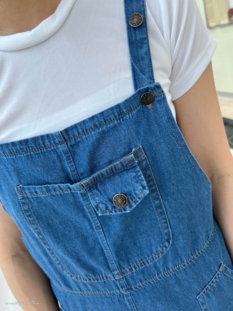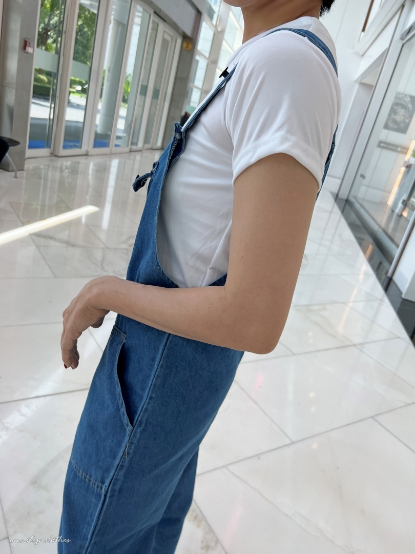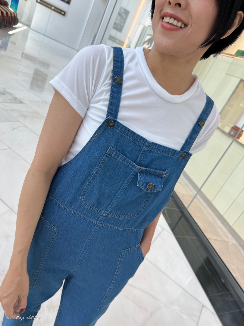 泰國超好看薄款方口袋牛仔吊帶褲組合 (深藍)