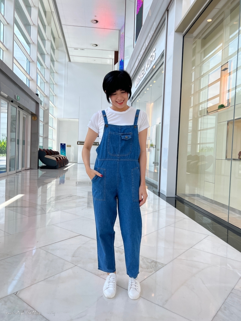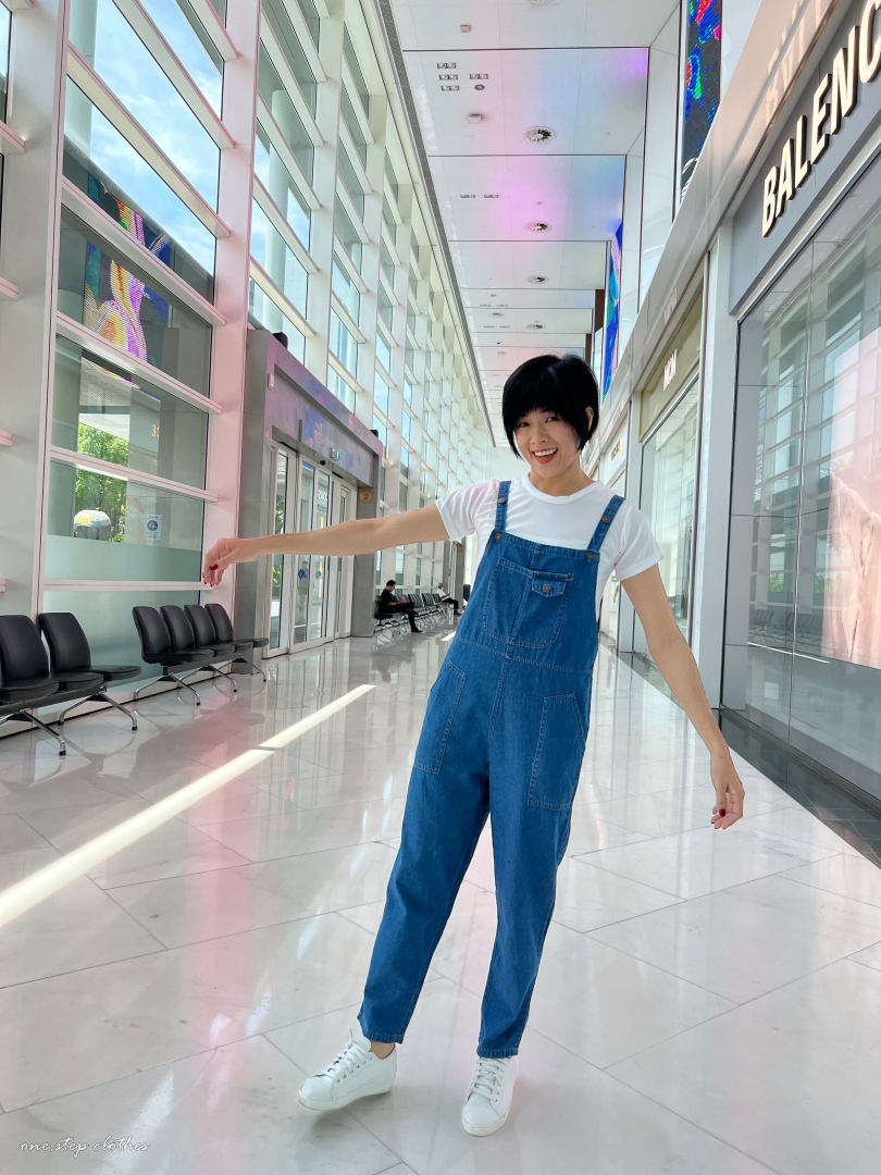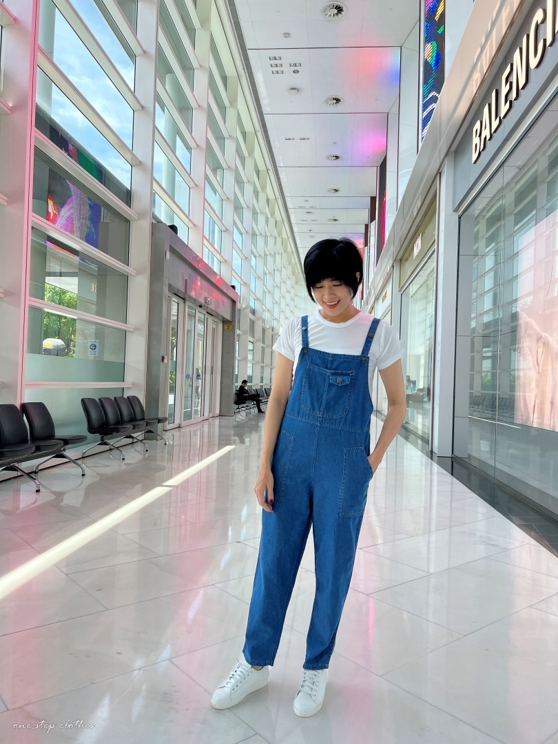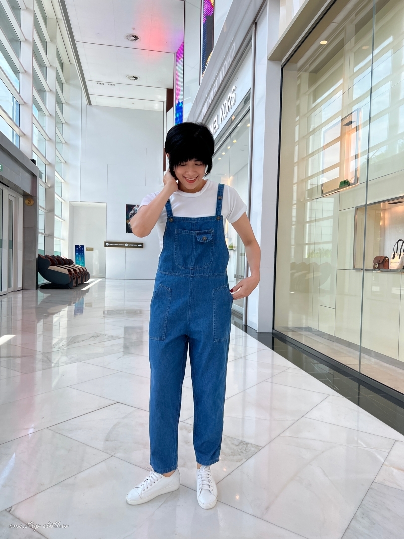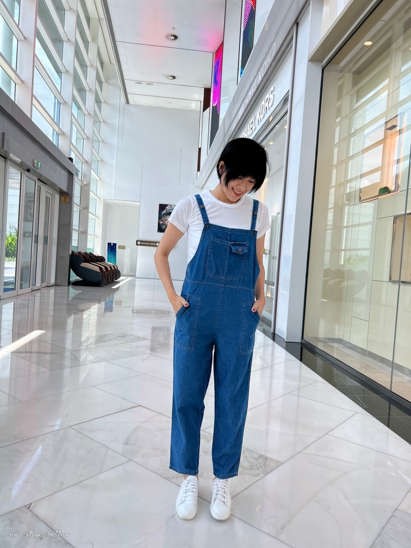 泰國超好看薄款方口袋牛仔吊帶褲組合 (深藍)