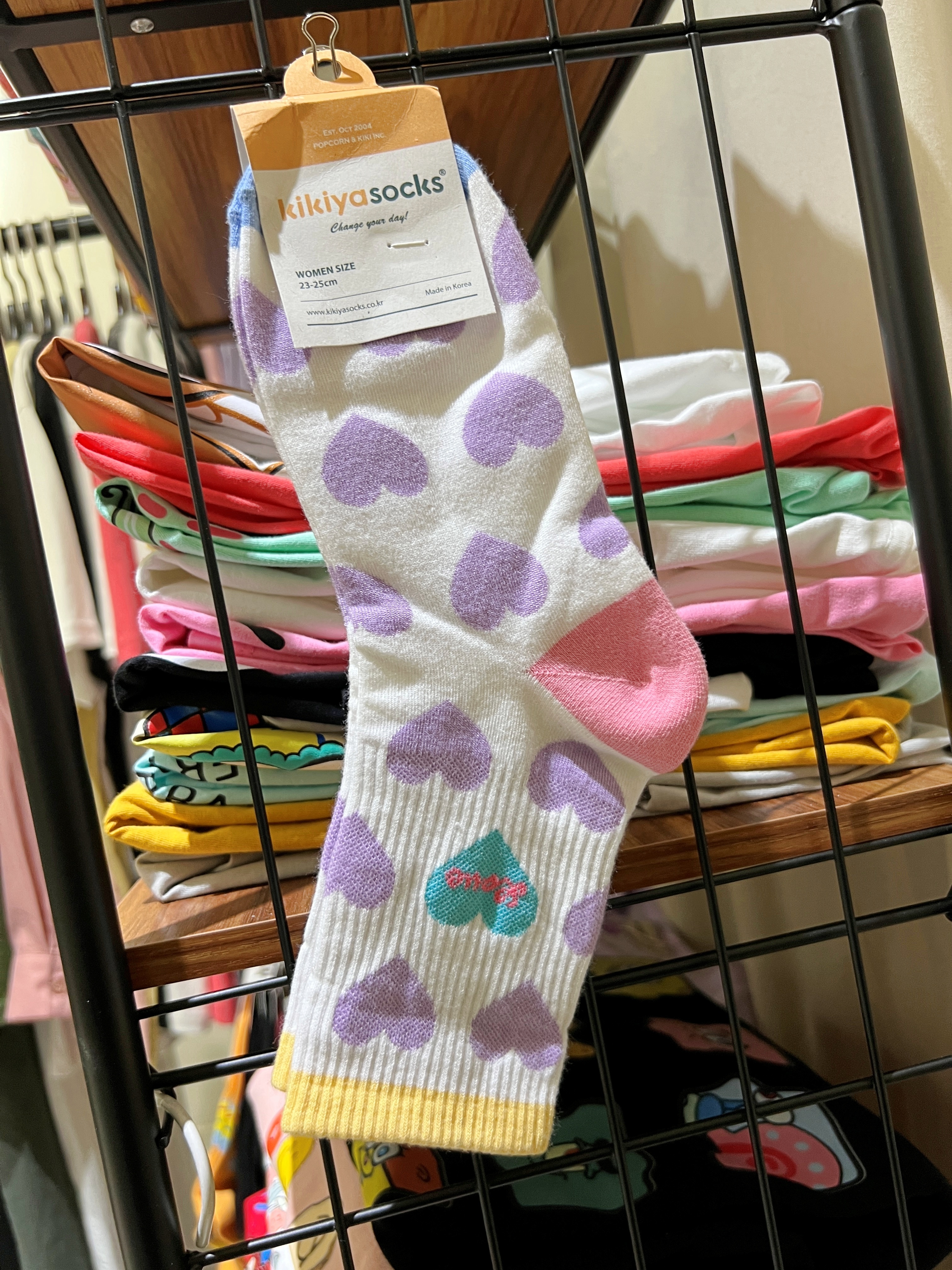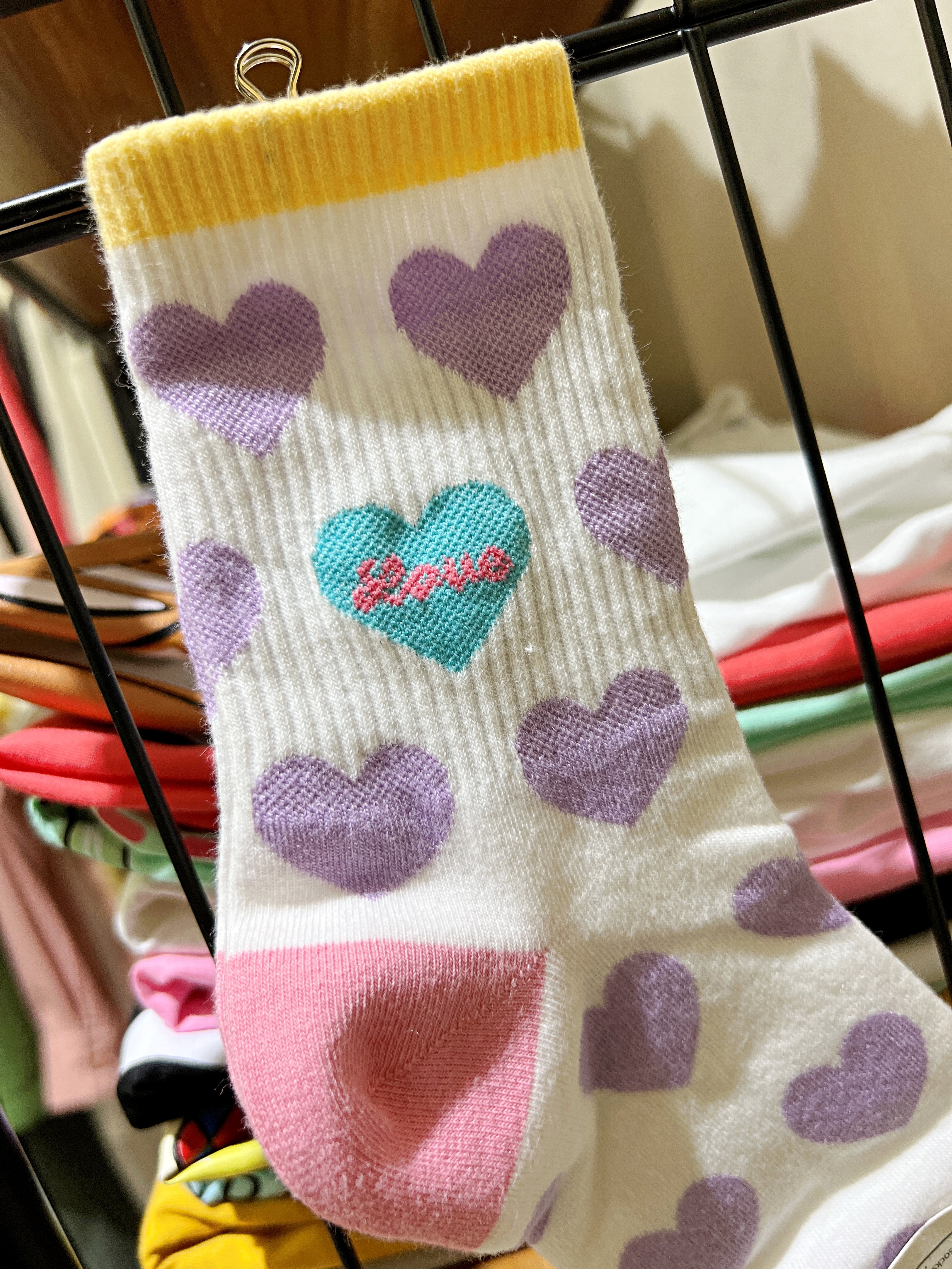 正韓PINK紫色滿版愛心襪