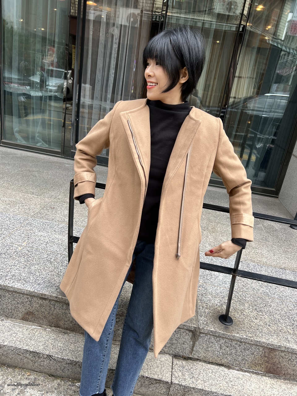 正韓帽可拆顯瘦FANCY挺版羊毛大衣 (咖)