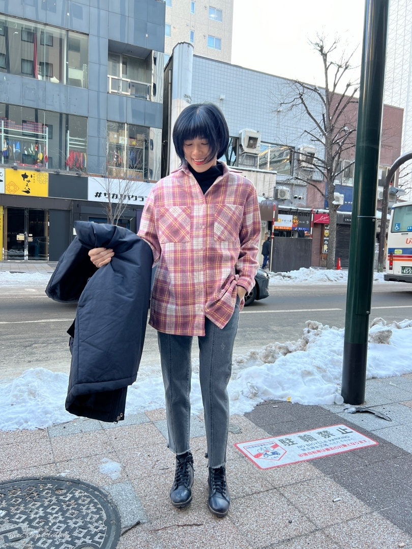 這款穿M,穿起來腰圍舒服剛好,整體腿型不會太明顯,微微上寬下窄,褲長約9分,穿起來算是中腰在肚臍附近。我穿S的話腰圍跟褲檔會有點卡卡的,穿M會比較舒服