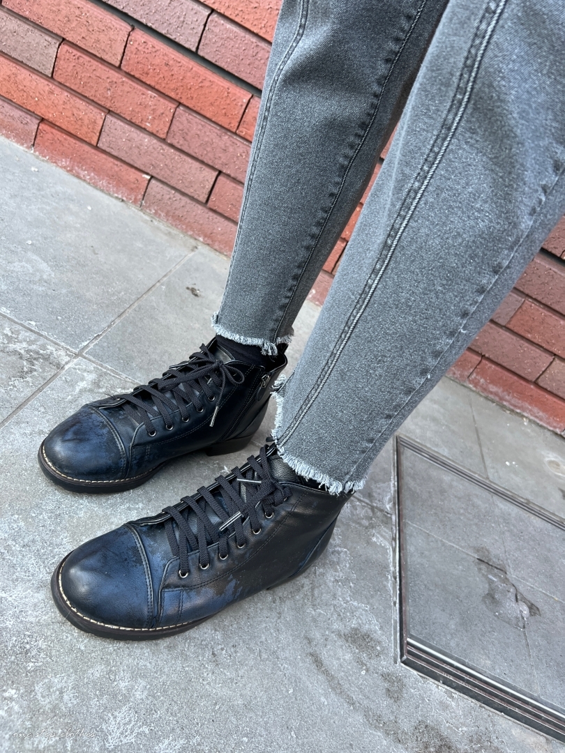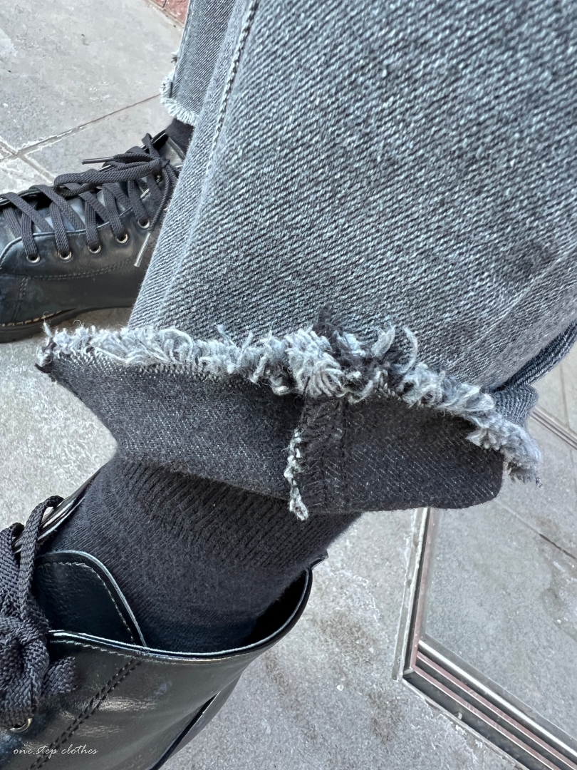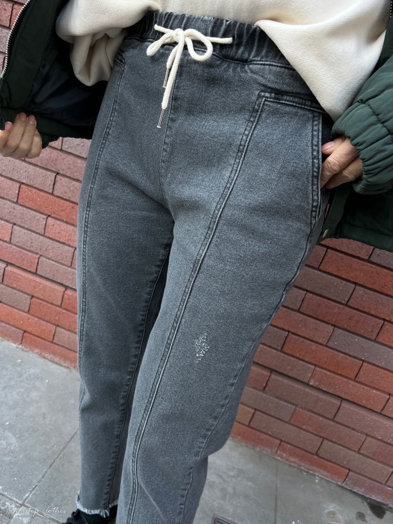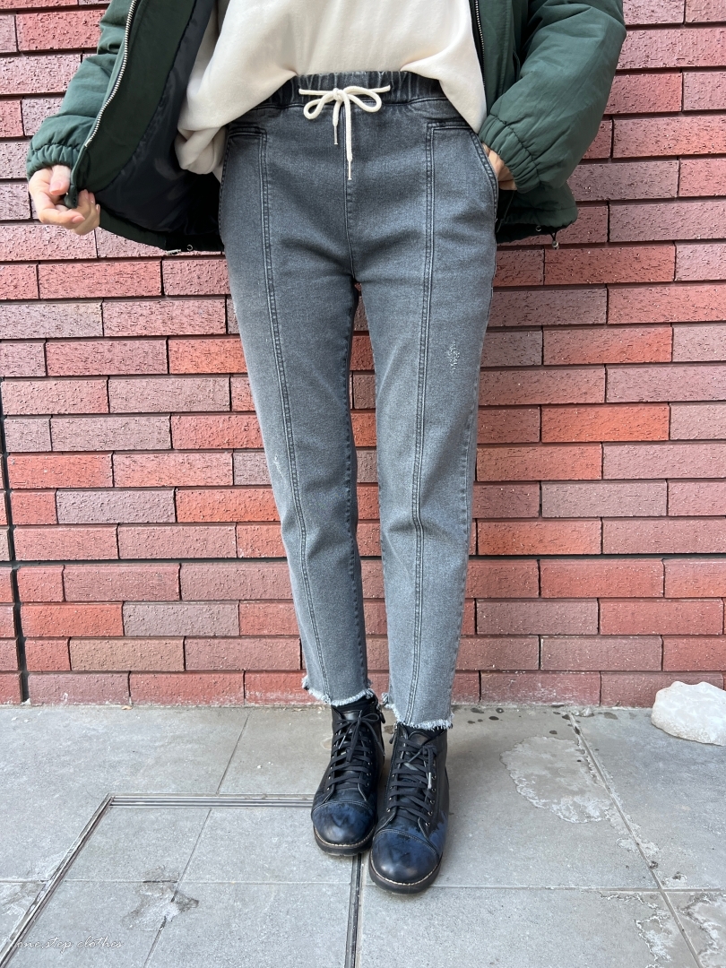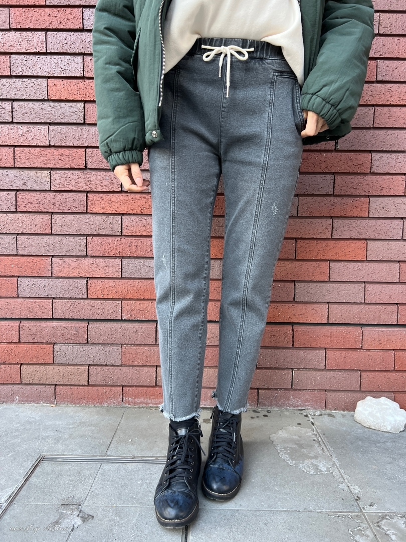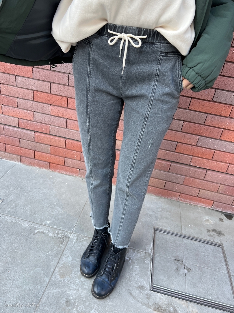 正韓CUBE黑灰立體車線綁帶磨毛小直筒