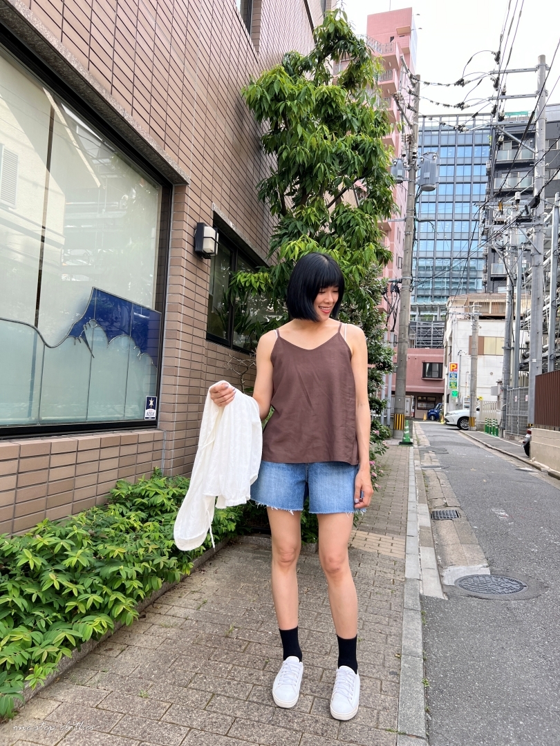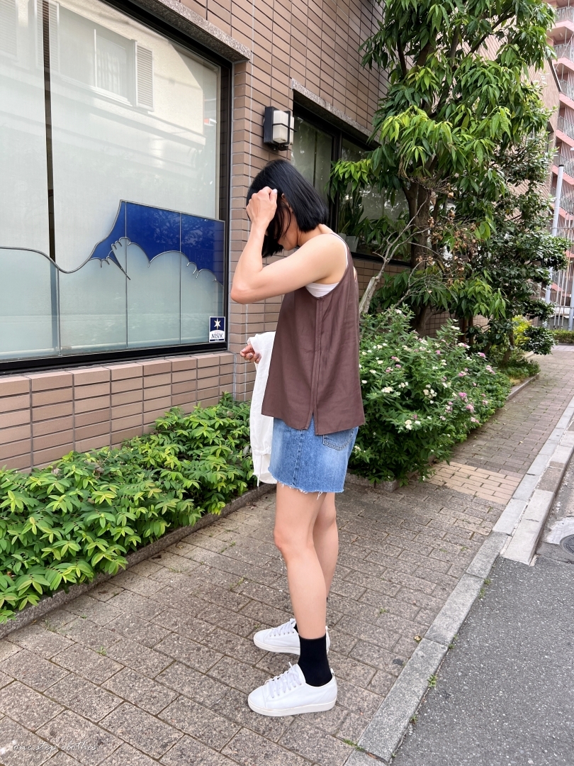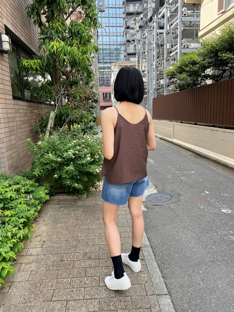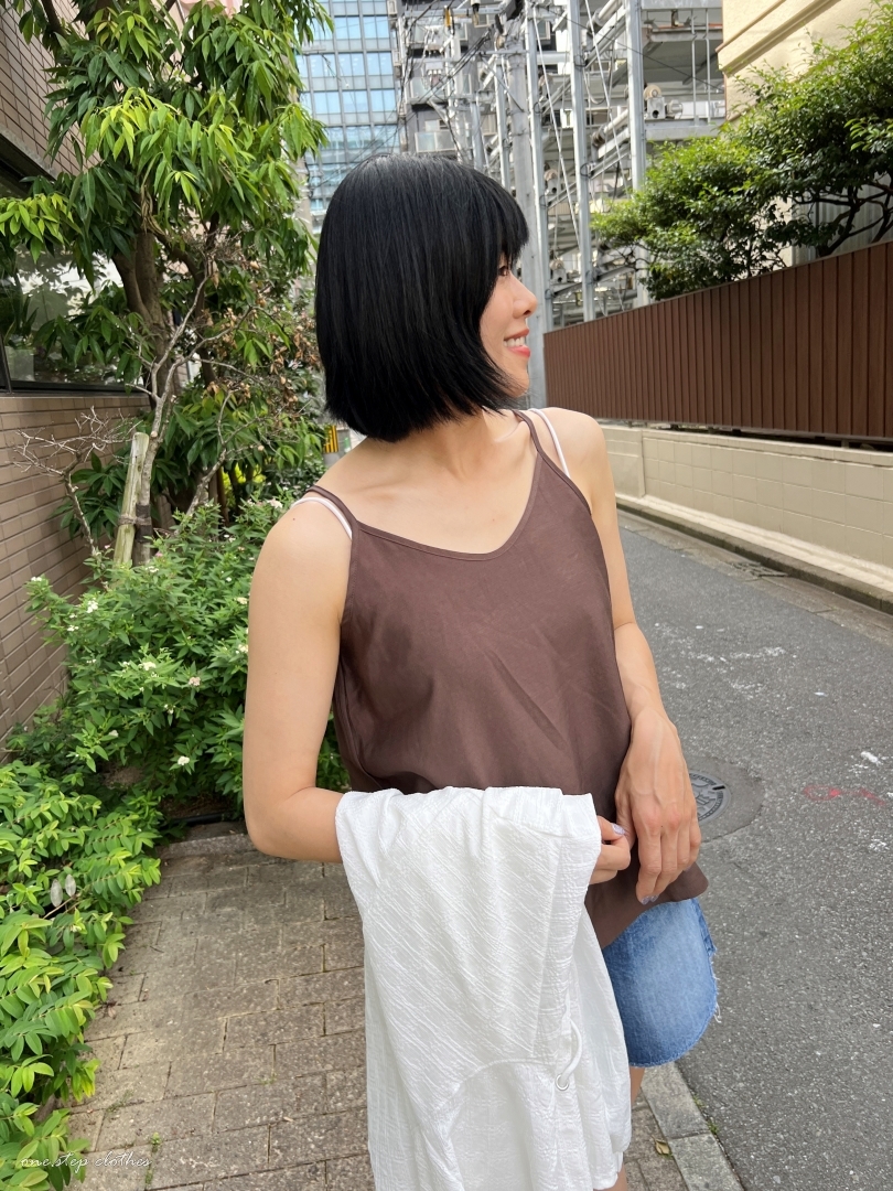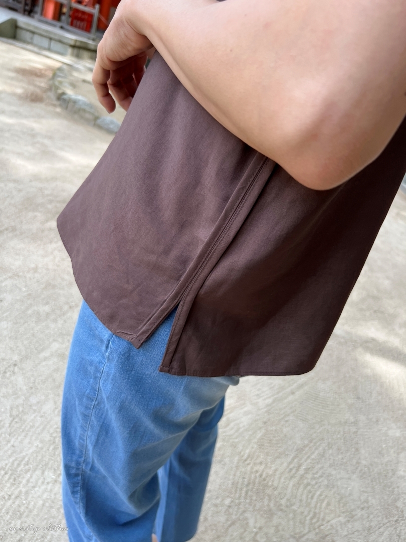 正韓溫柔V領細肩棉麻背心 (可可)