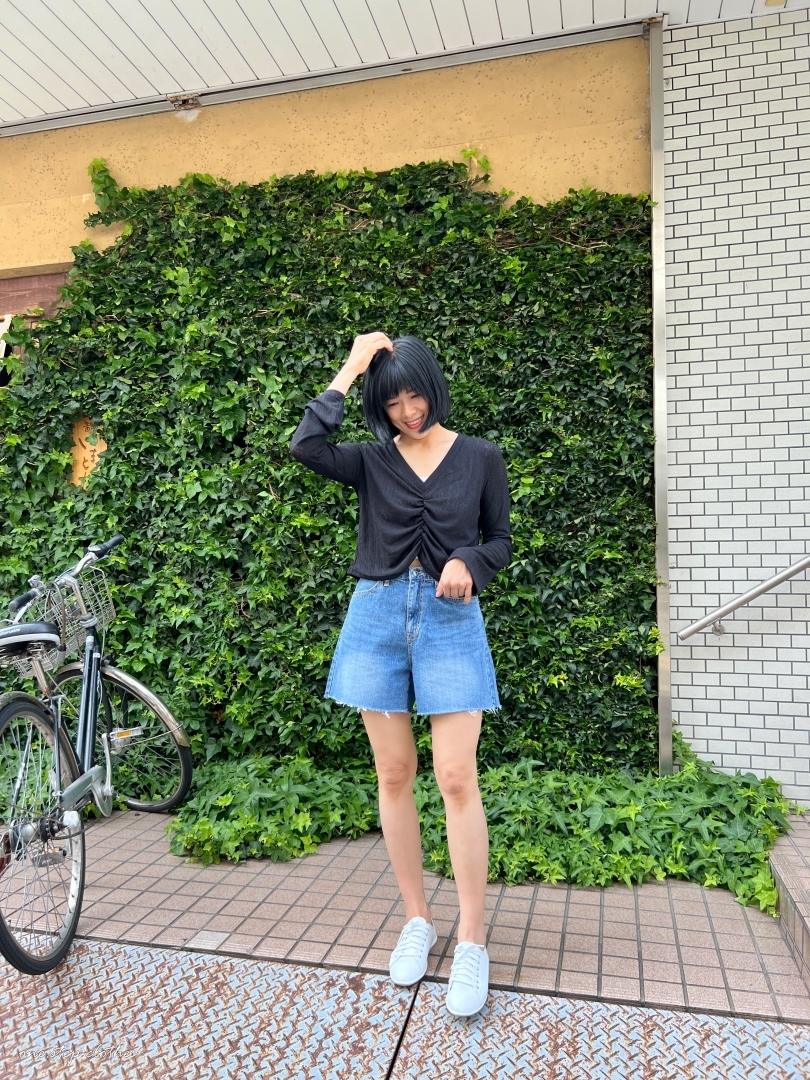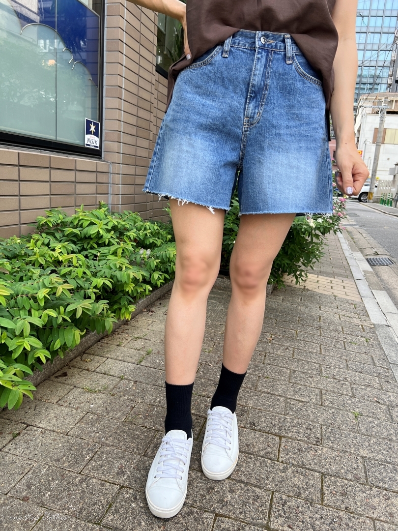 這款穿M,穿起來腰圍舒服有空間但不會啷,褲長約5分,膝蓋以上,褲頭約中腰肚臍附近