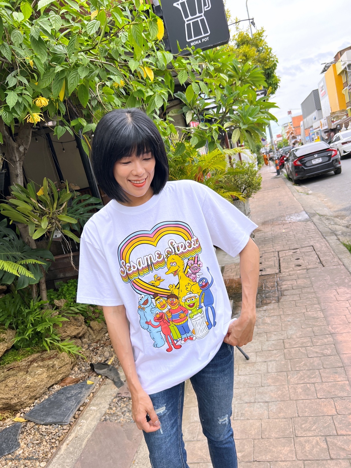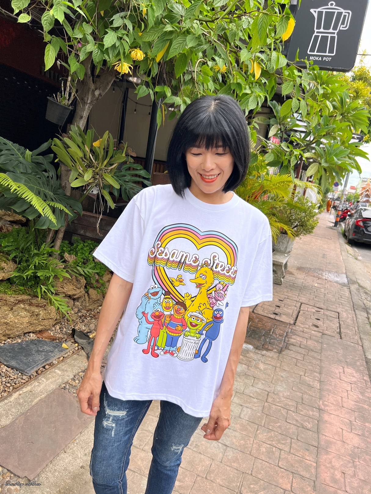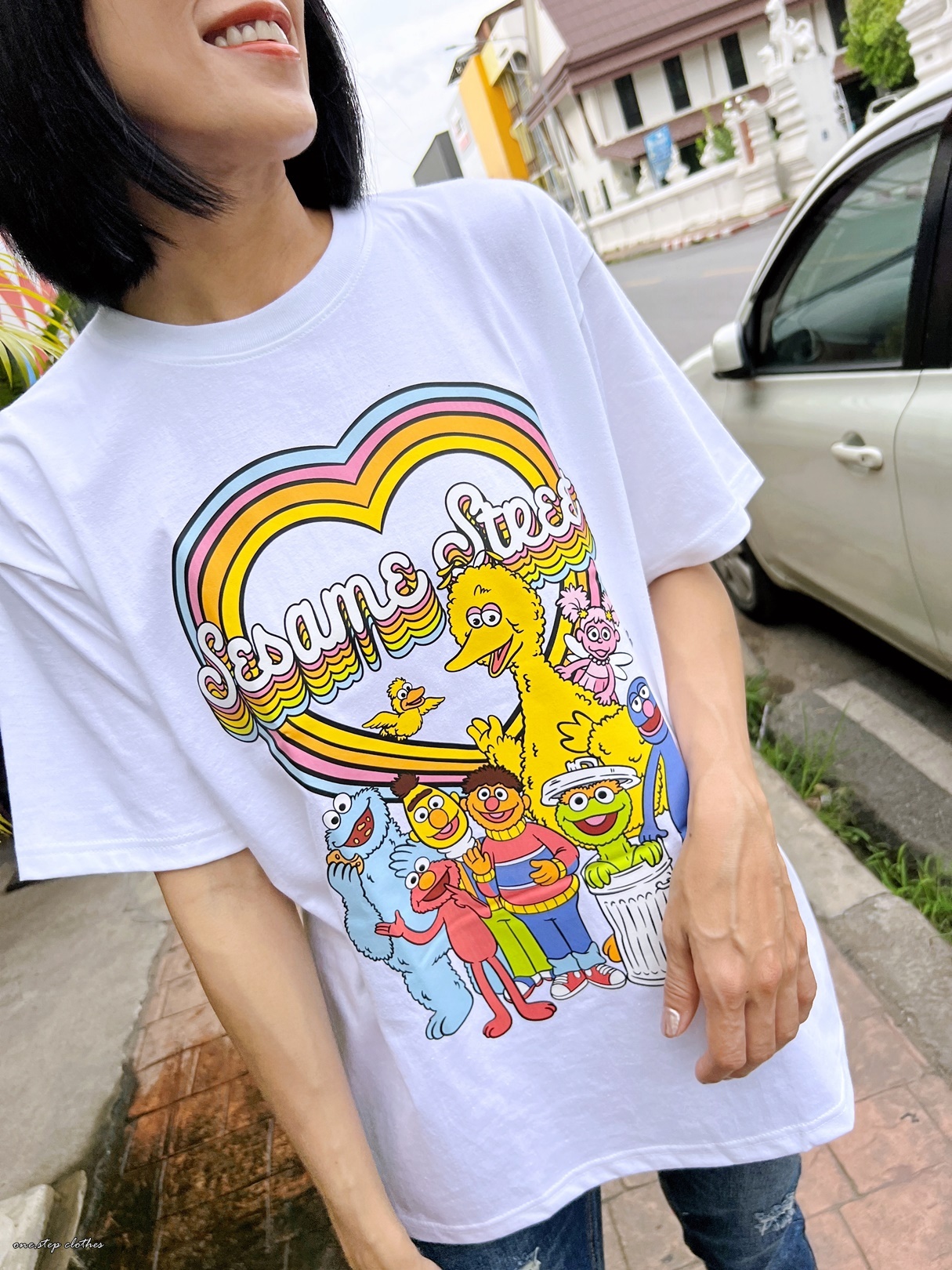 泰國繽紛顯白芝麻街彩虹T (白)