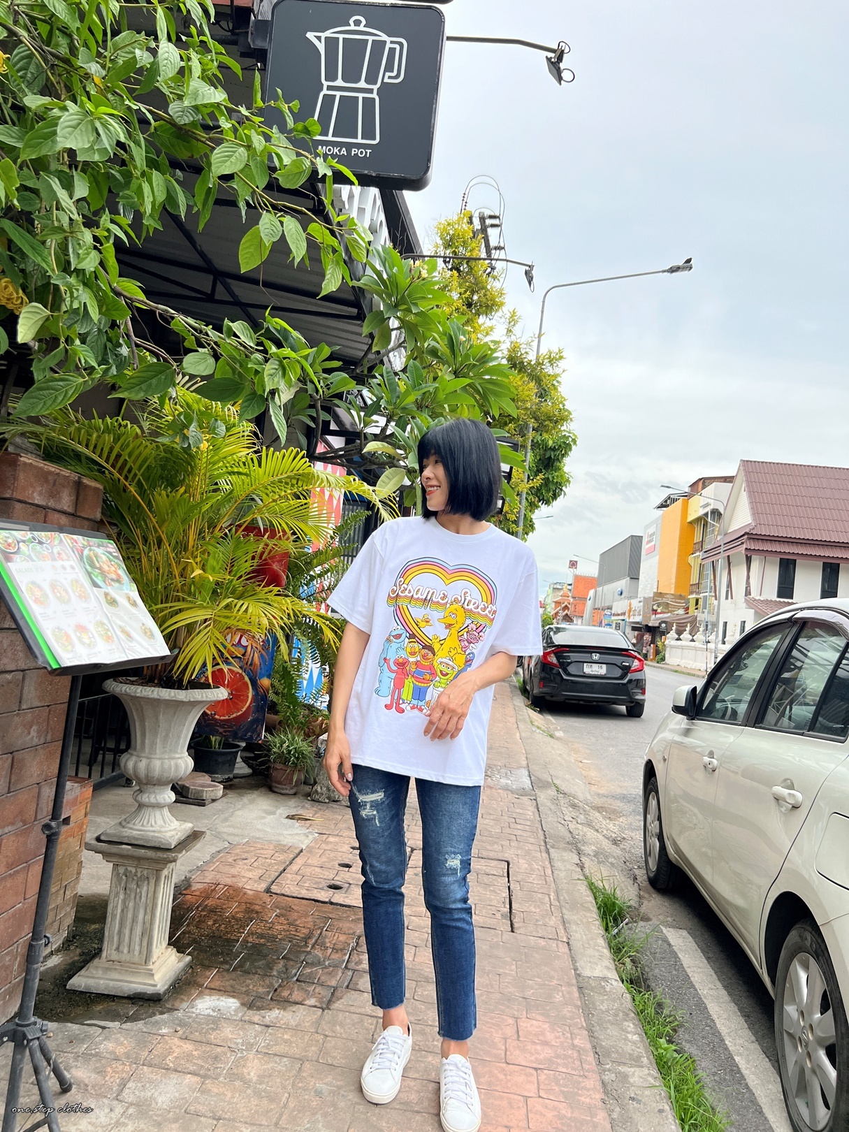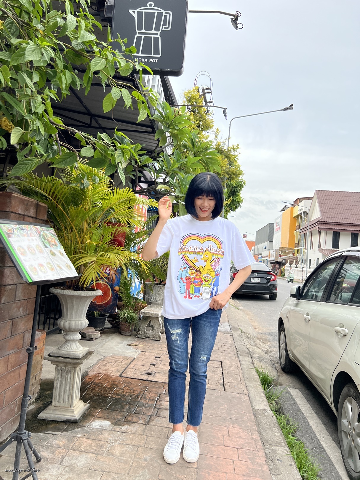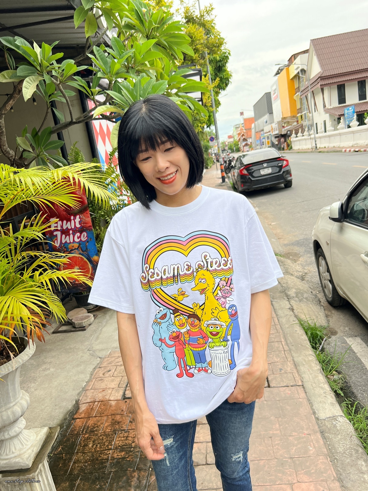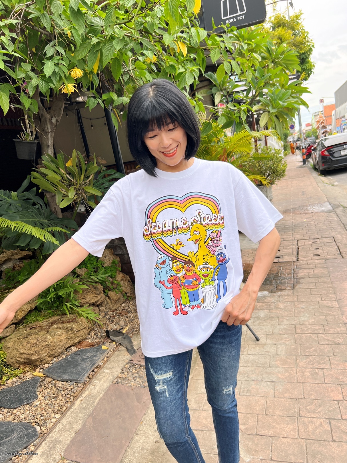 泰國繽紛顯白芝麻街彩虹T (白)