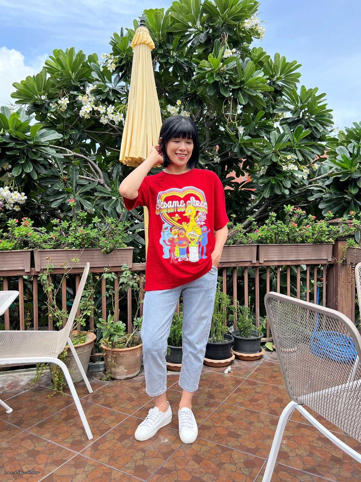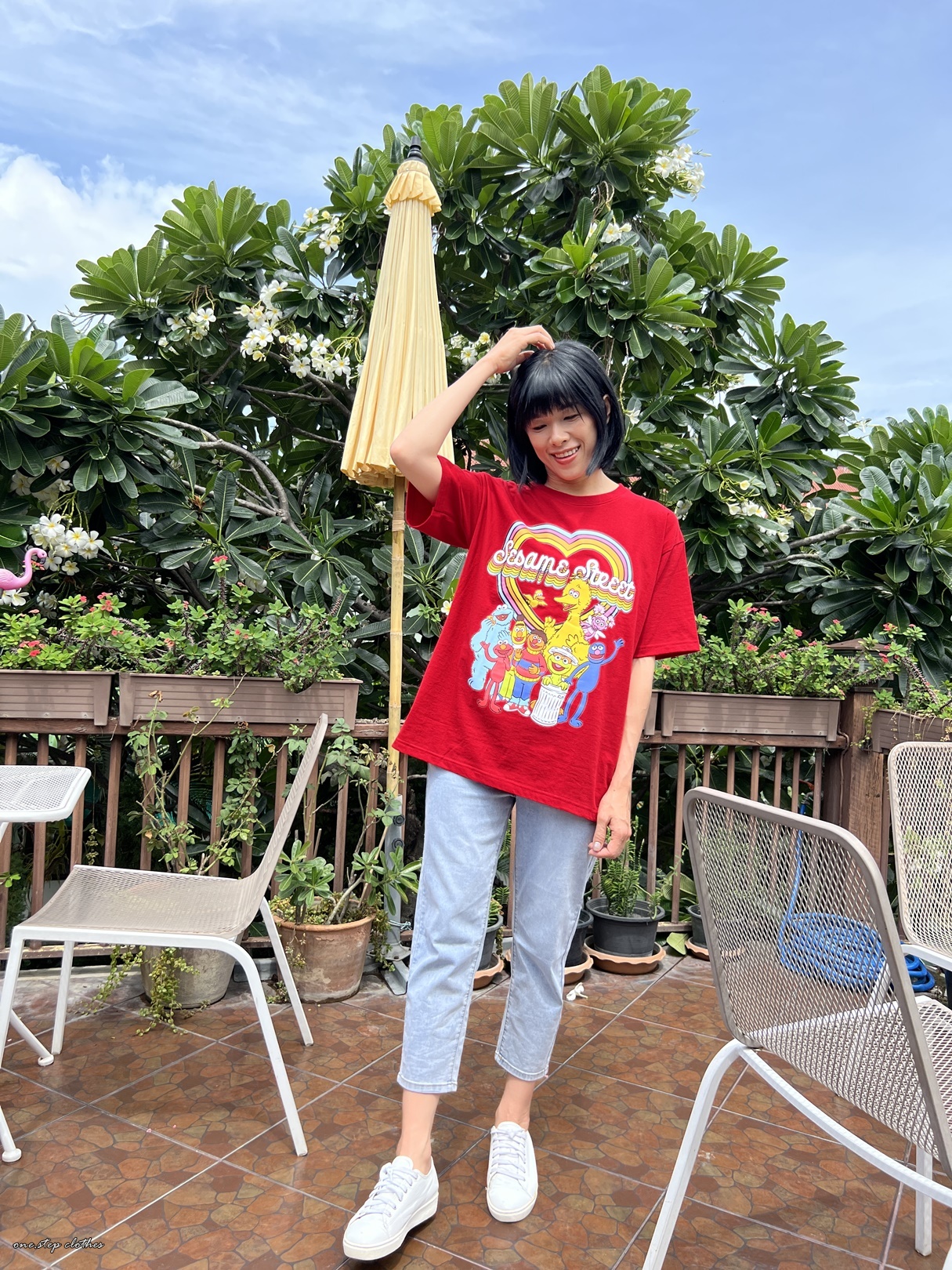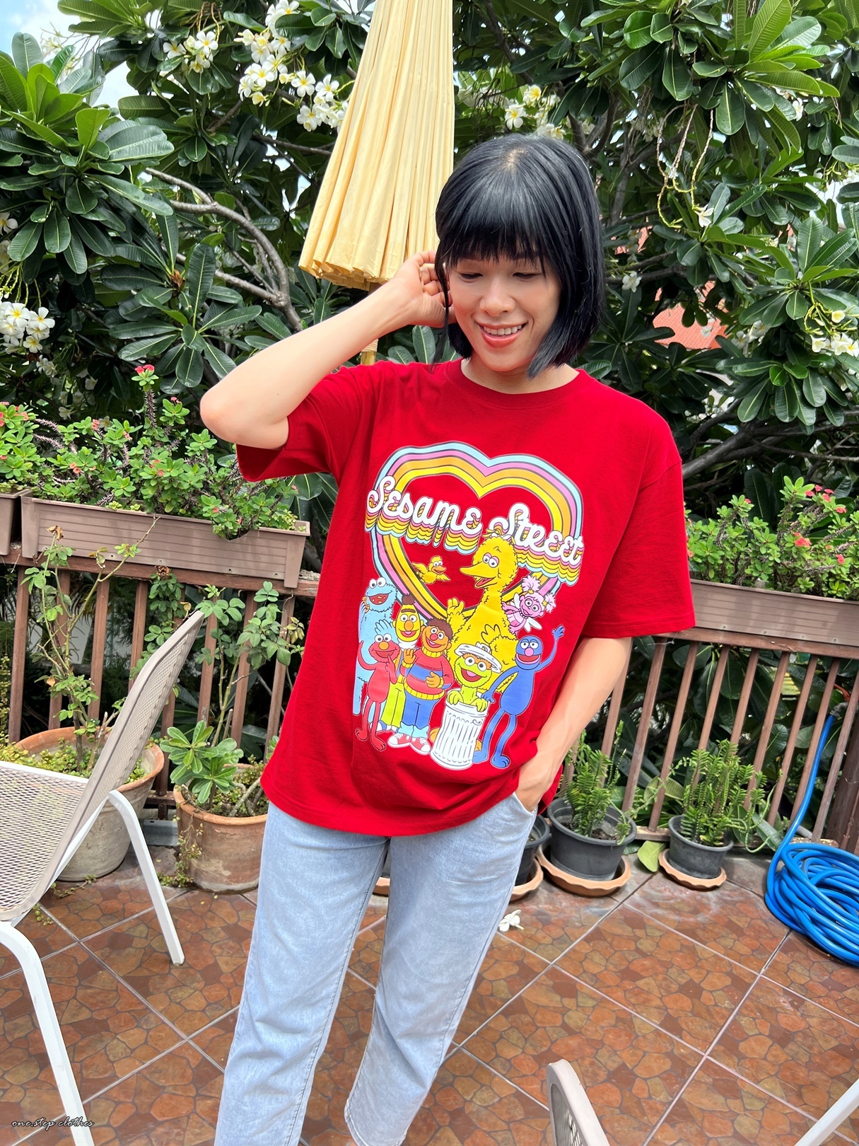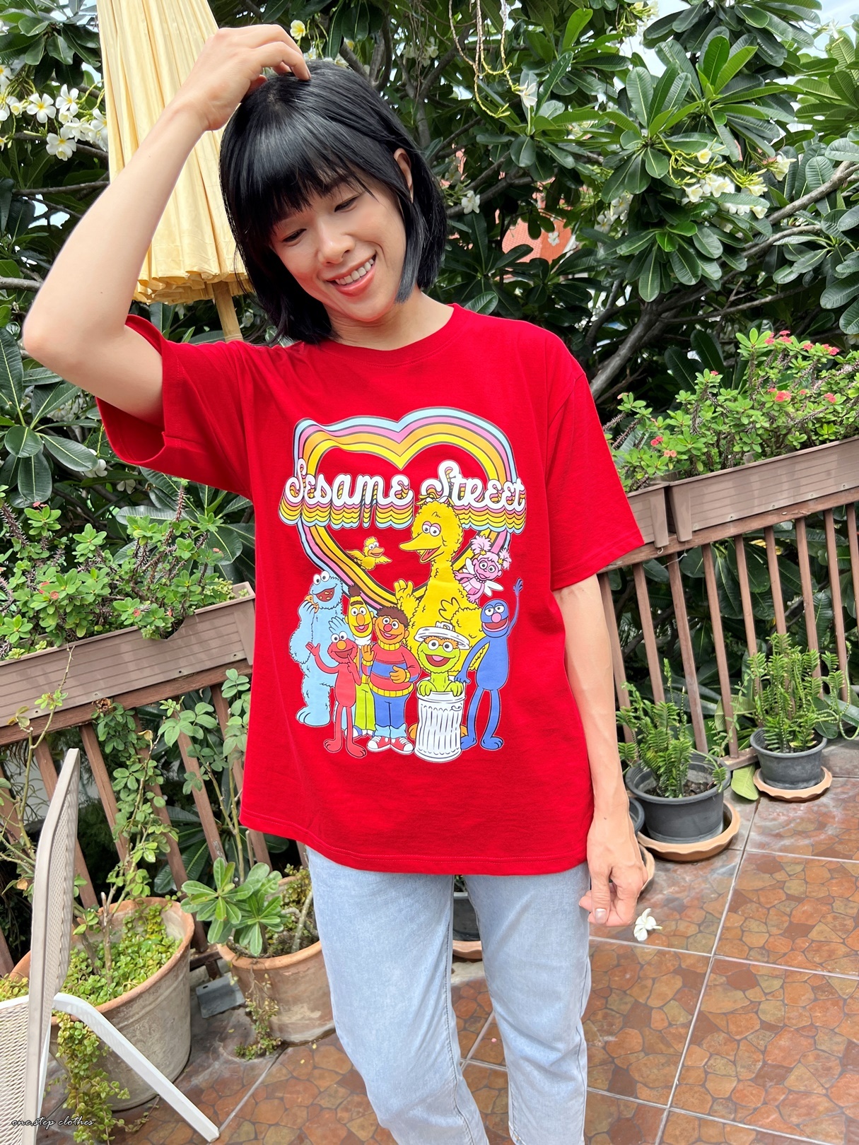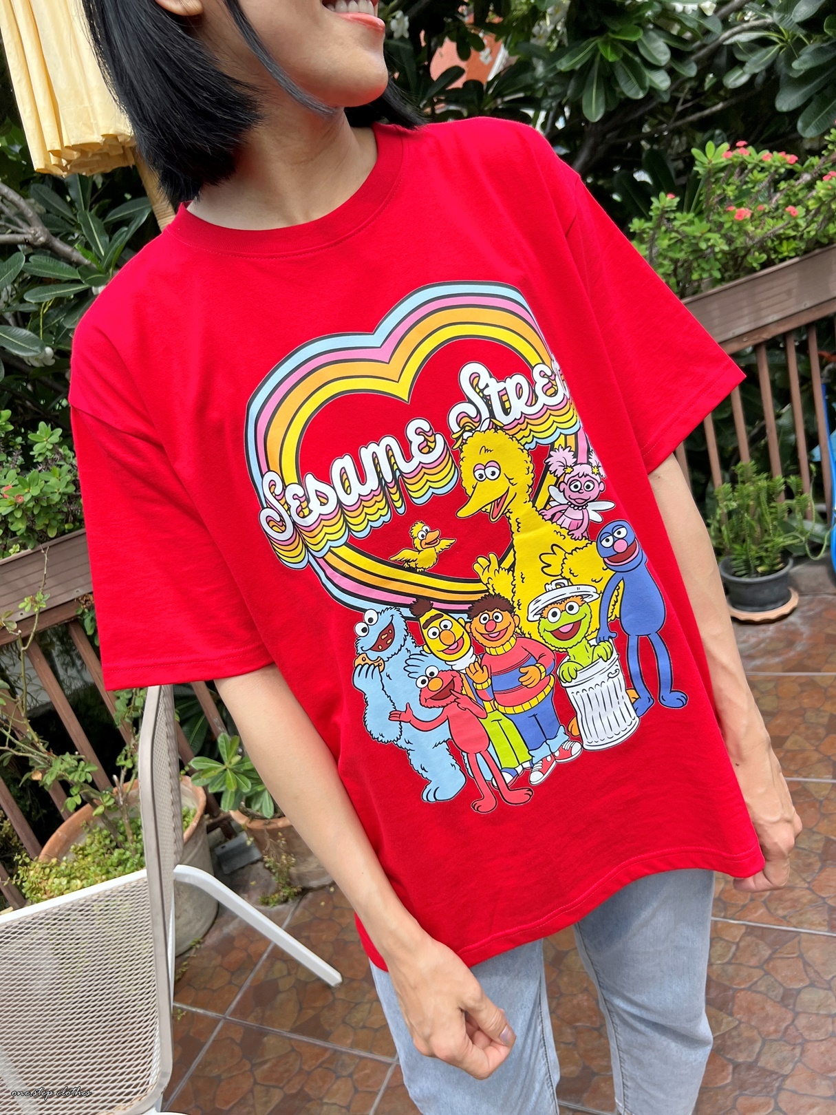 泰國繽紛顯白芝麻街彩虹T (紅)