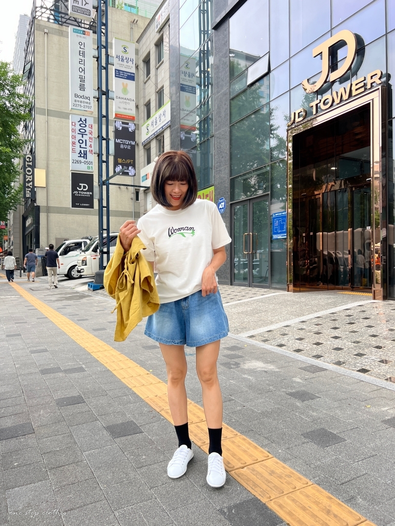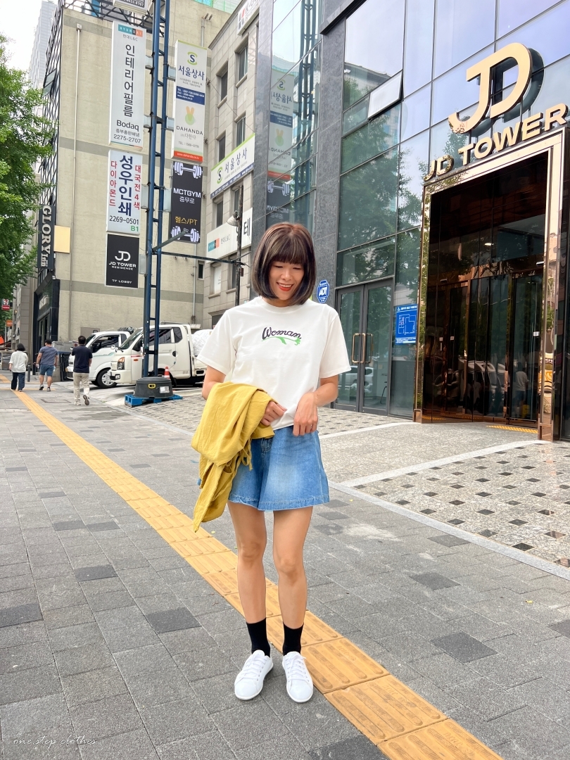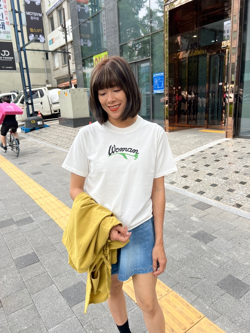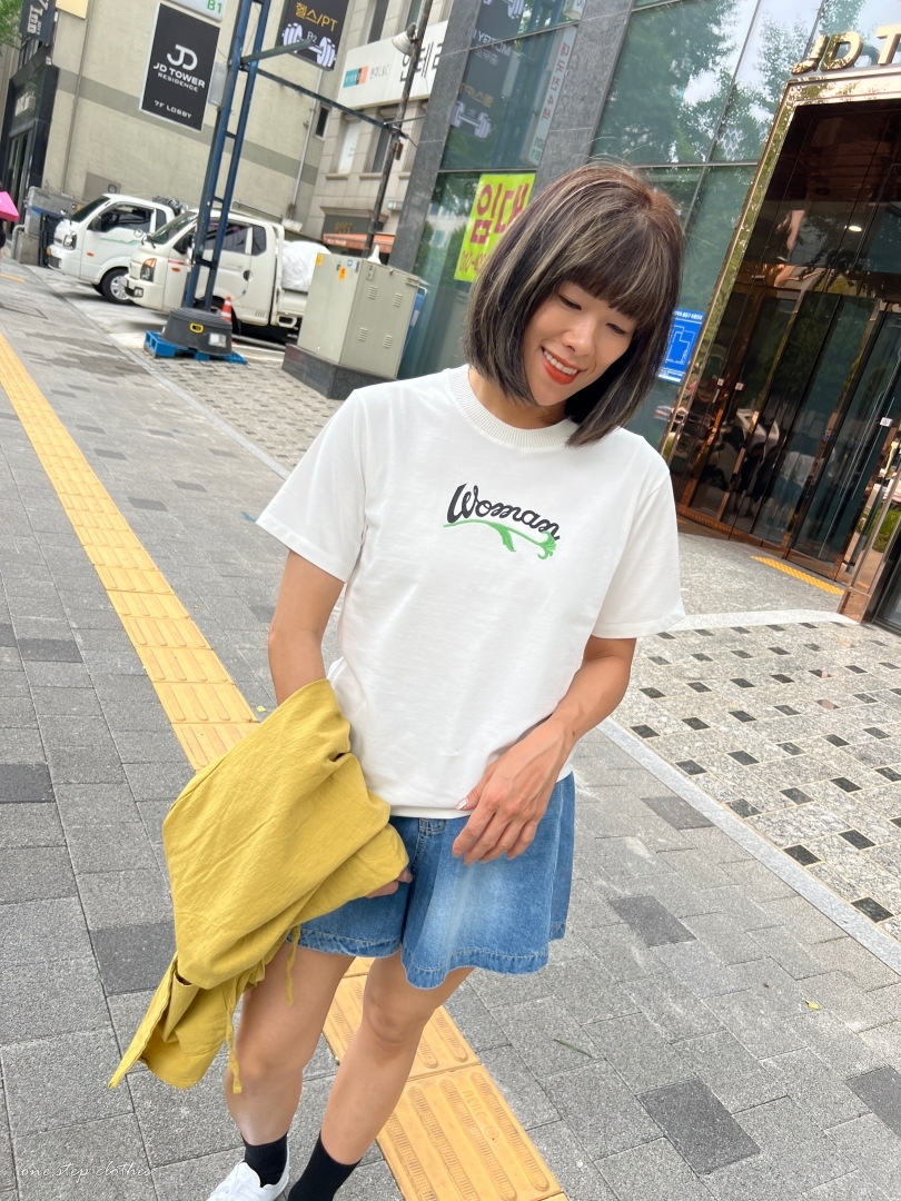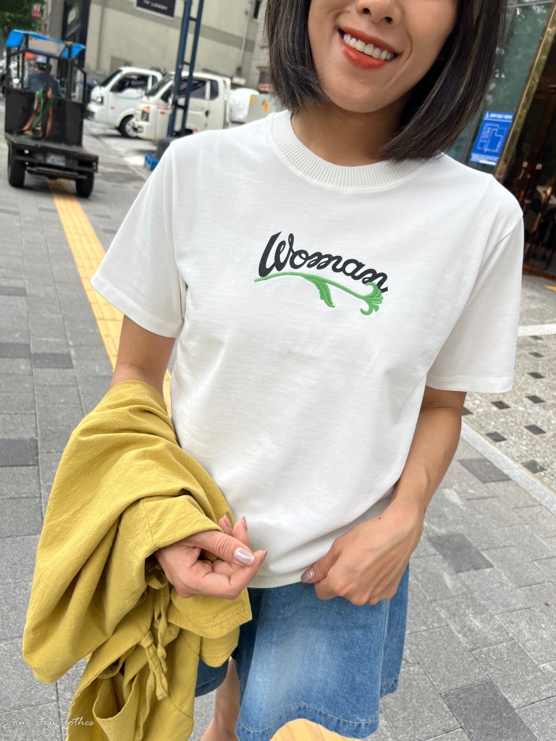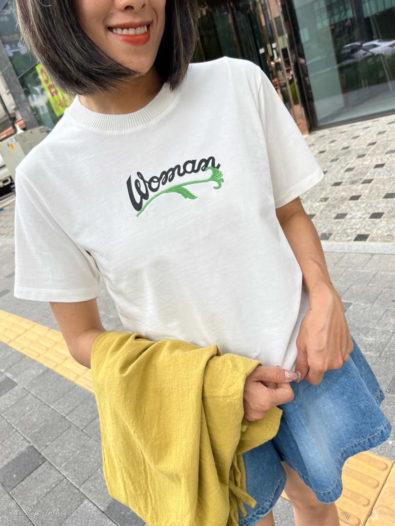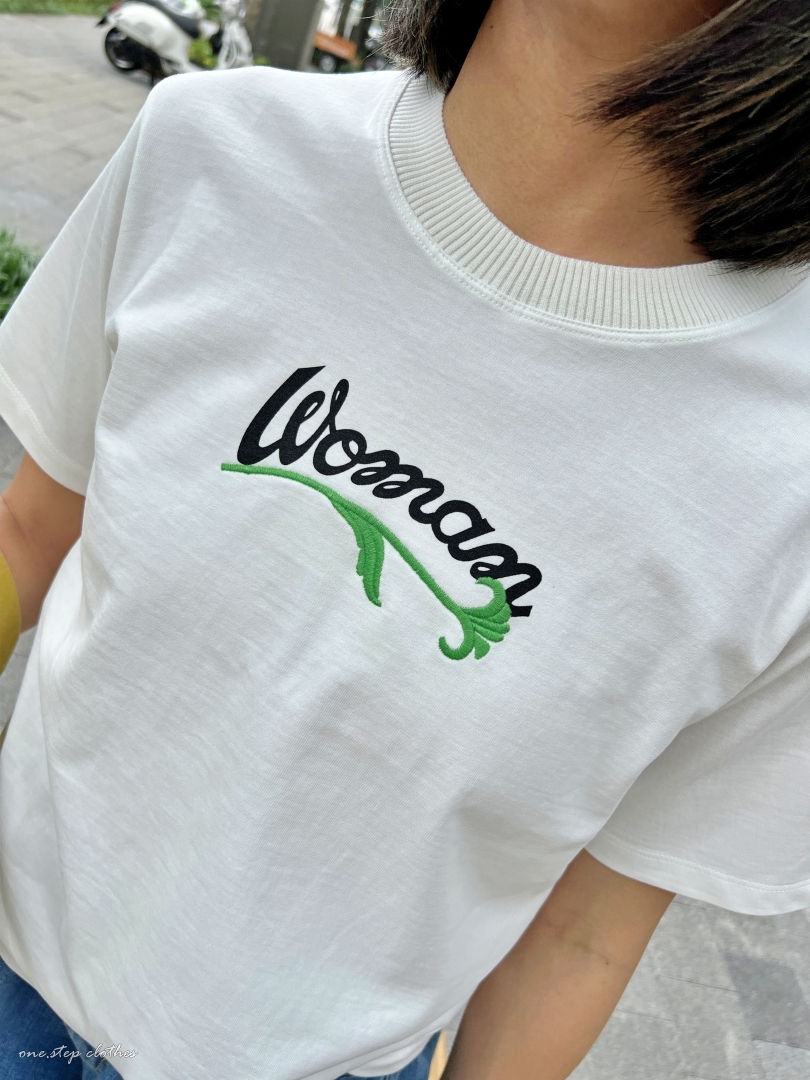 正韓圓領woman花草刺繡T