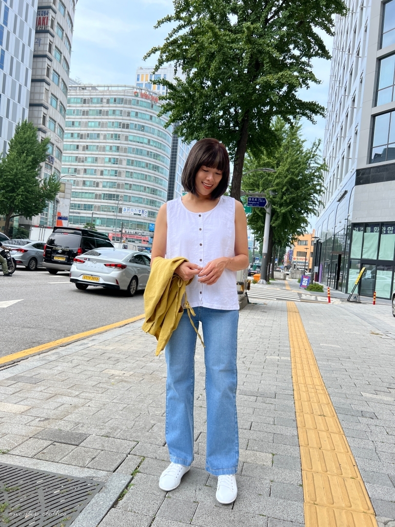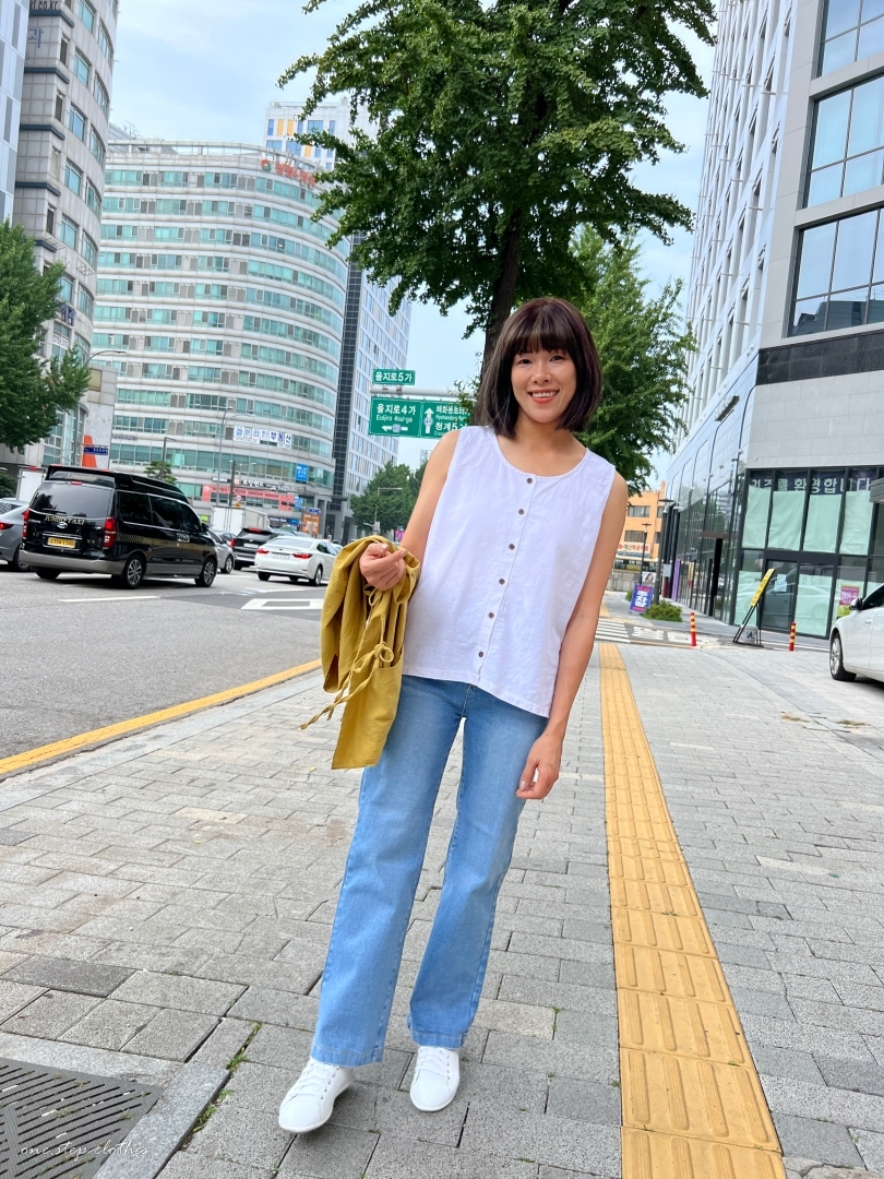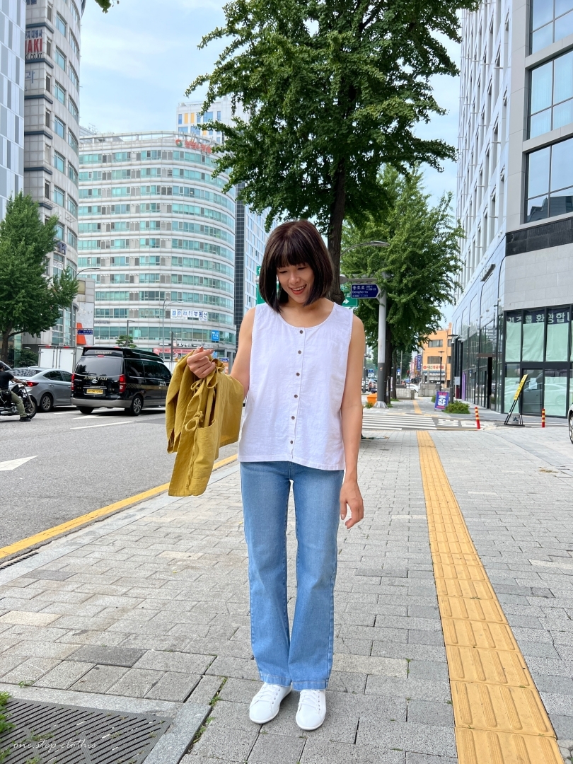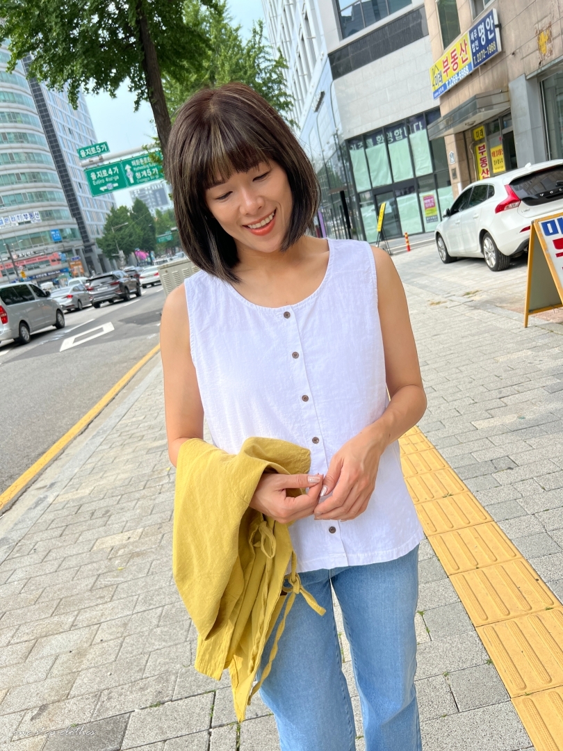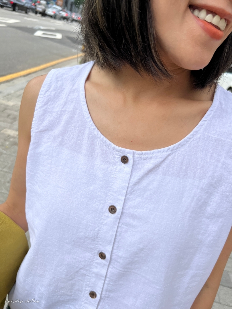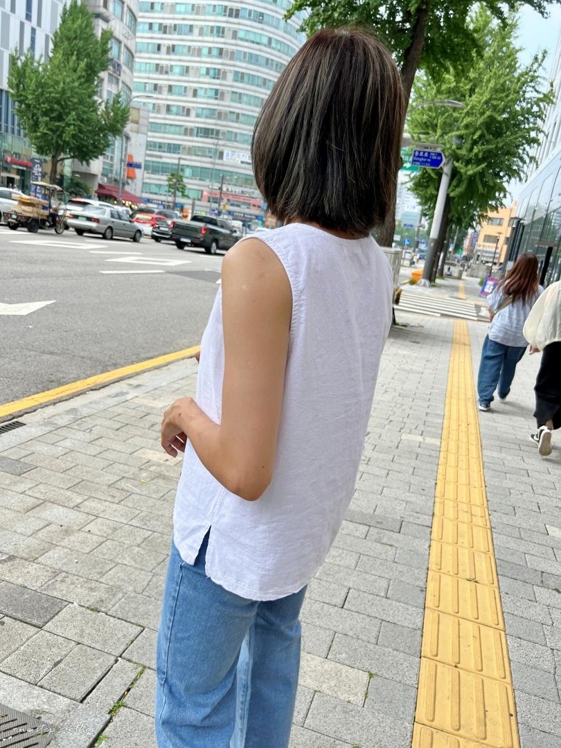 正韓兩穿設計鄉村風棉麻背心 (白)