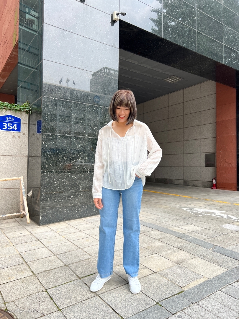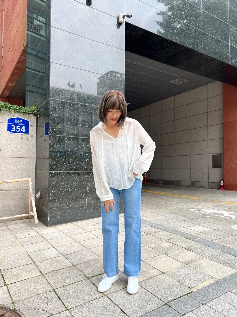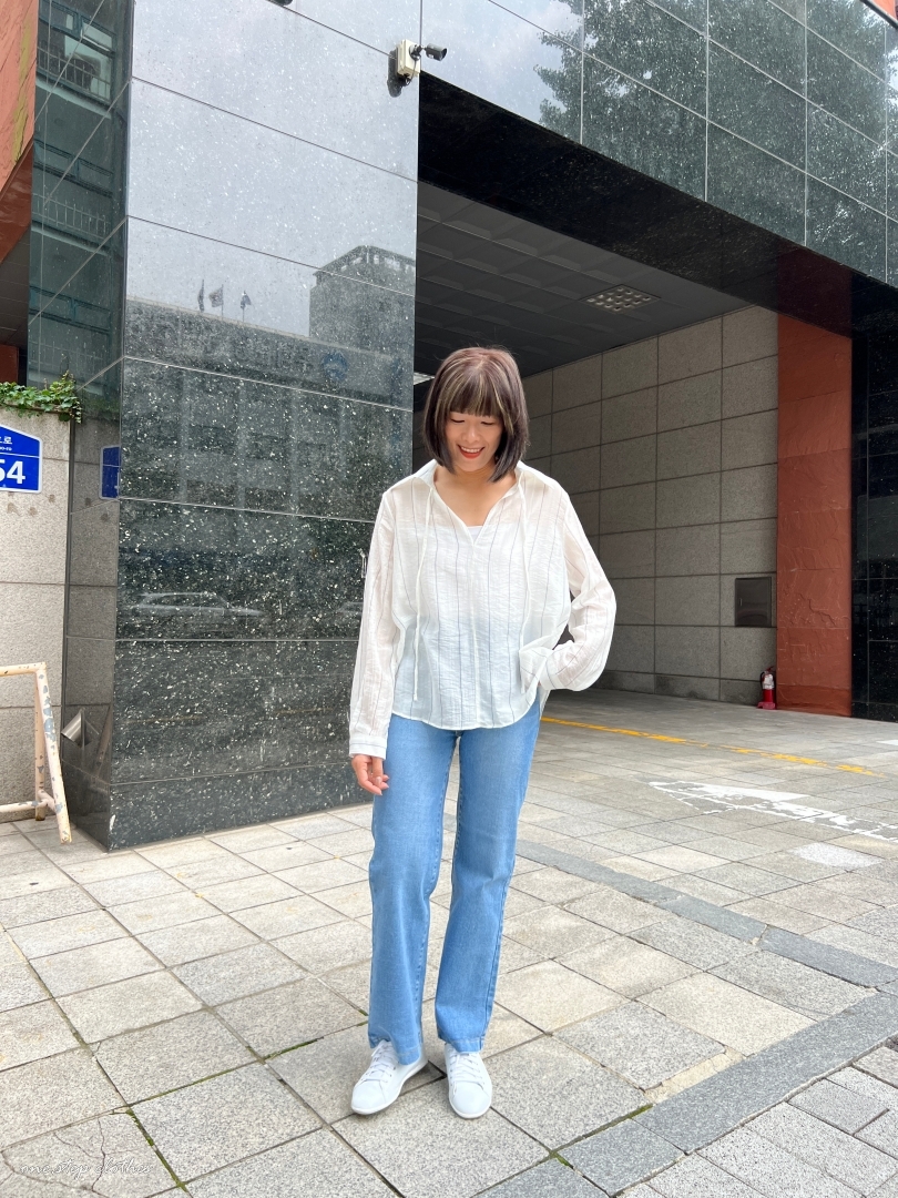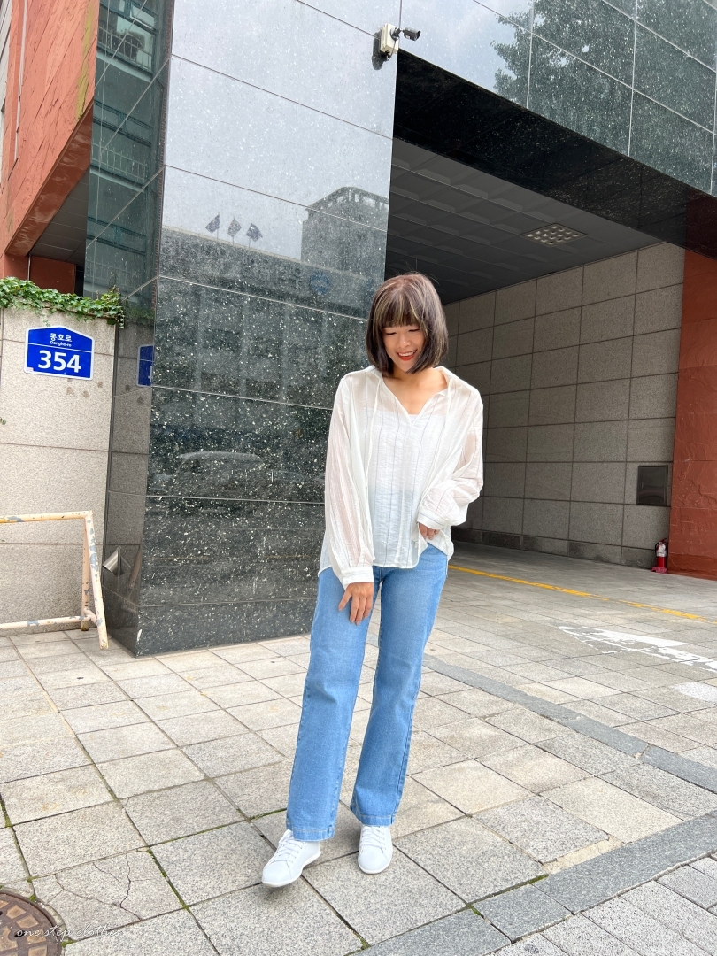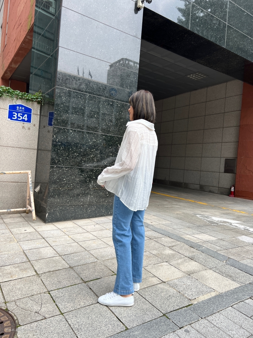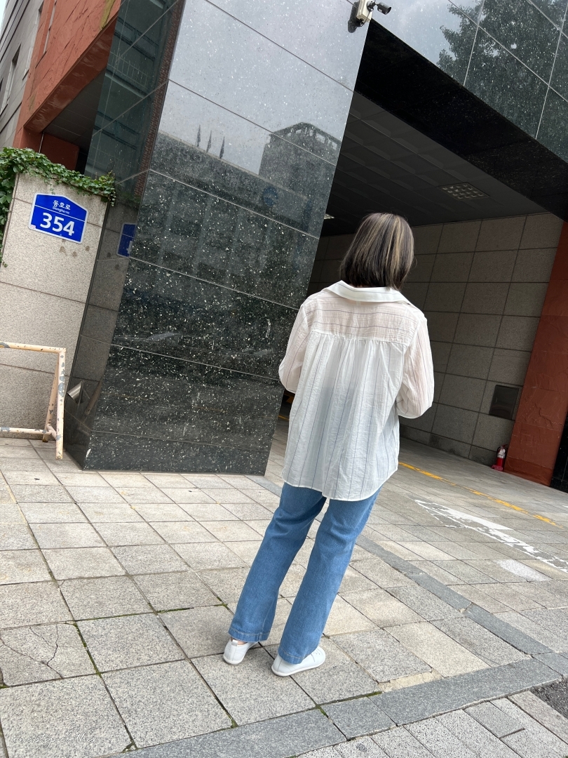 正韓慵懶清透感V領直條衫