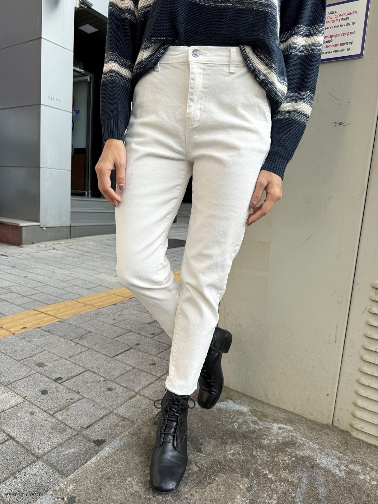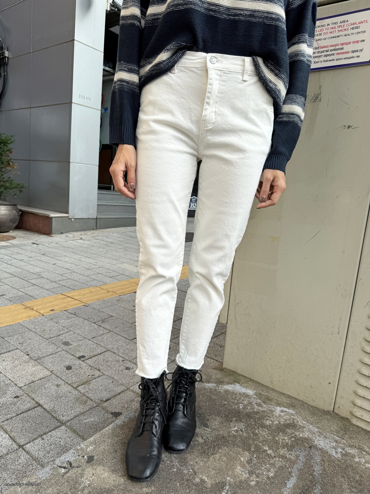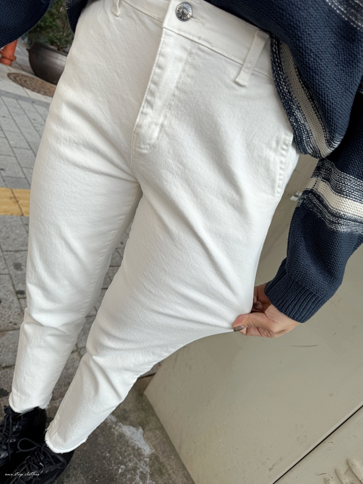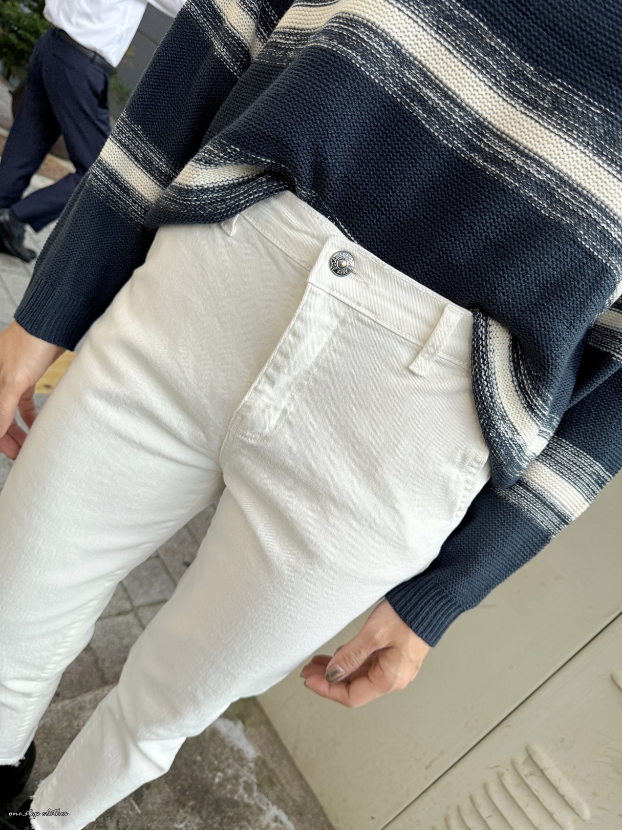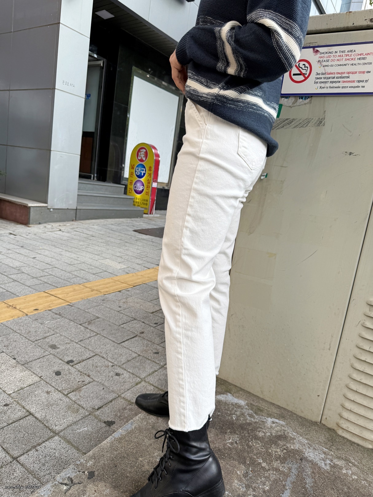 這款穿S,穿起來腰圍剛剛好,小擠肉但不會不舒服,過一陣子就蠻OK的,整體順身但不會太緊貼,褲長約9分,穿起來算中腰差不多到肚臍附近。(PS這款的白色我是穿M號的唷,穿起來微鬆感再多一點,怕淺色放大的也可以拿大一號穿,會有點介於小男友跟直筒中間唷,腰圍一樣OK不會啷)