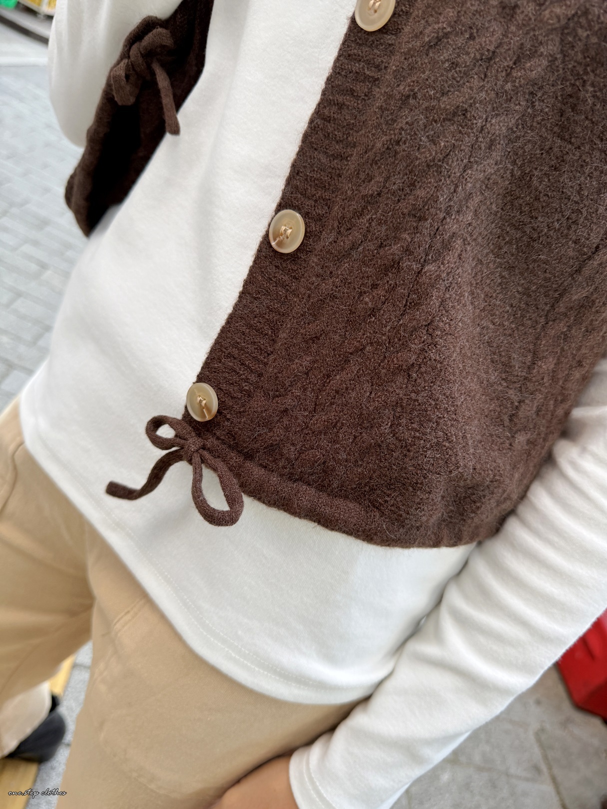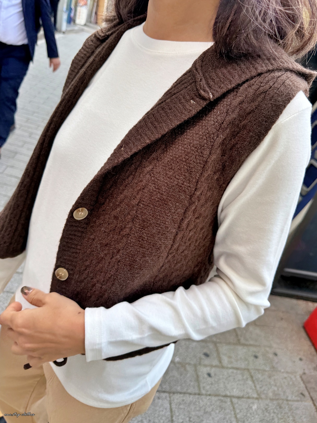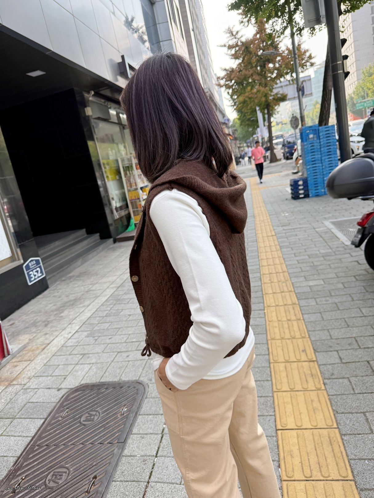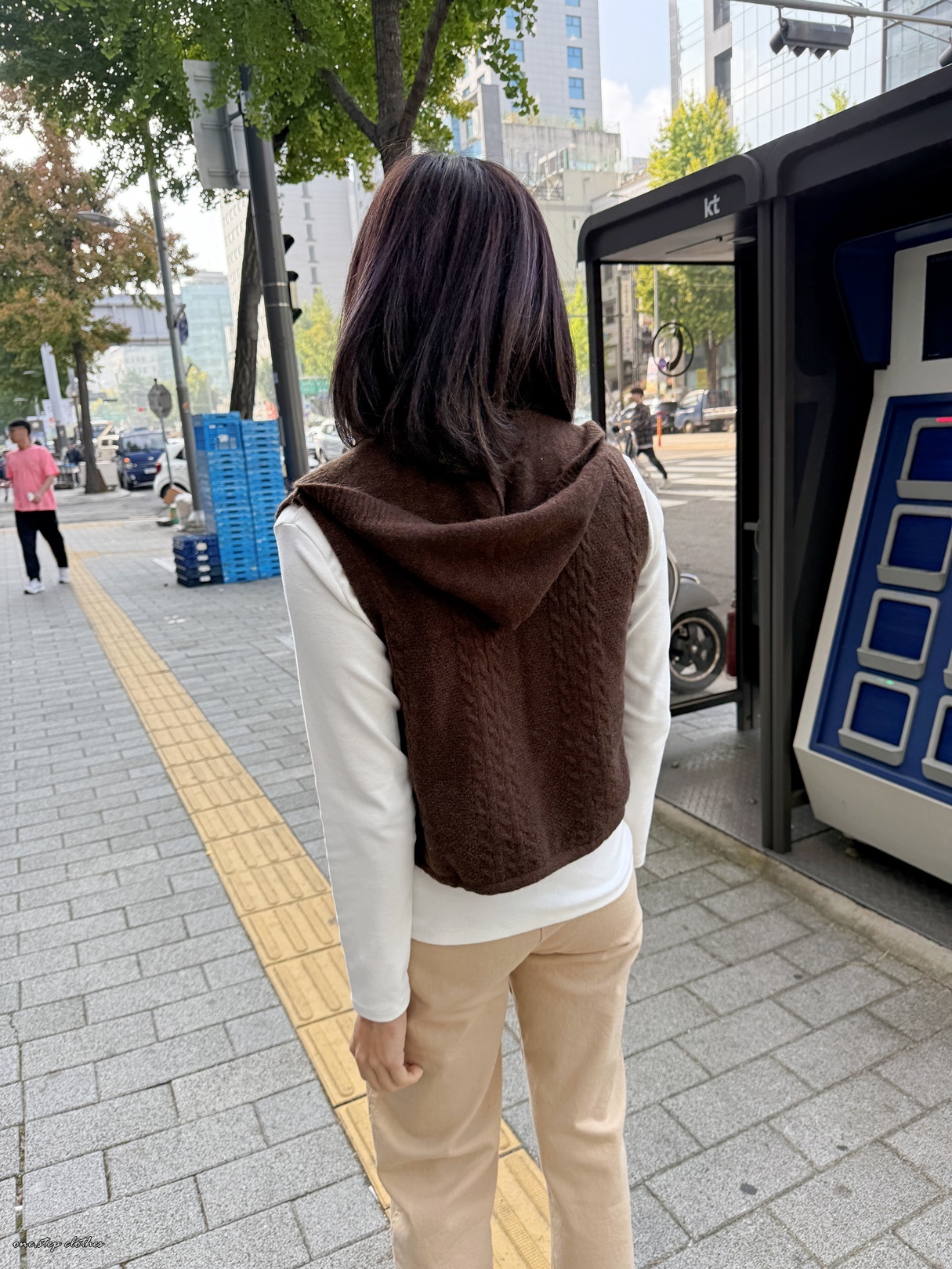 正韓軟Q麻花編織連帽針織背心 (咖)