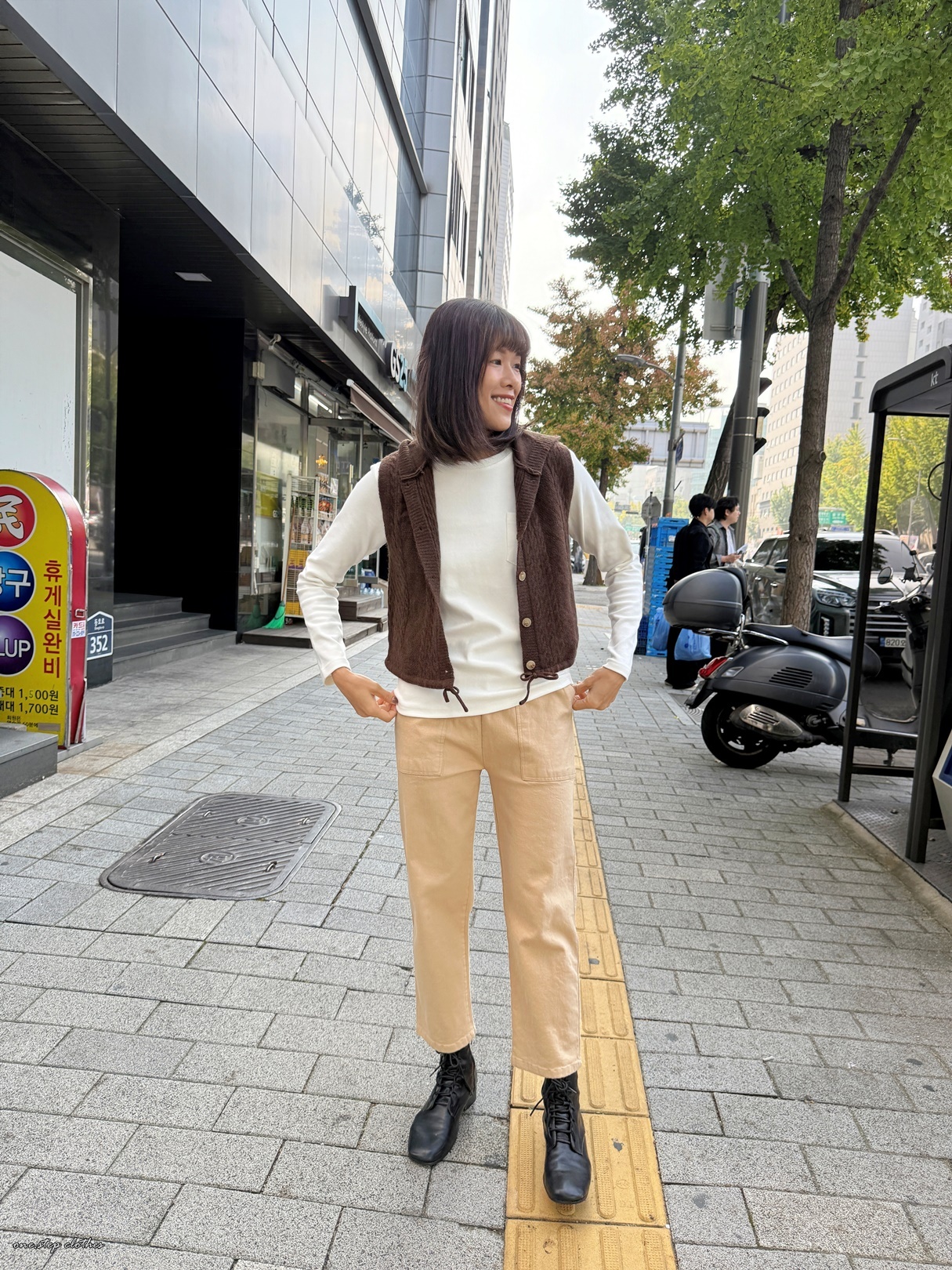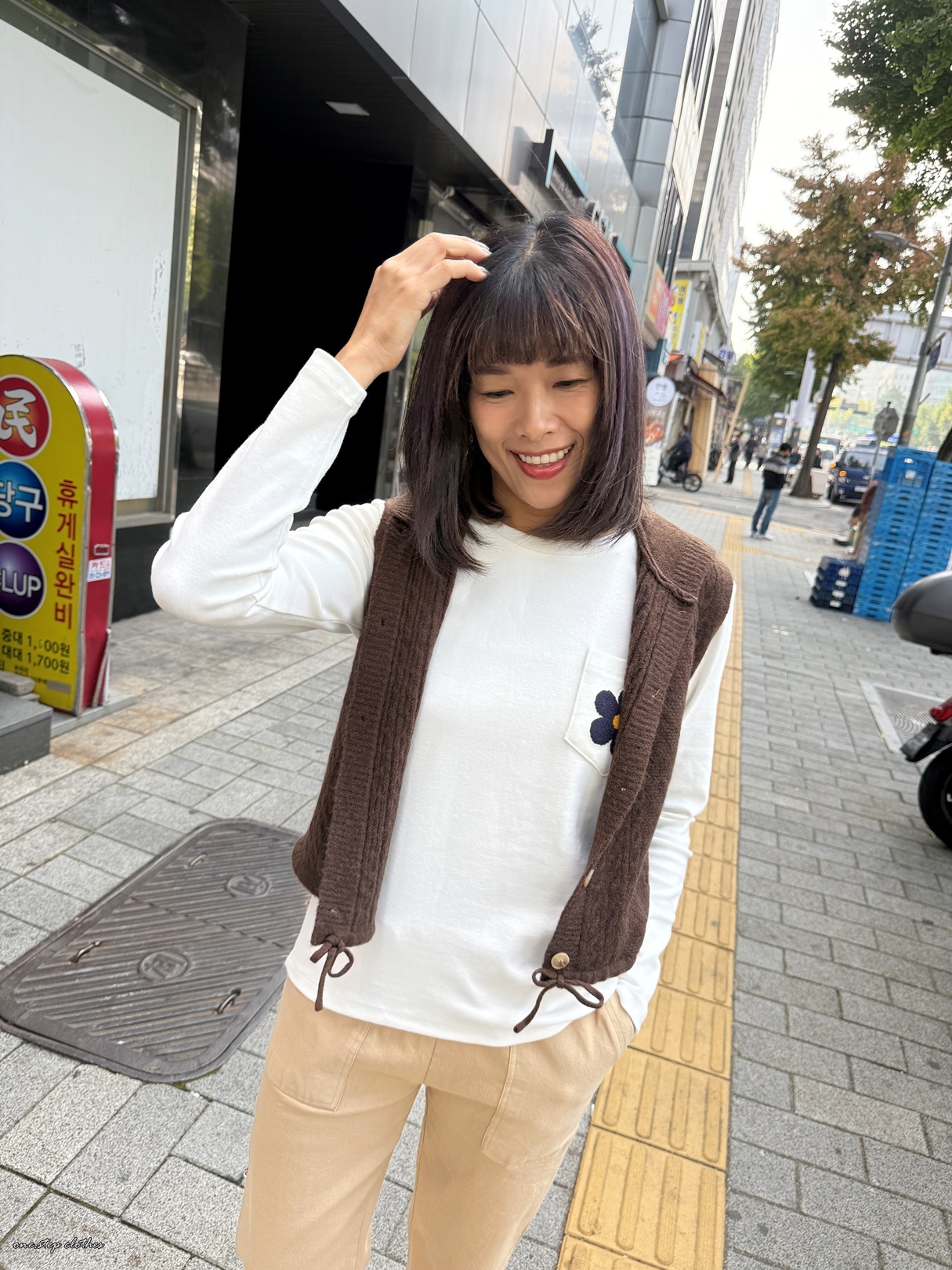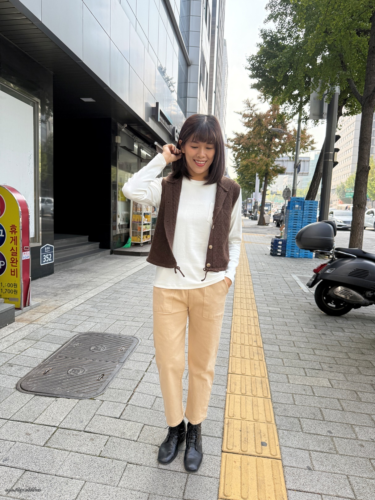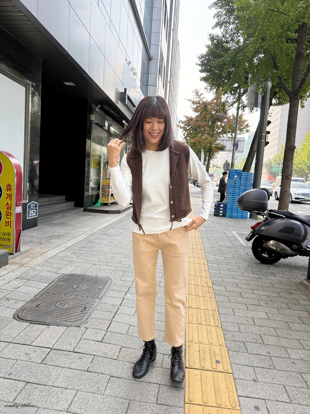 正韓軟Q麻花編織連帽針織背心 (咖)