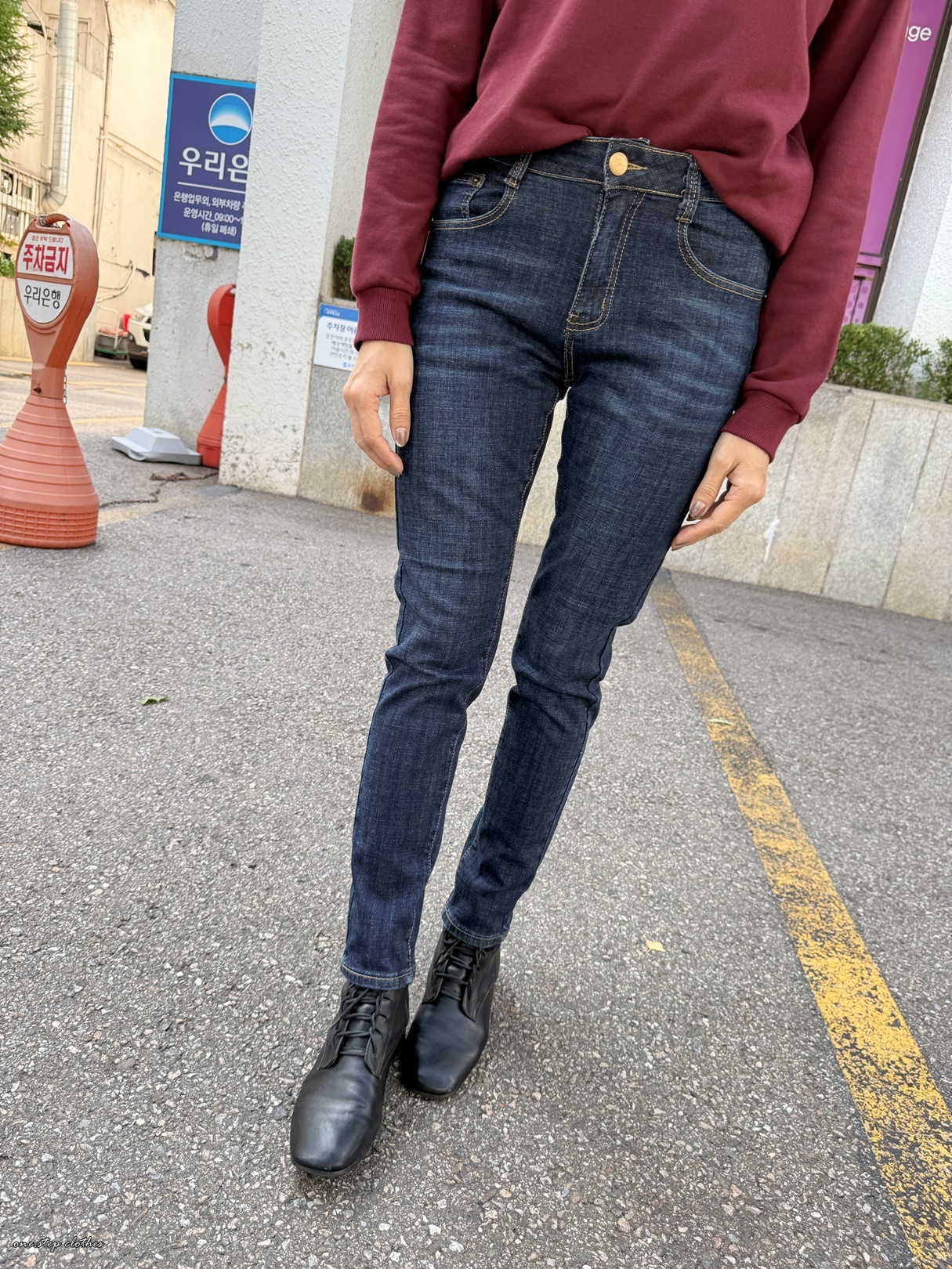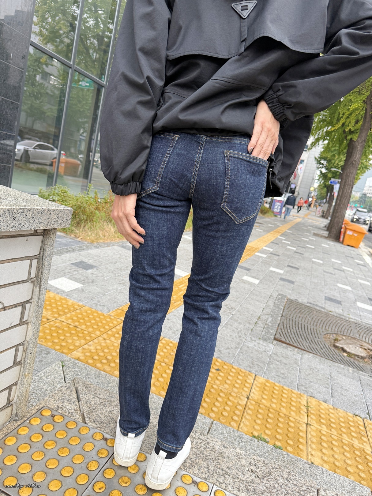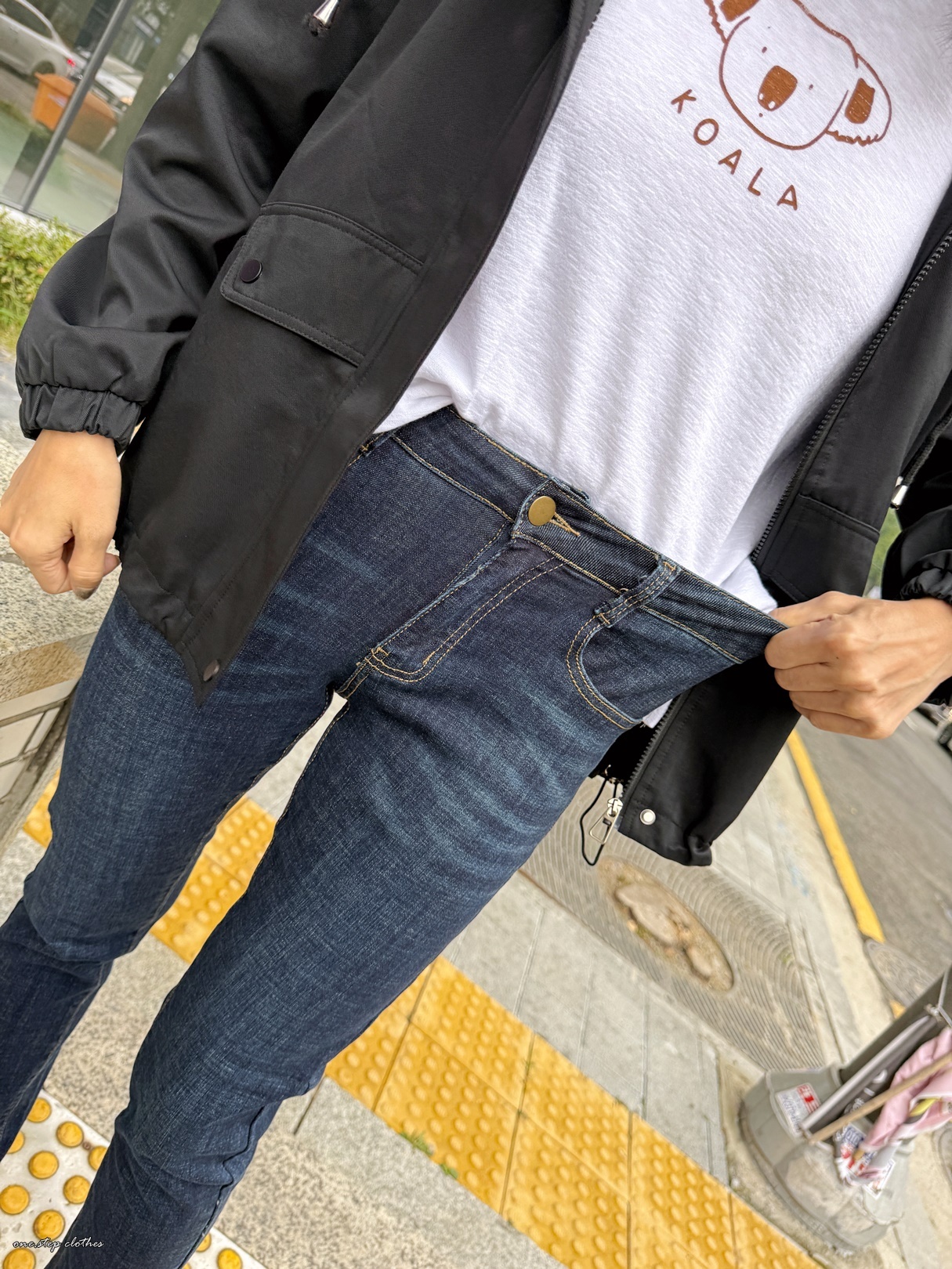 正韓Flex超彈性深藍顯瘦牛仔長褲