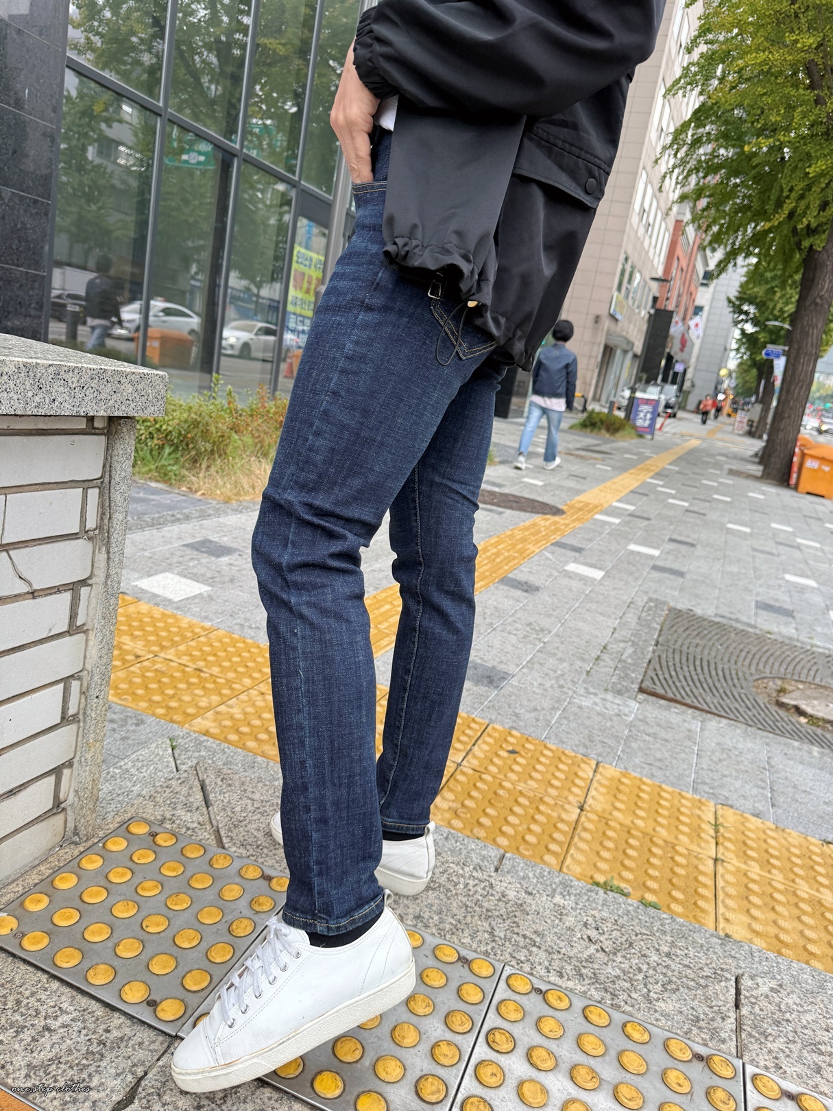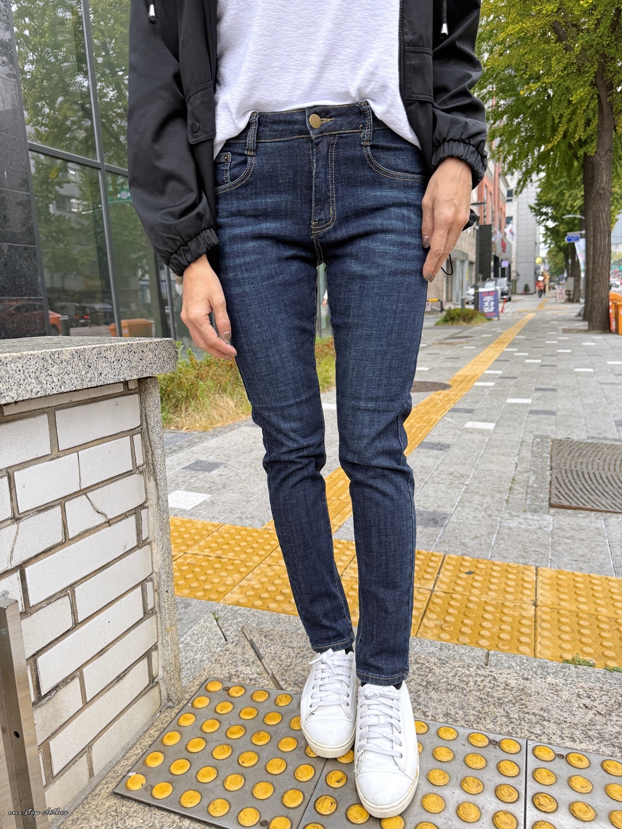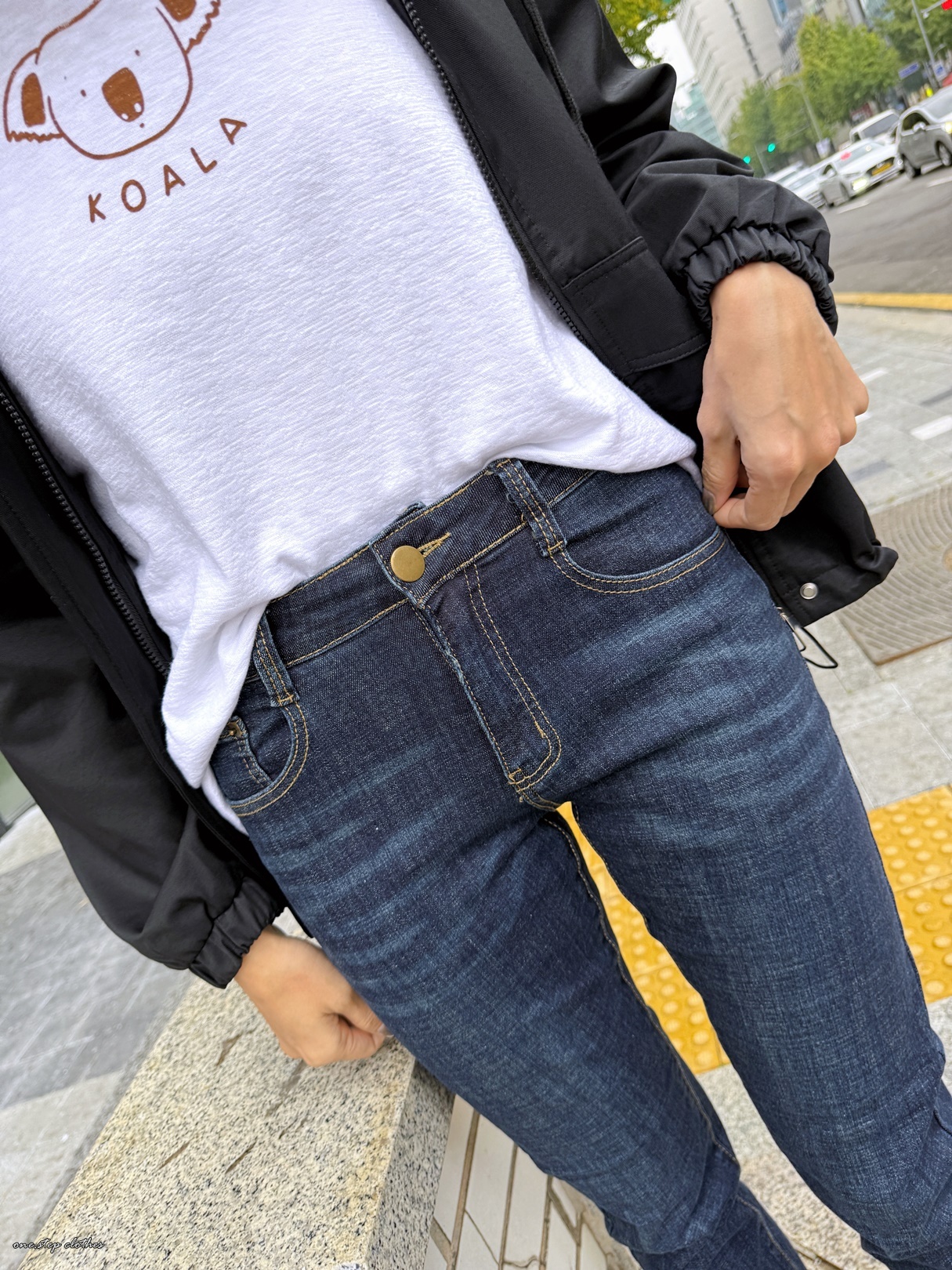 正韓Flex超彈性深藍顯瘦牛仔長褲