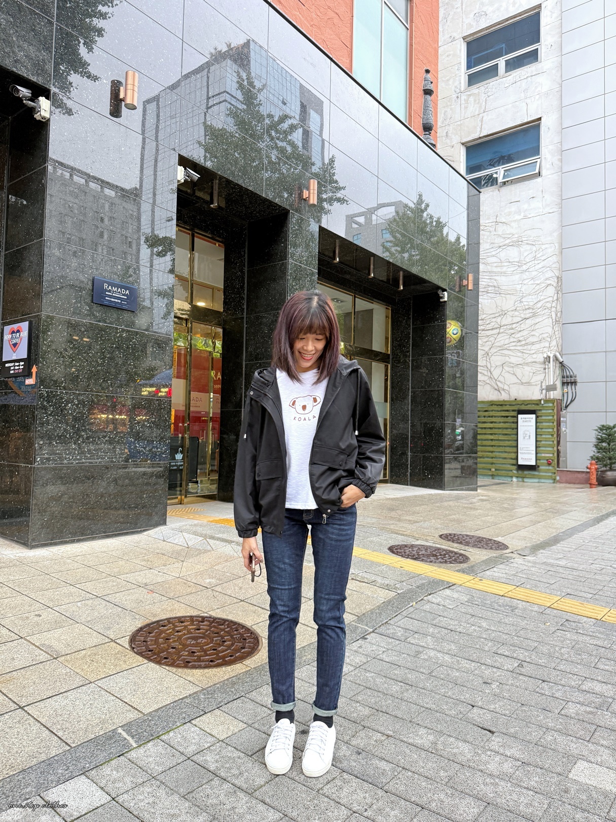 這款穿S,穿起來腰圍舒服,褲長約在9.5分,褲頭差不多在肚臍附近,中低腰