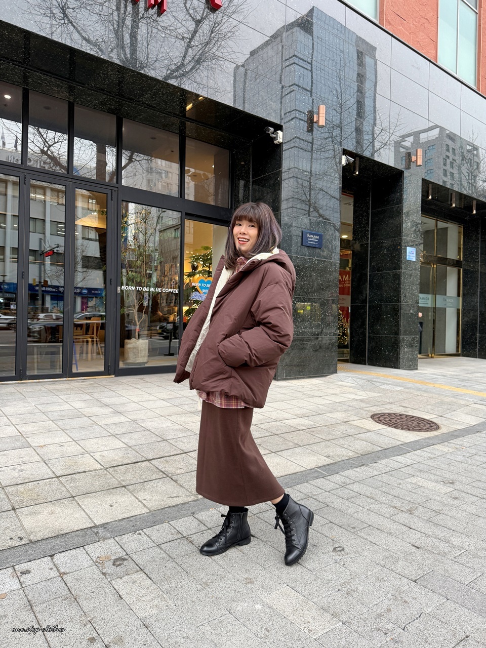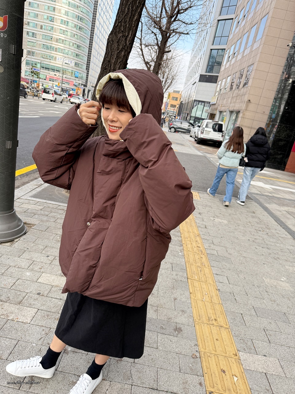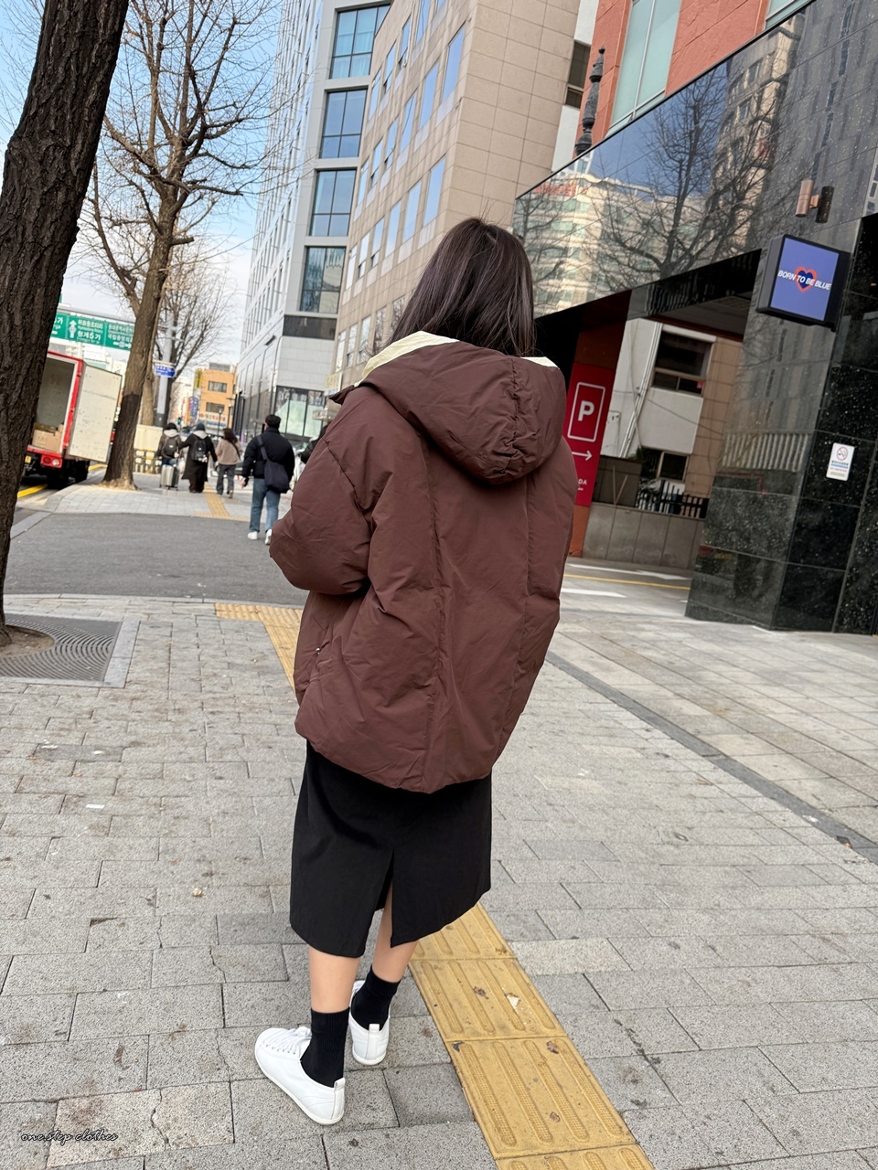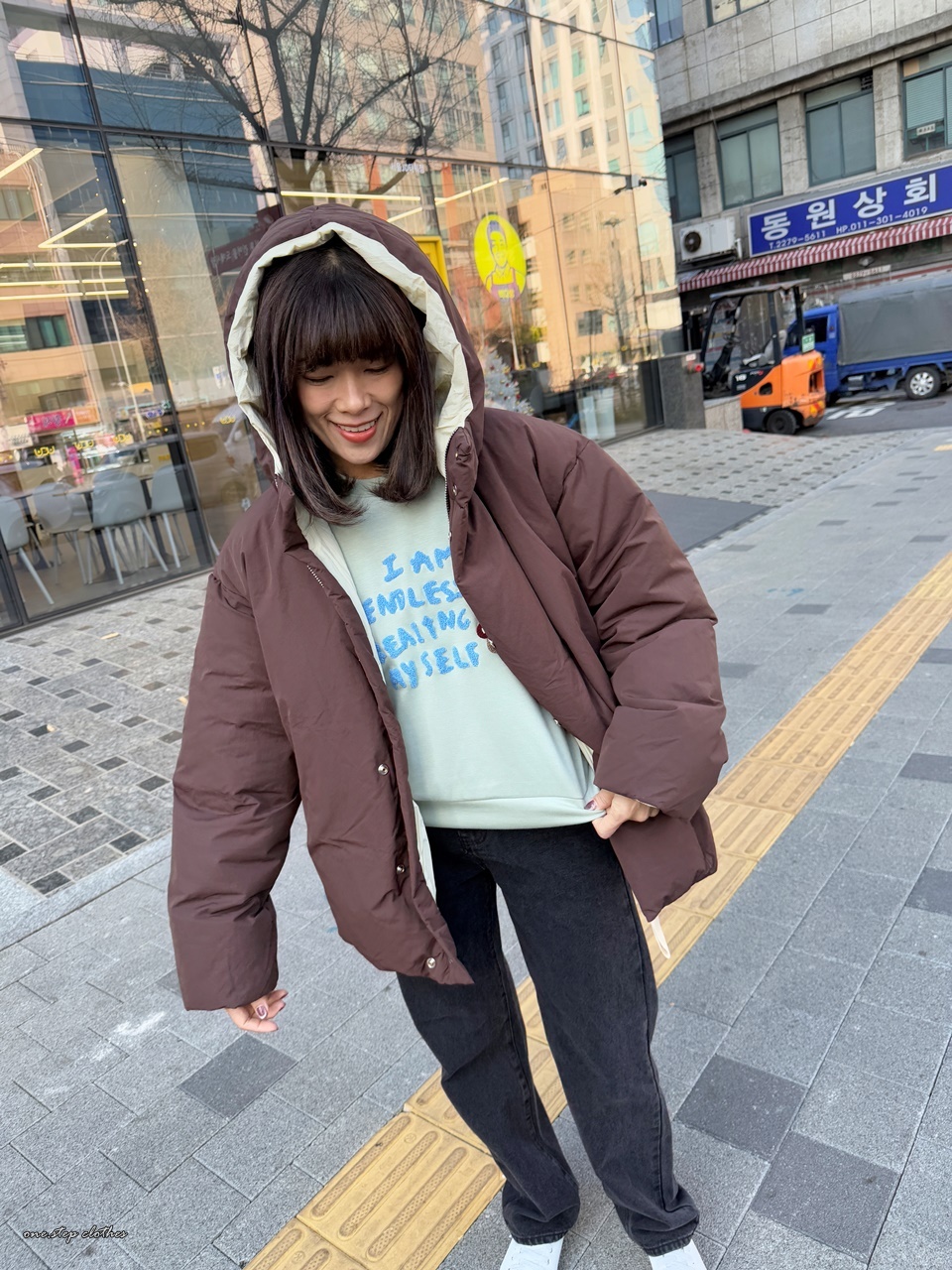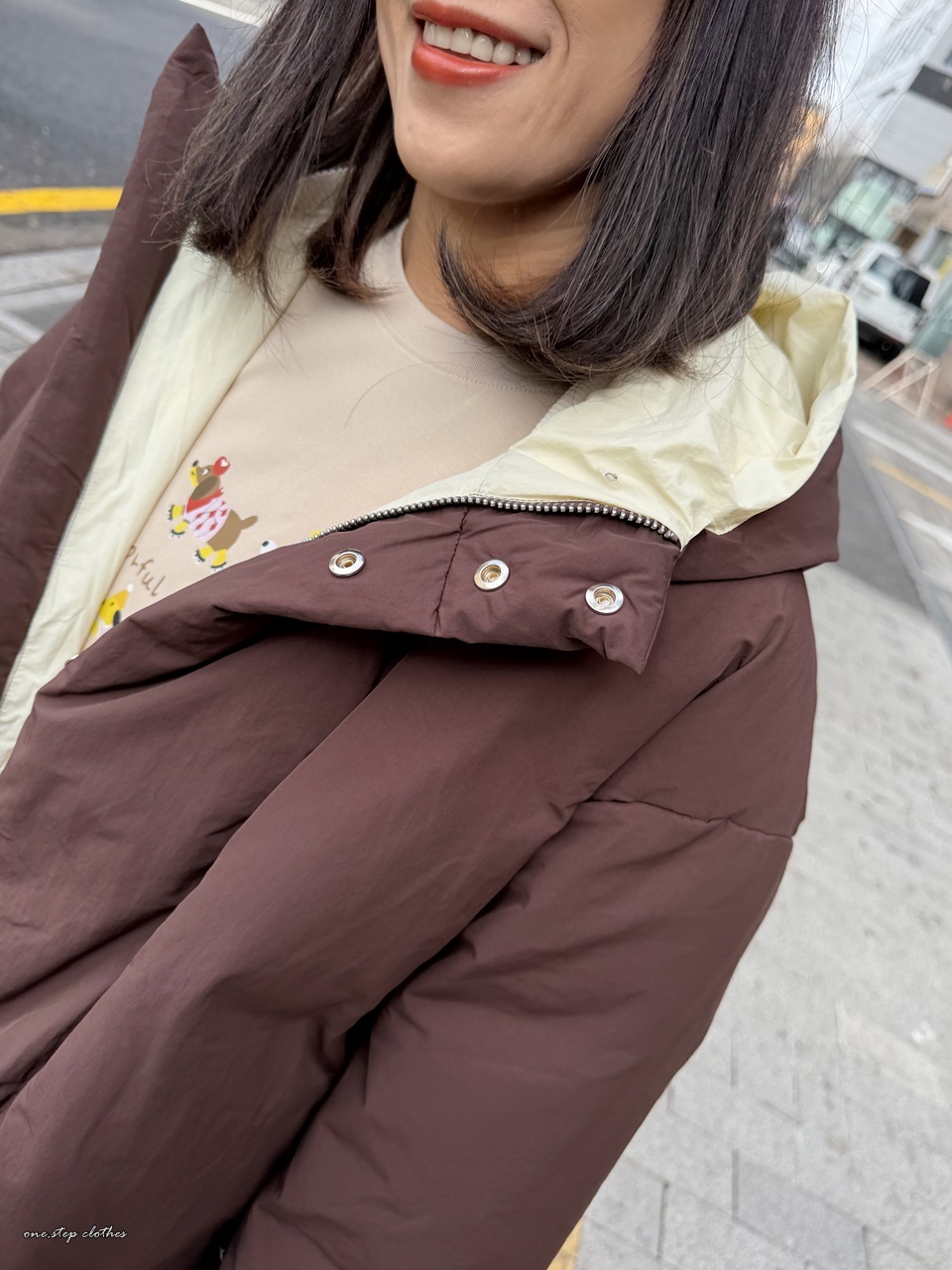 正韓精靈配色保暖連帽鋪棉外 (咖)