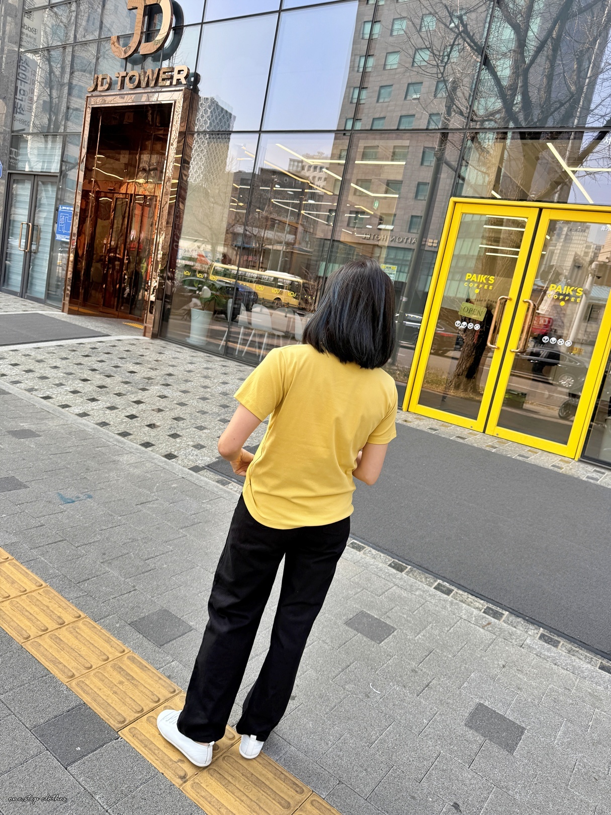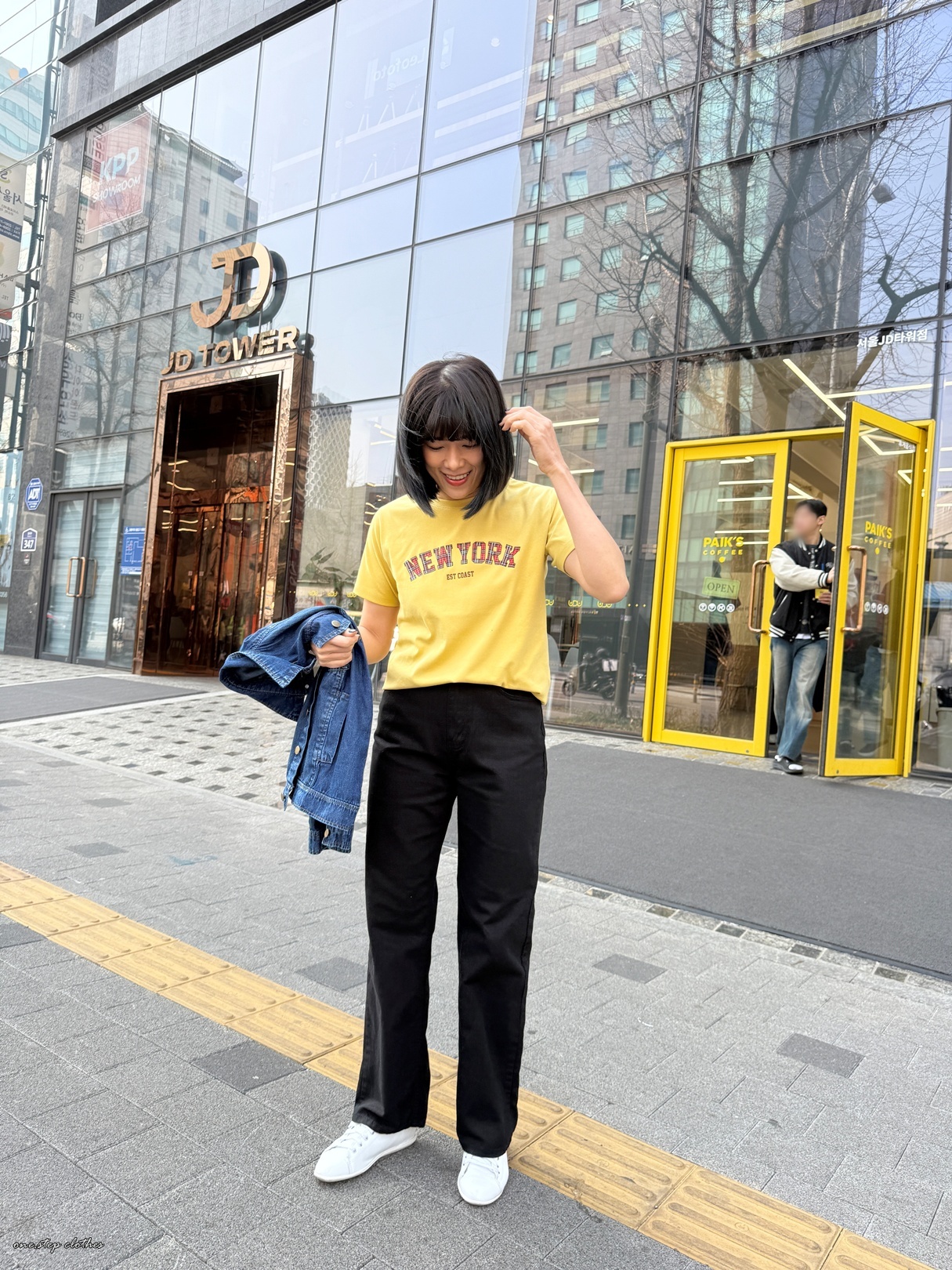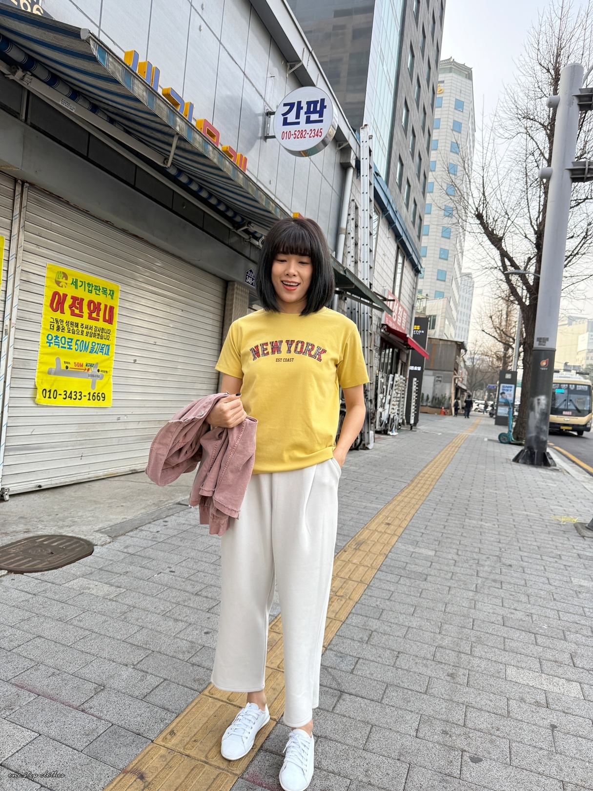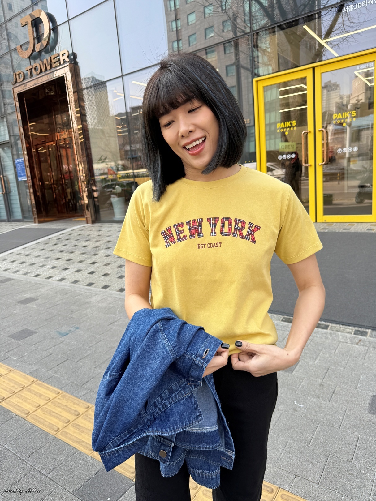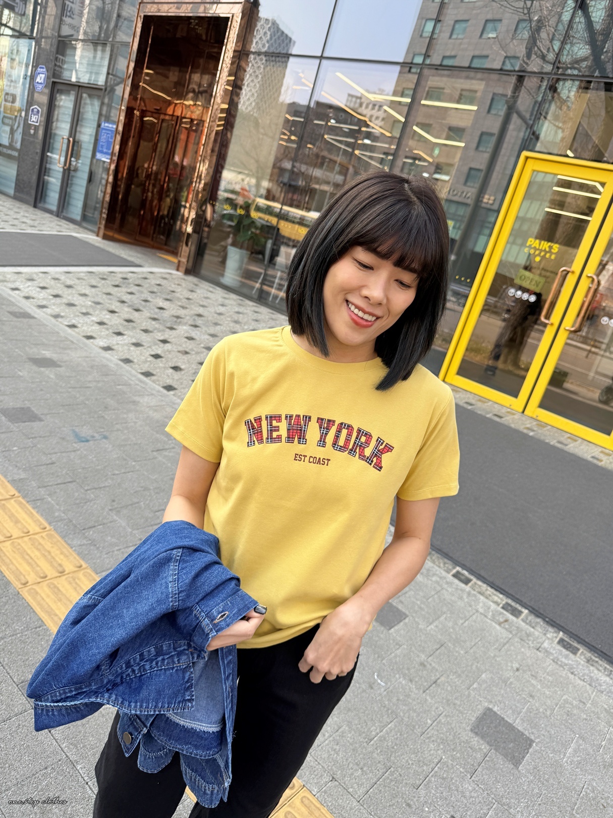 正韓格紋NEW YORK配色T (黃)