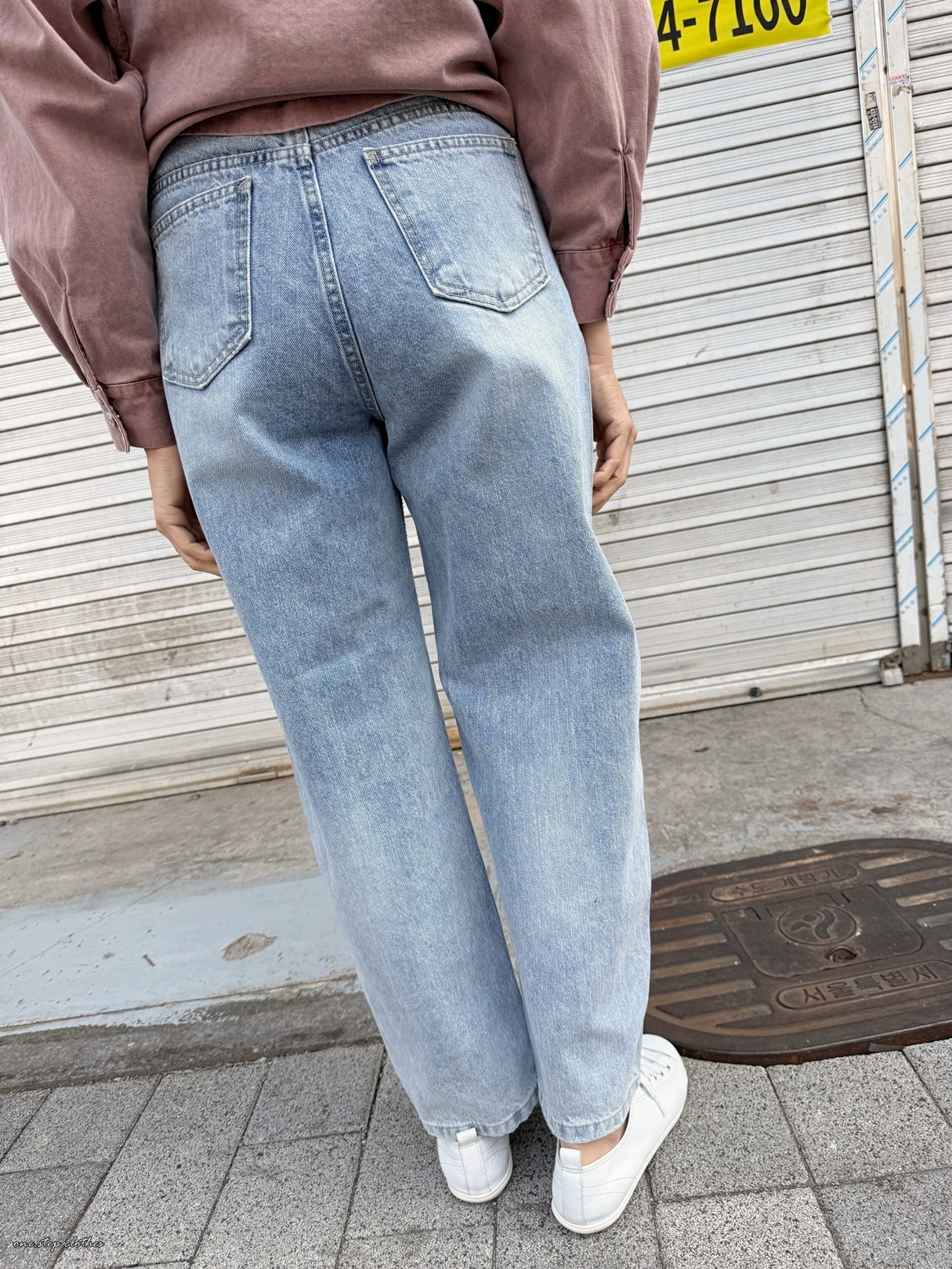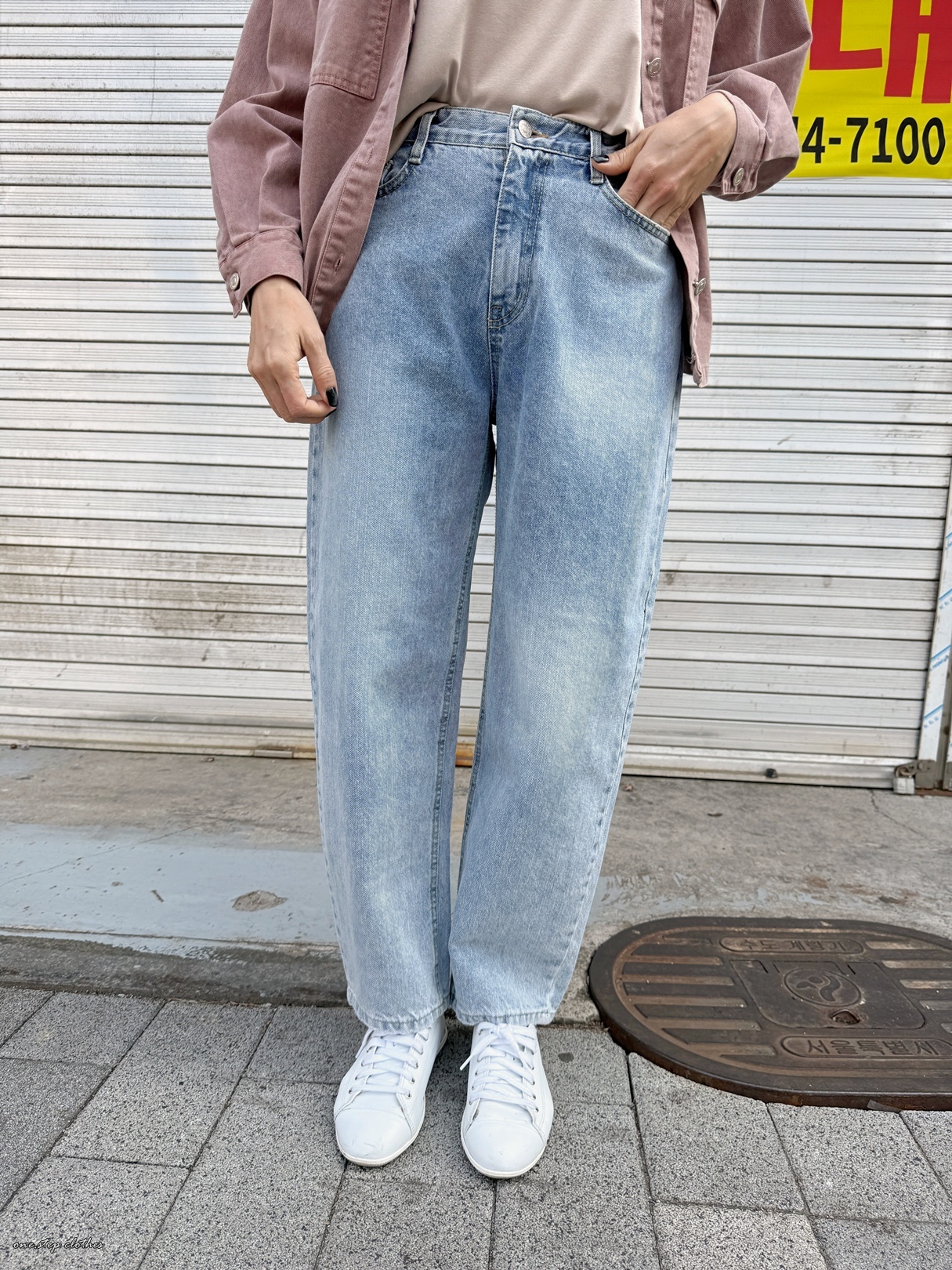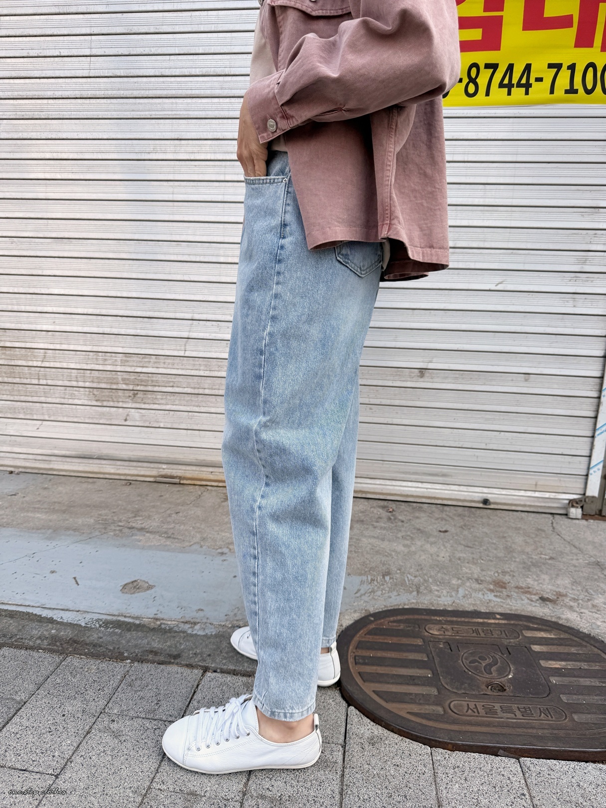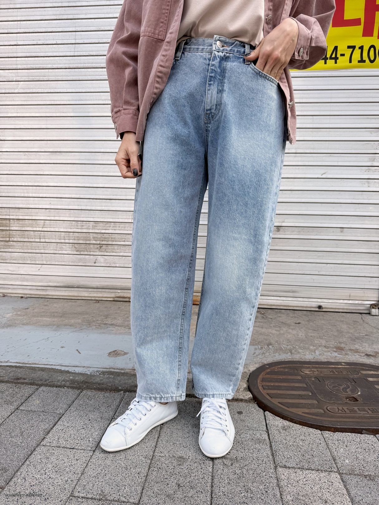 正韓BLOOM修飾柔焦藍錐形牛仔褲