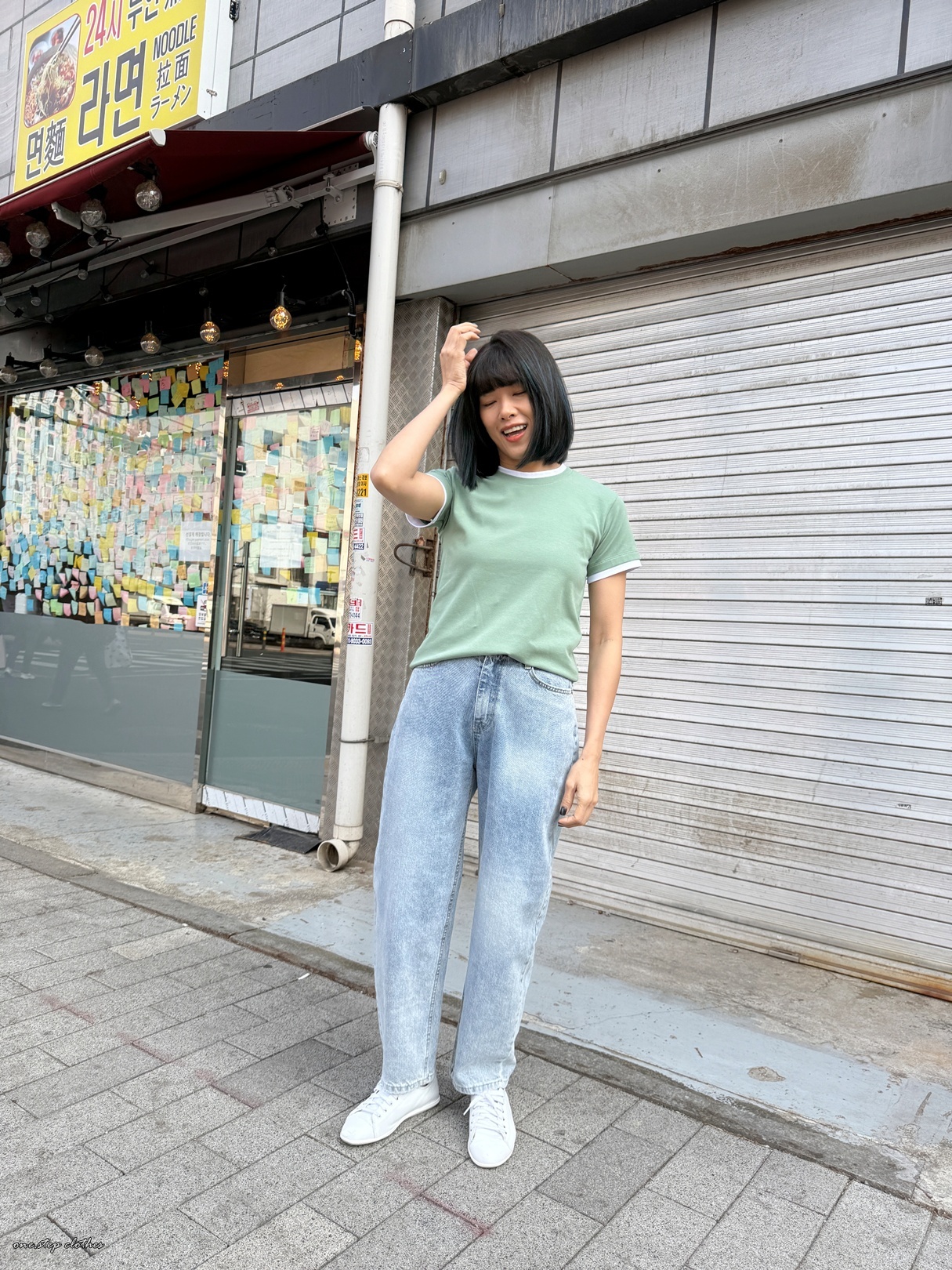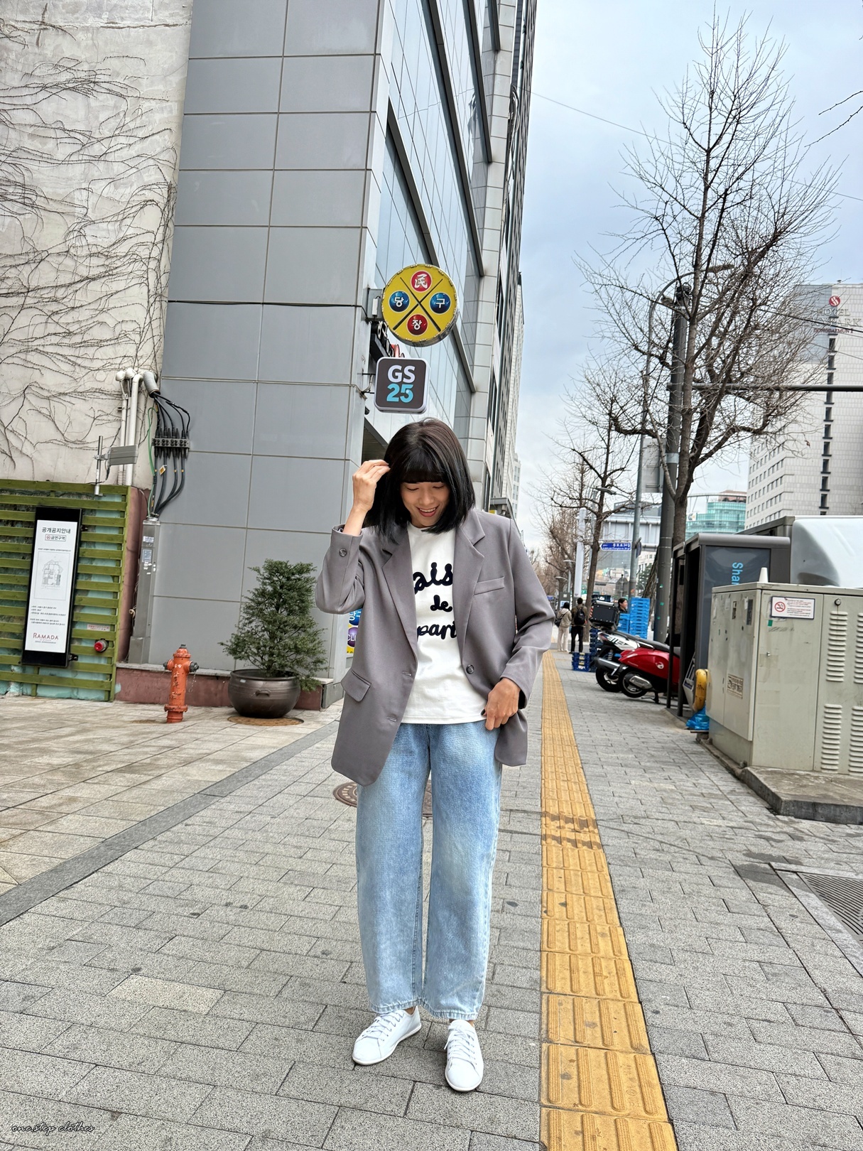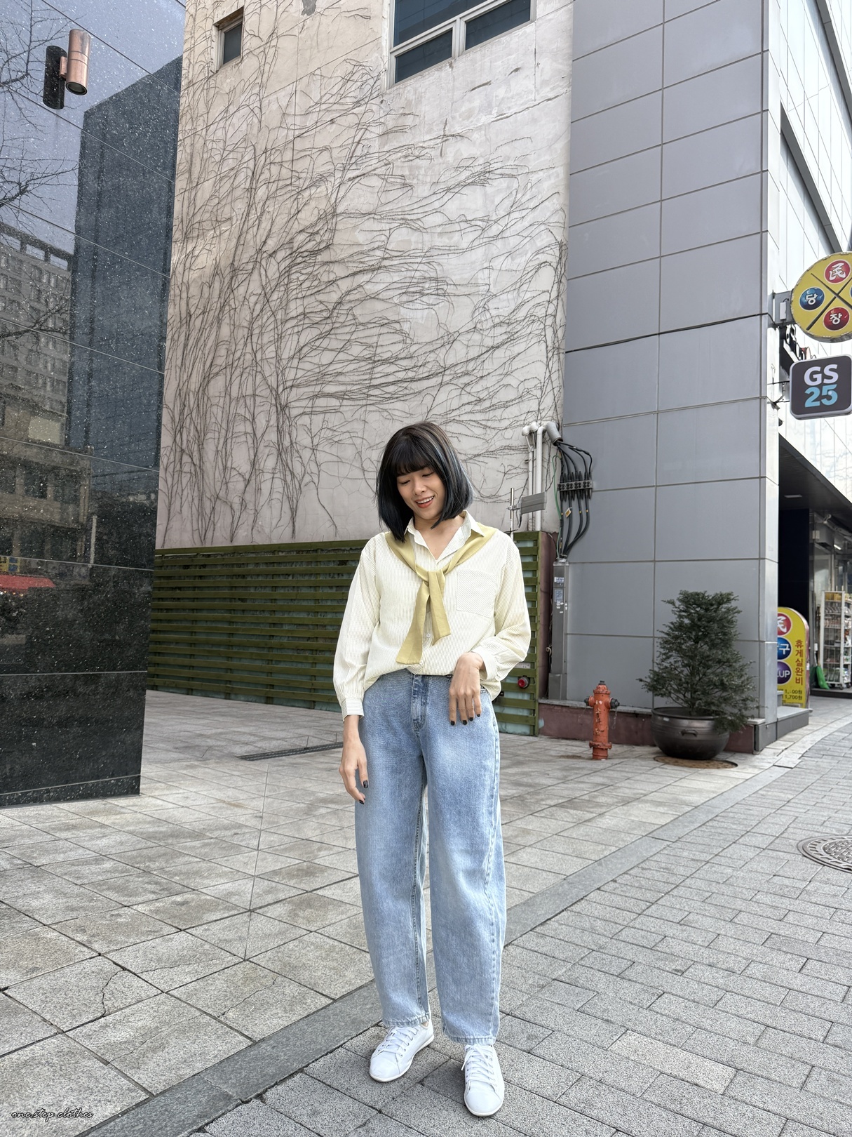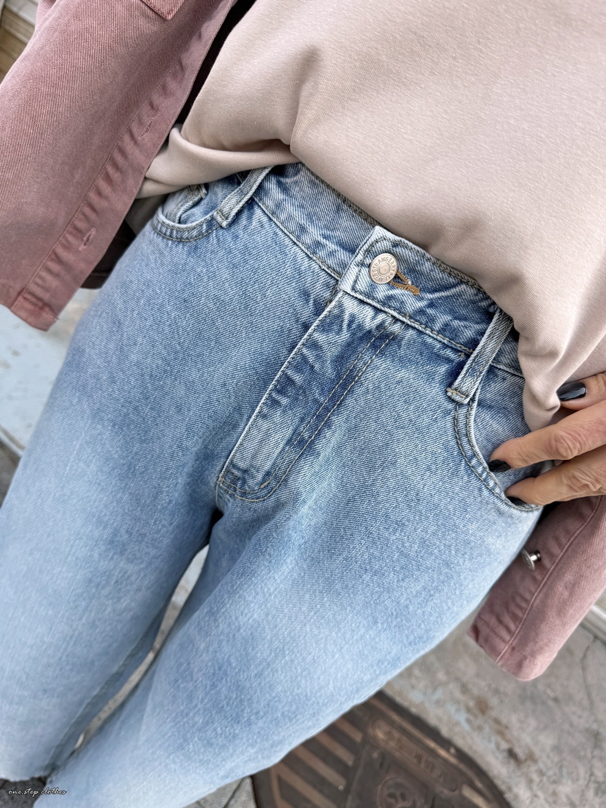 正韓BLOOM修飾柔焦藍錐形牛仔褲