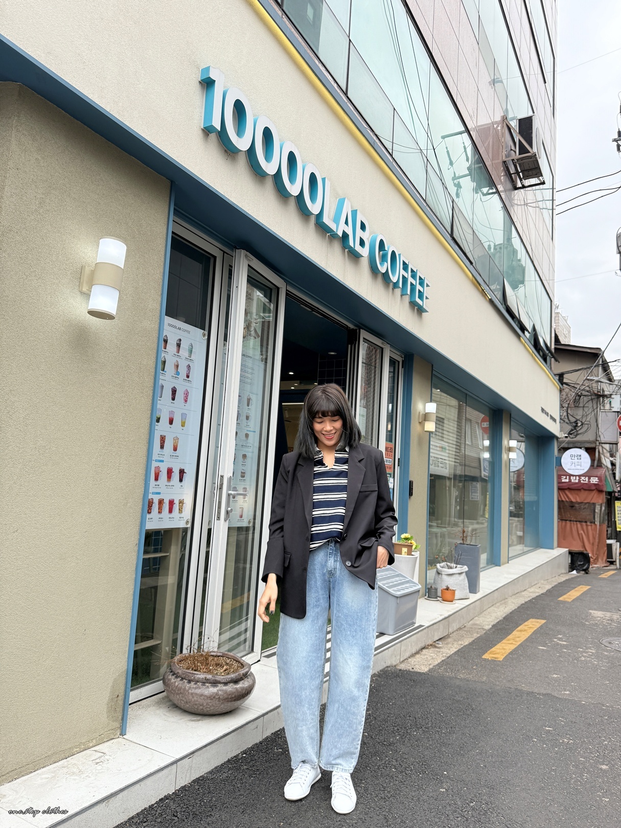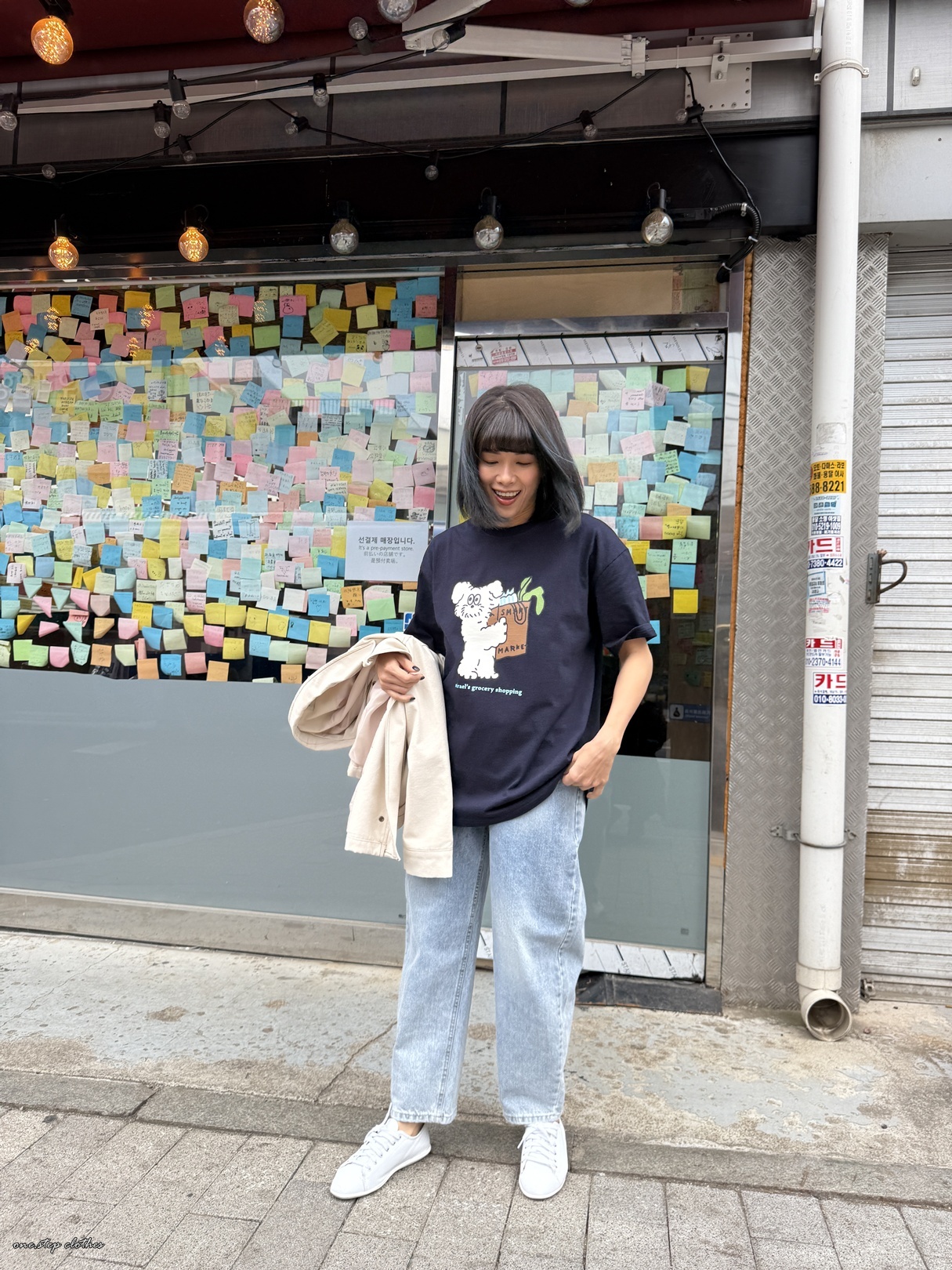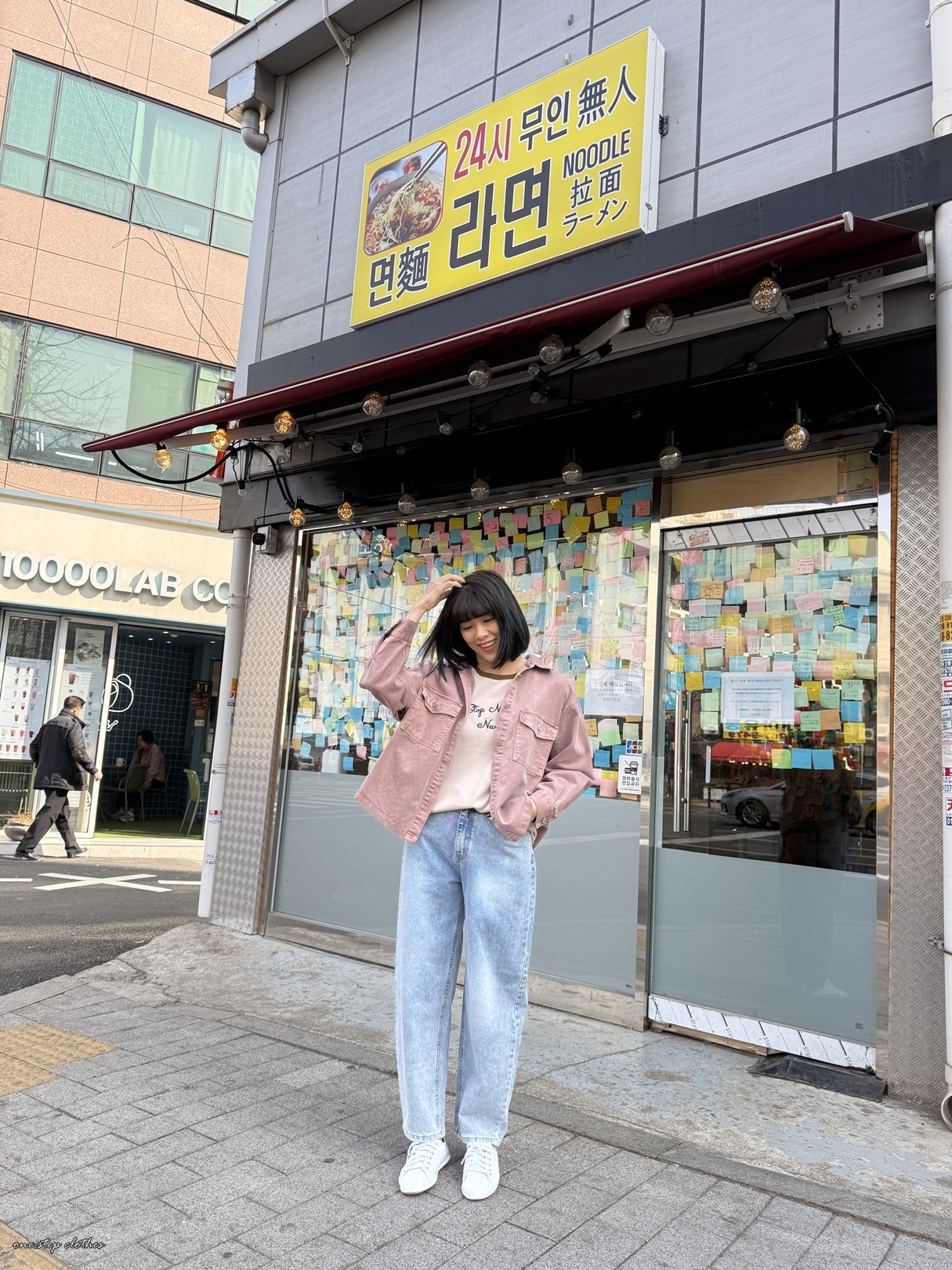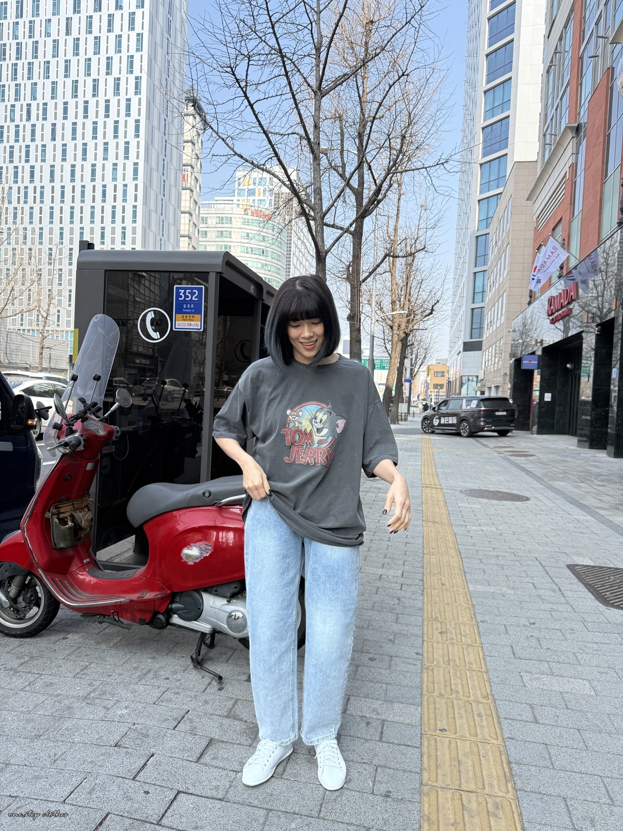 正韓BLOOM修飾柔焦藍錐形牛仔褲