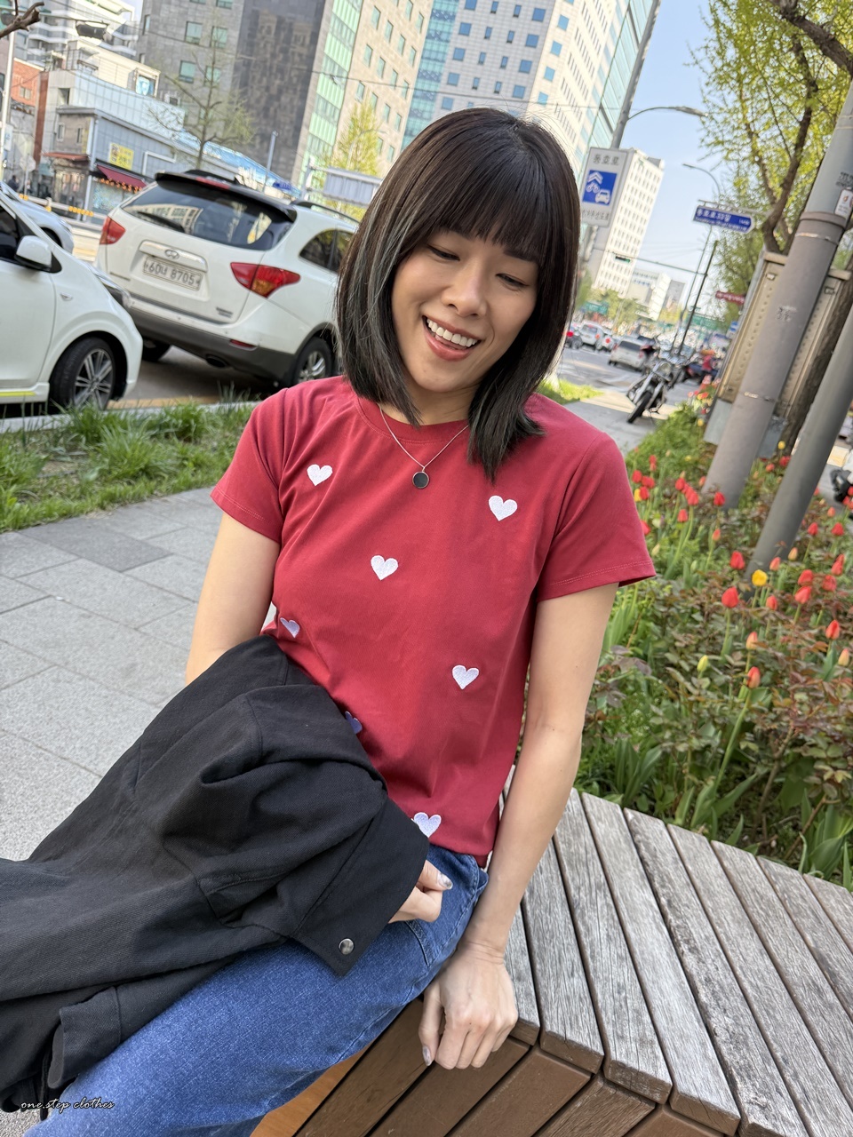正韓Lovely愛心刺繡T (紅)
