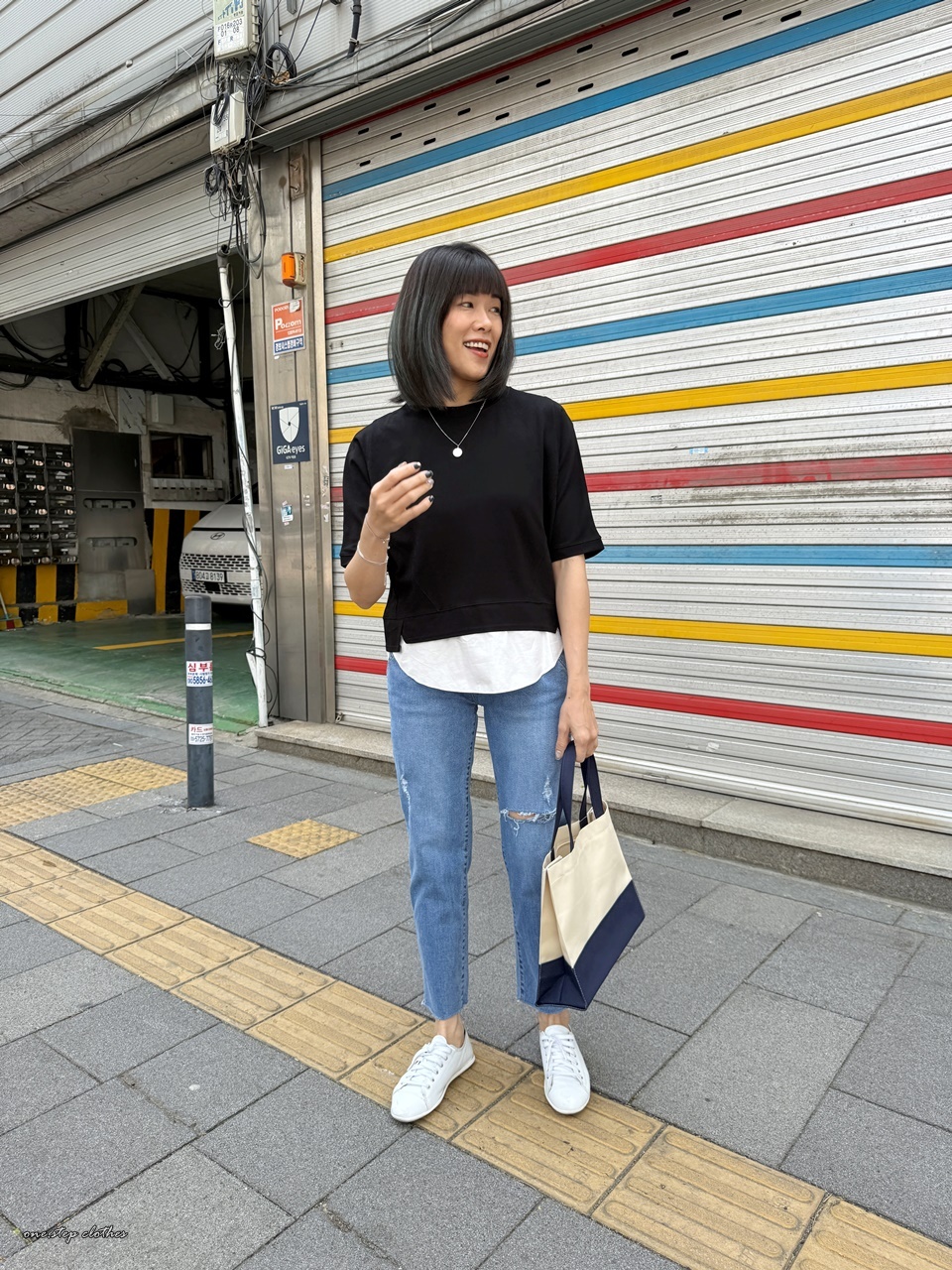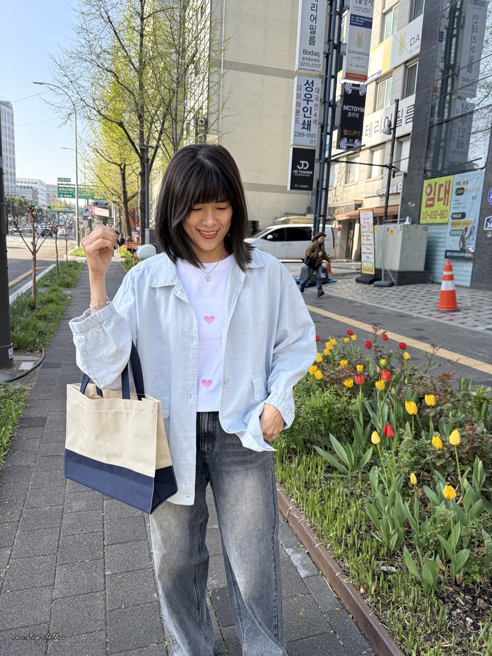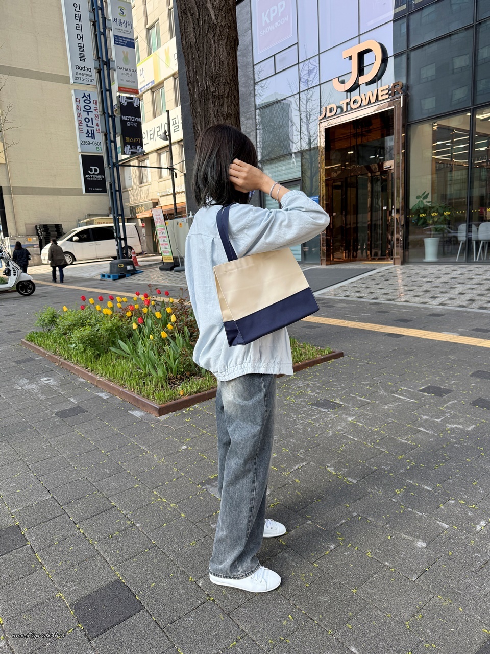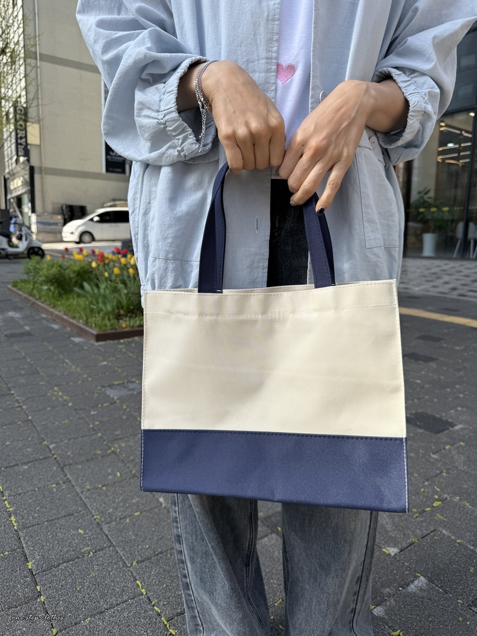 正韓學院Chill雙色拼接手提包 (藍)