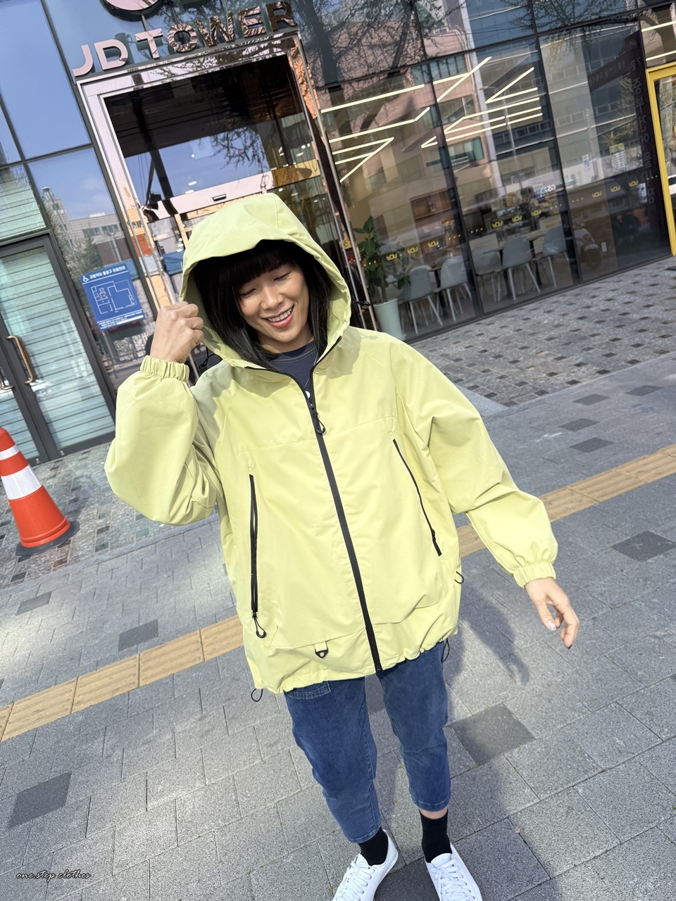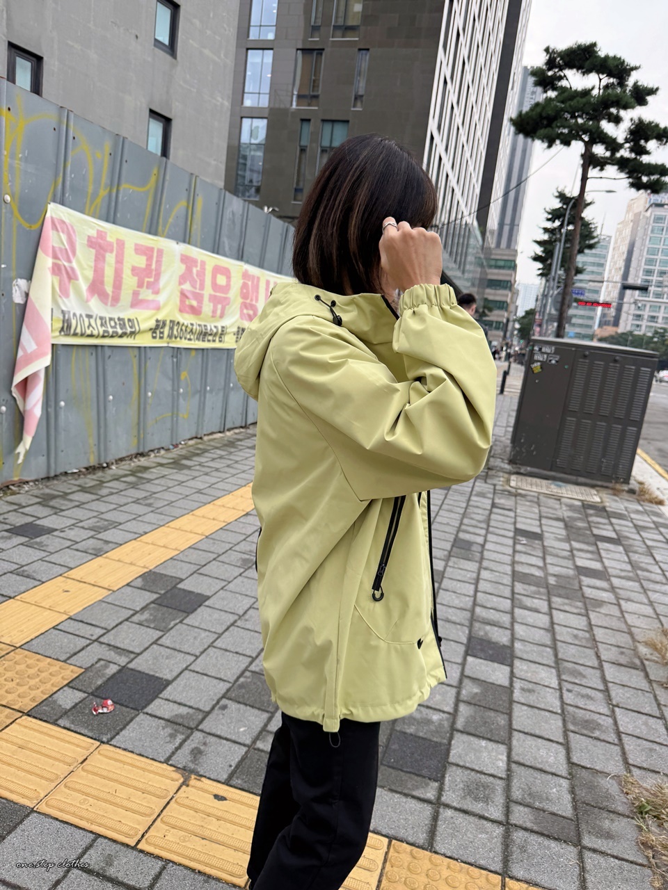 正韓Outdoor寬鬆休閒防潑水連帽外 (黃)