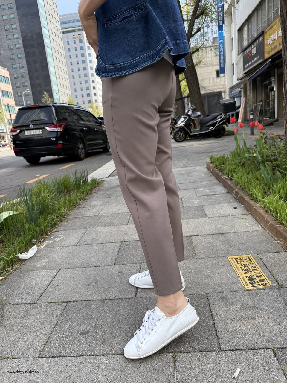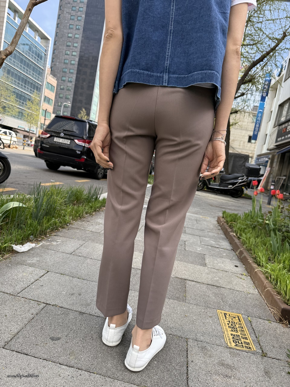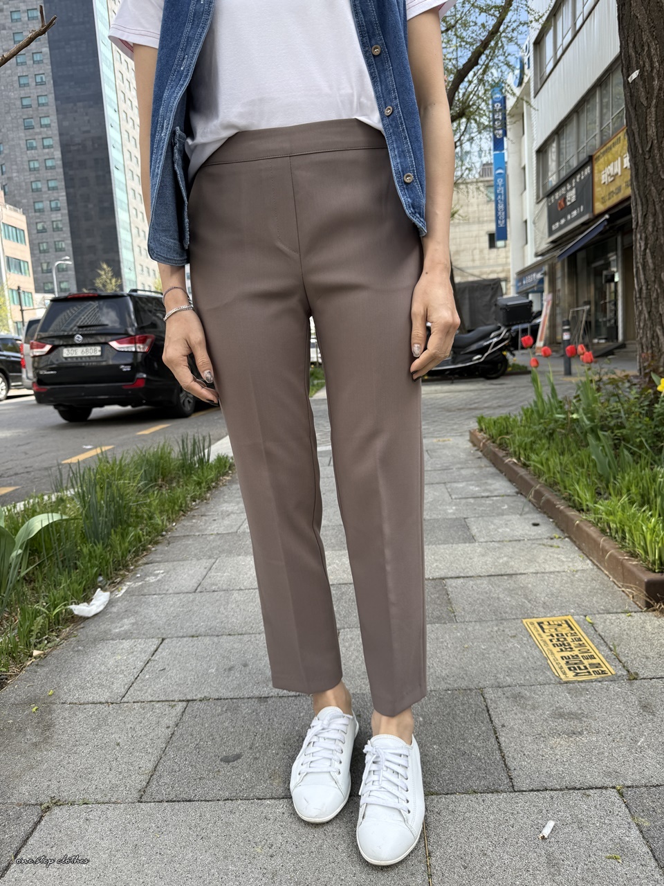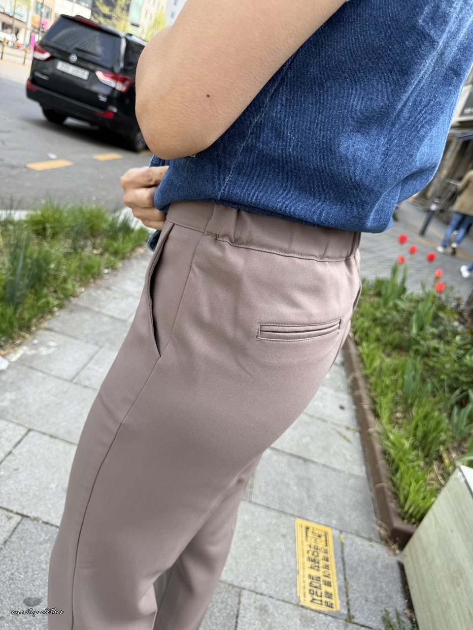 正韓知性顯瘦後鬆緊西裝感休閒褲 (可可)