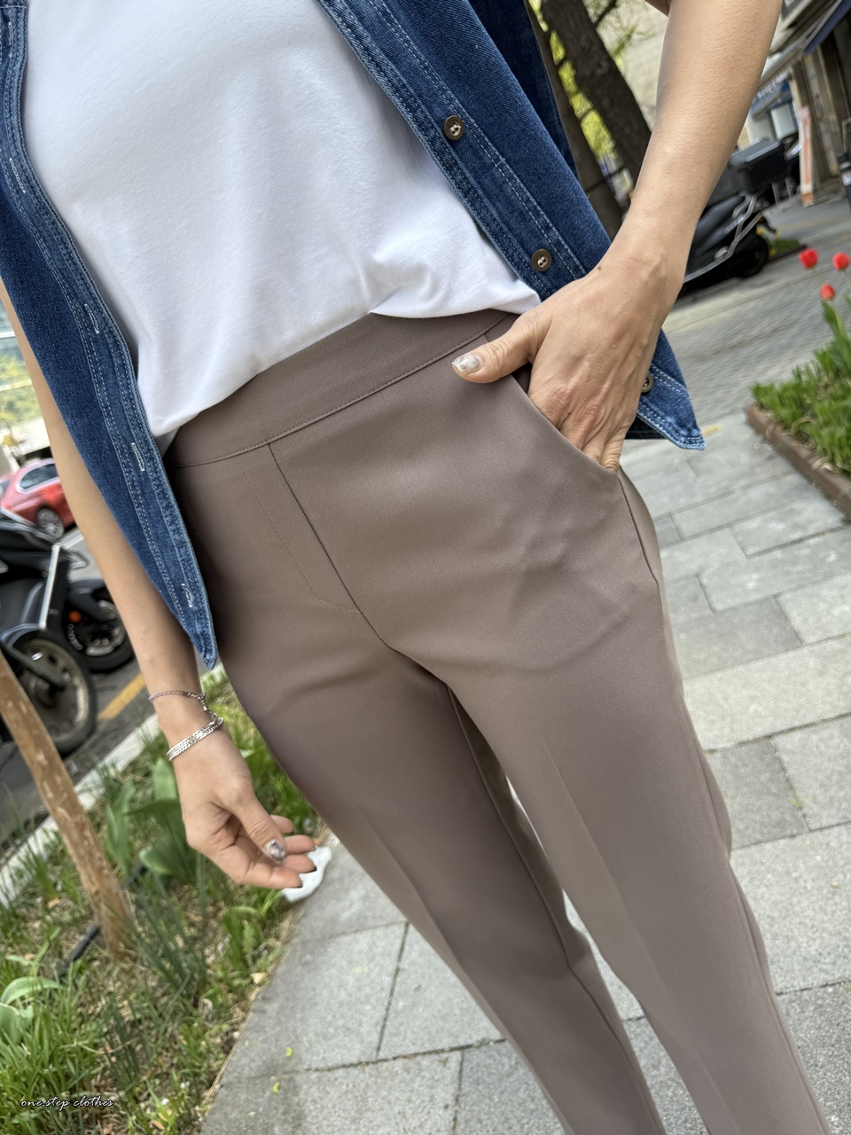 有點類似西裝褲感的紗質休閒褲