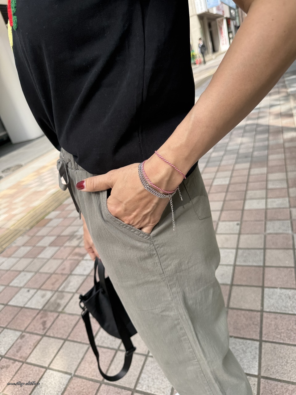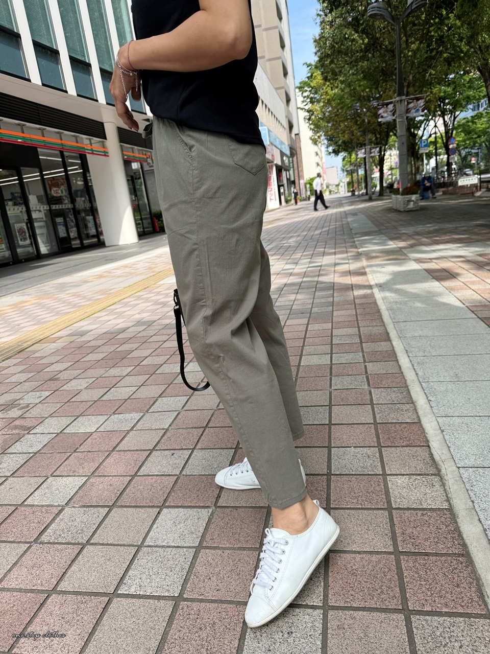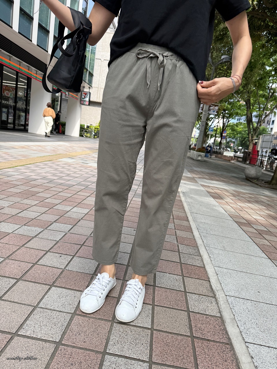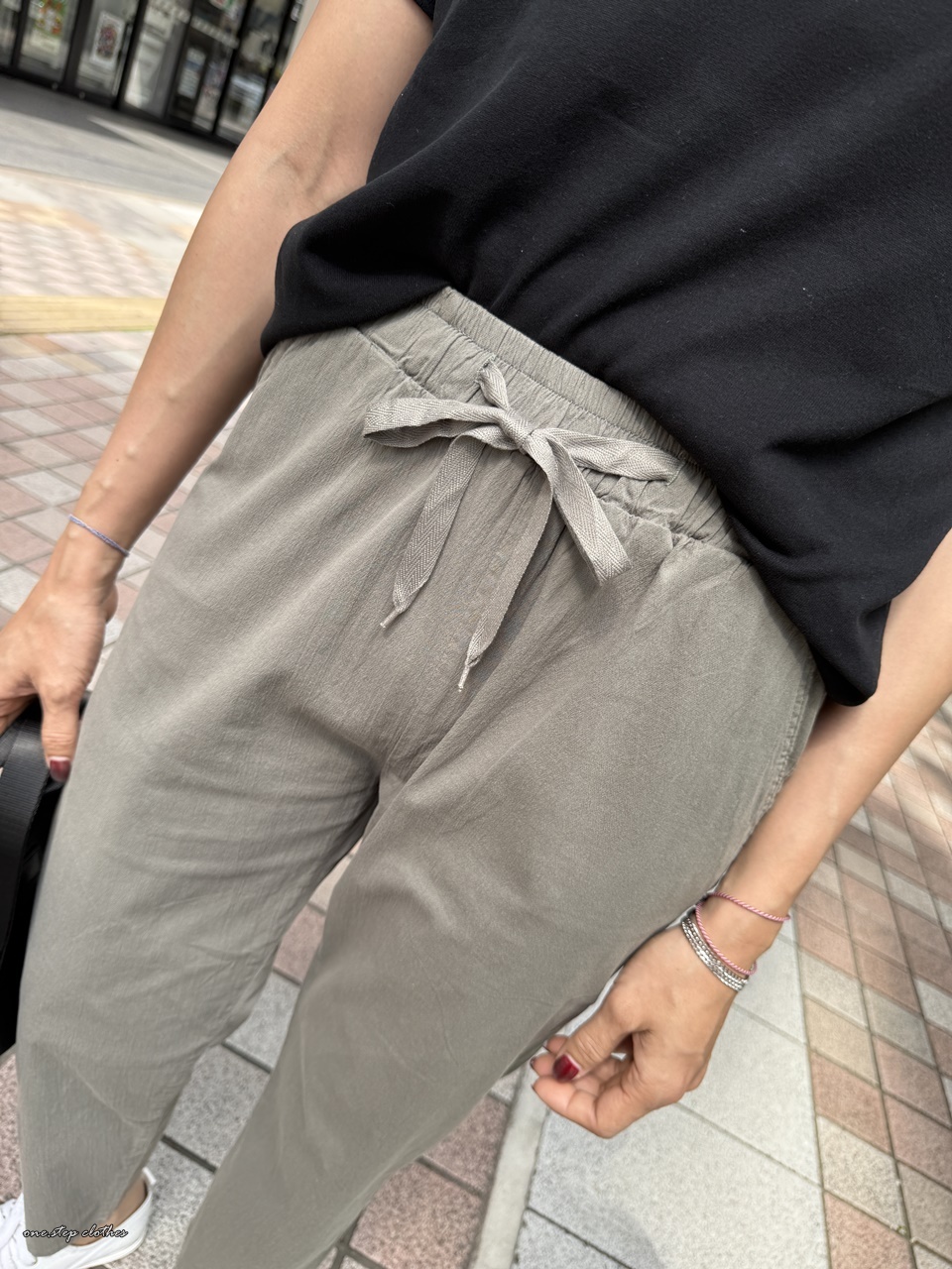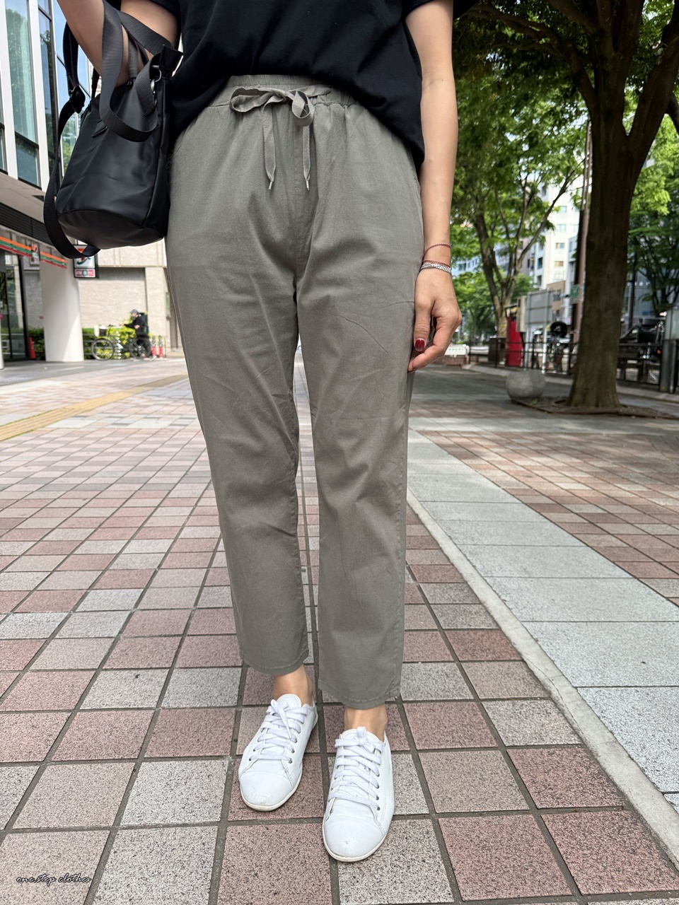 正韓自訂款超薄綁帶休閒褲 (卡其綠)
